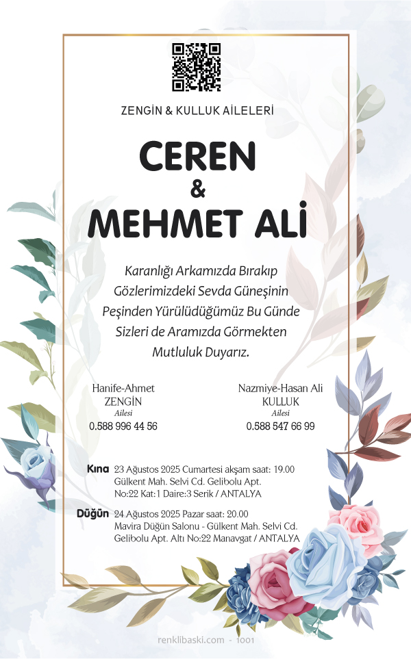 1001 Kodlu ekonomik düğün davetiyesi