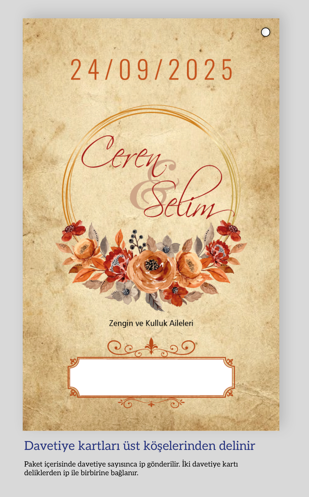 Dikey ikiz ip bağlamalı davetiyeler