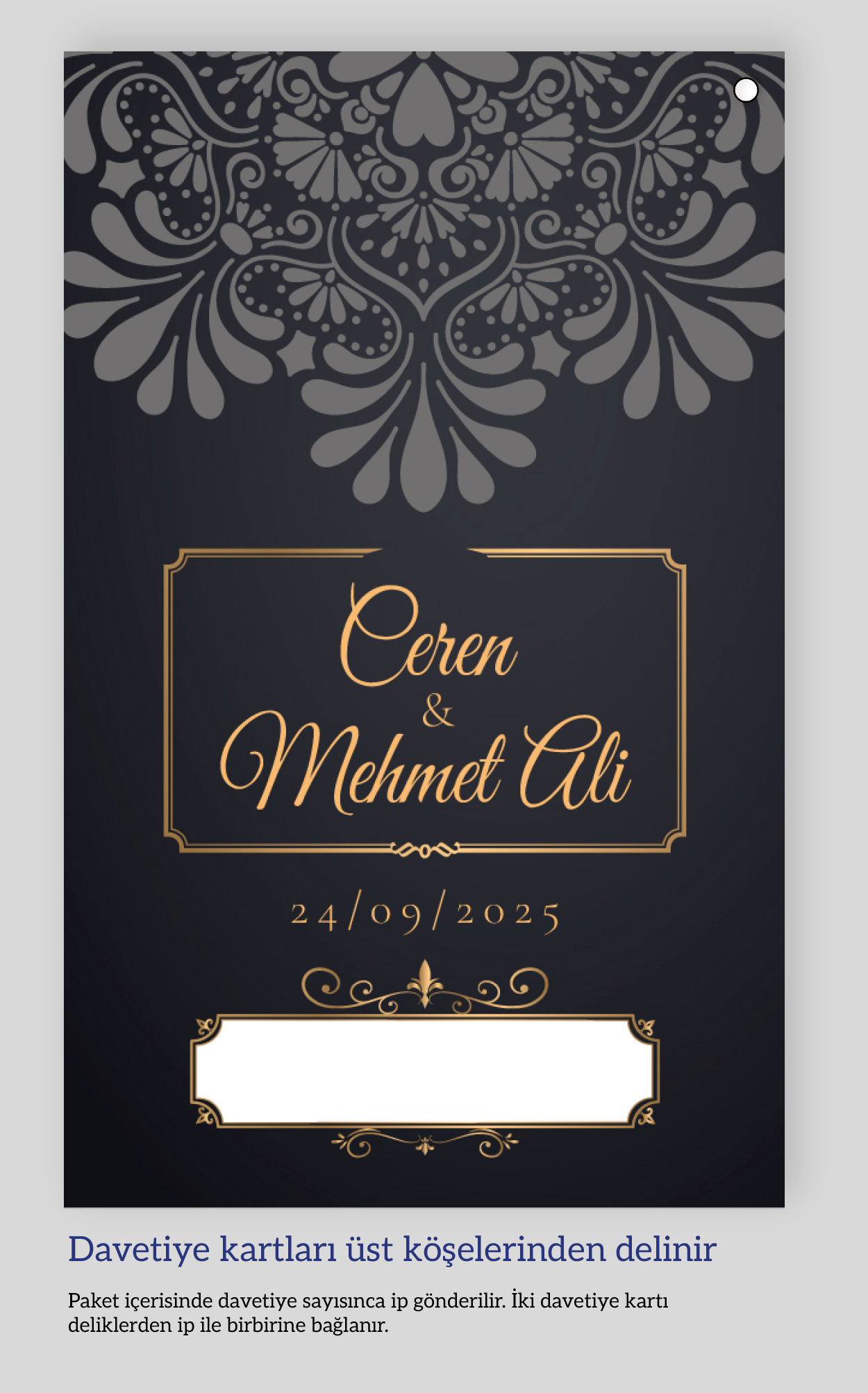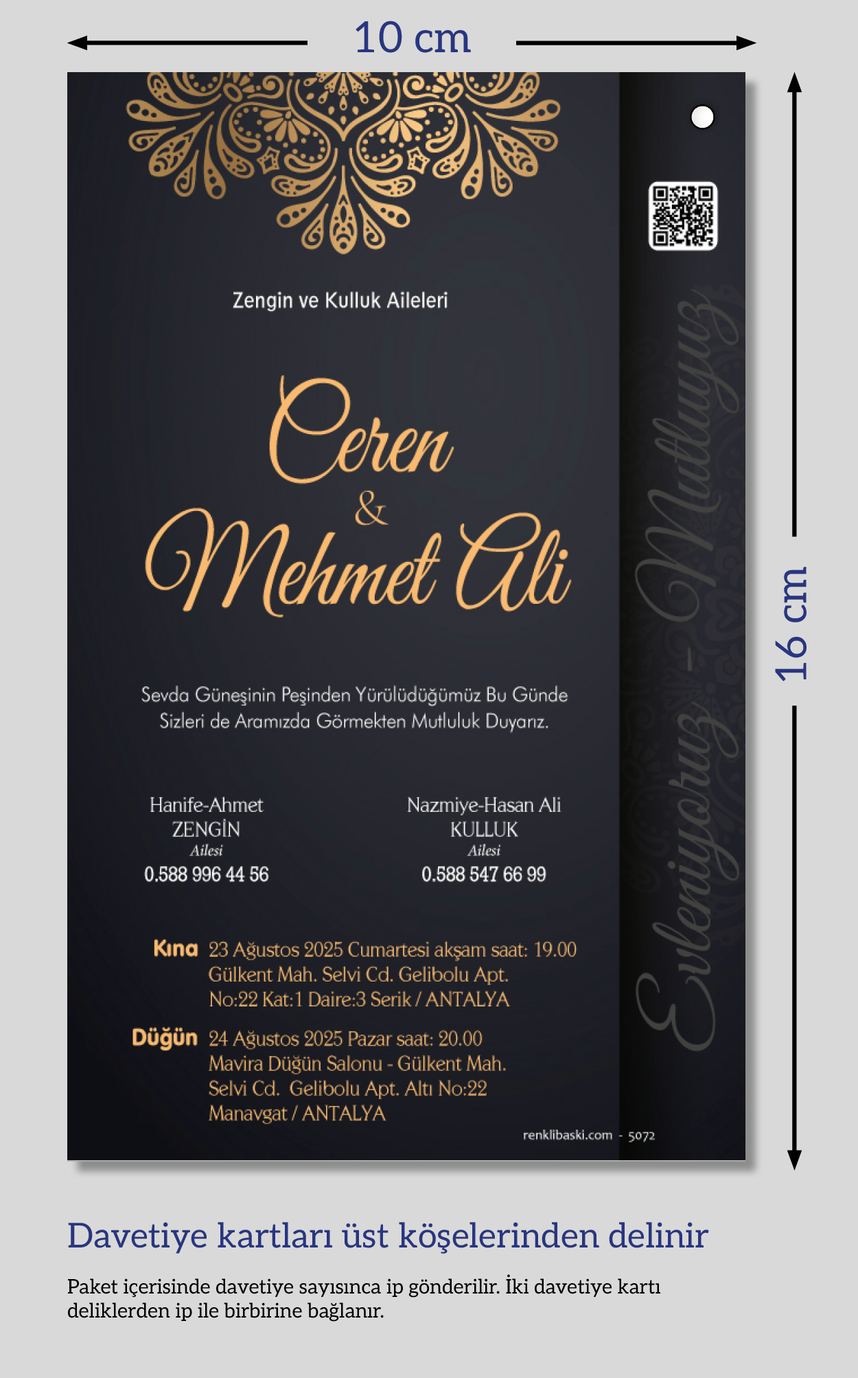 Dikey ikiz ip bağlamalı davetiyeler