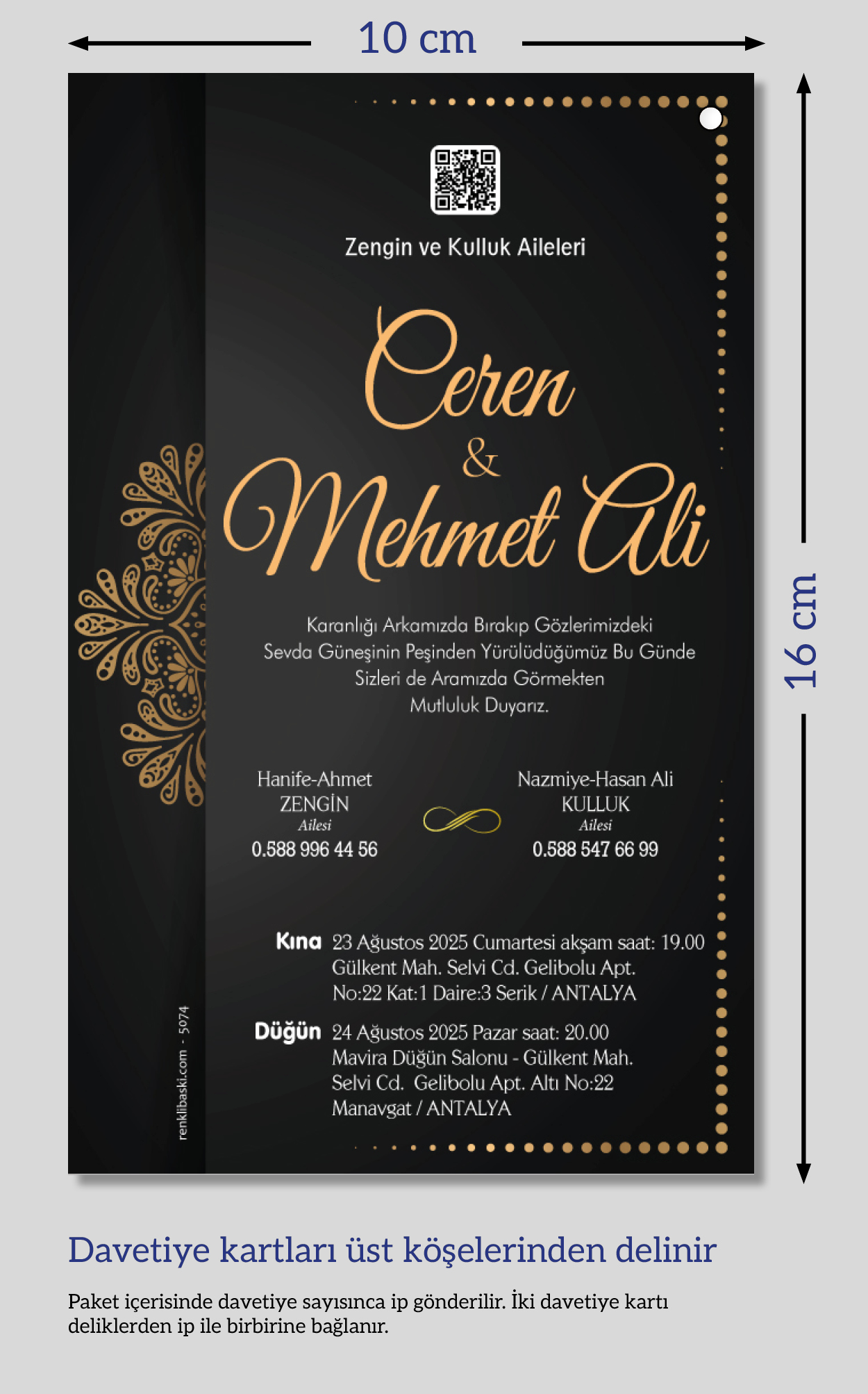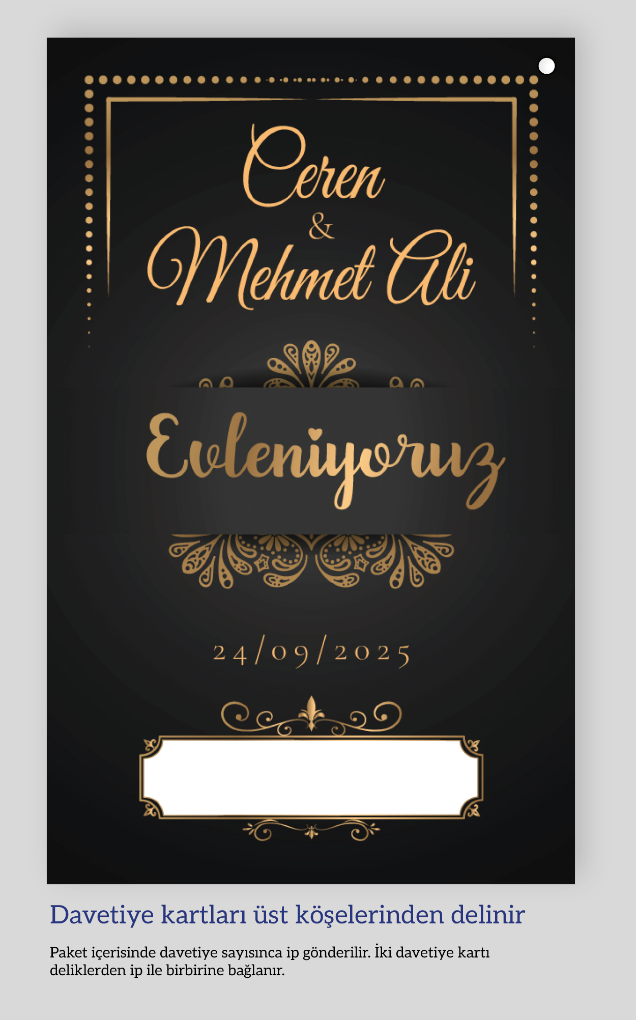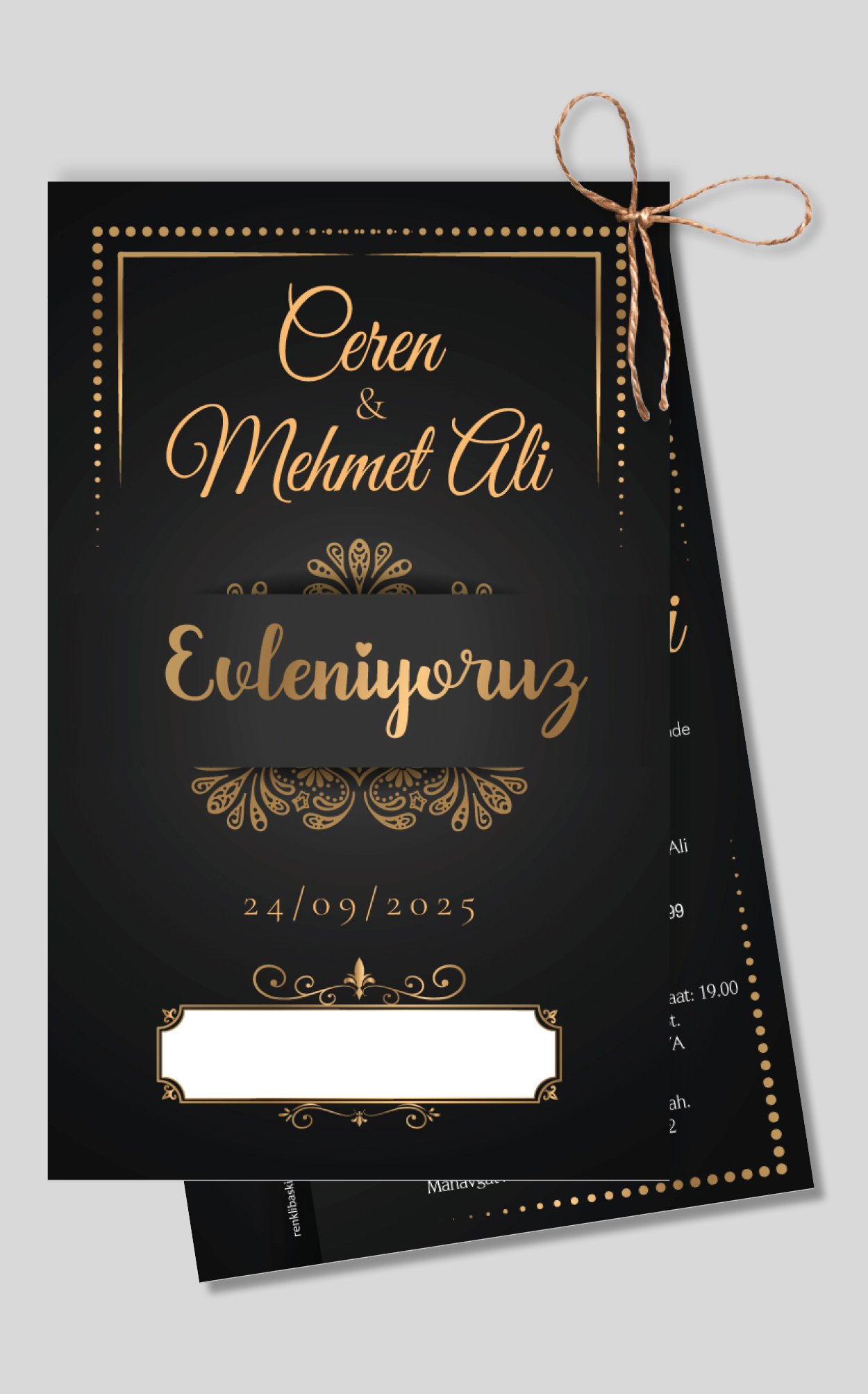 Dikey ikiz ip bağlamalı davetiyeler