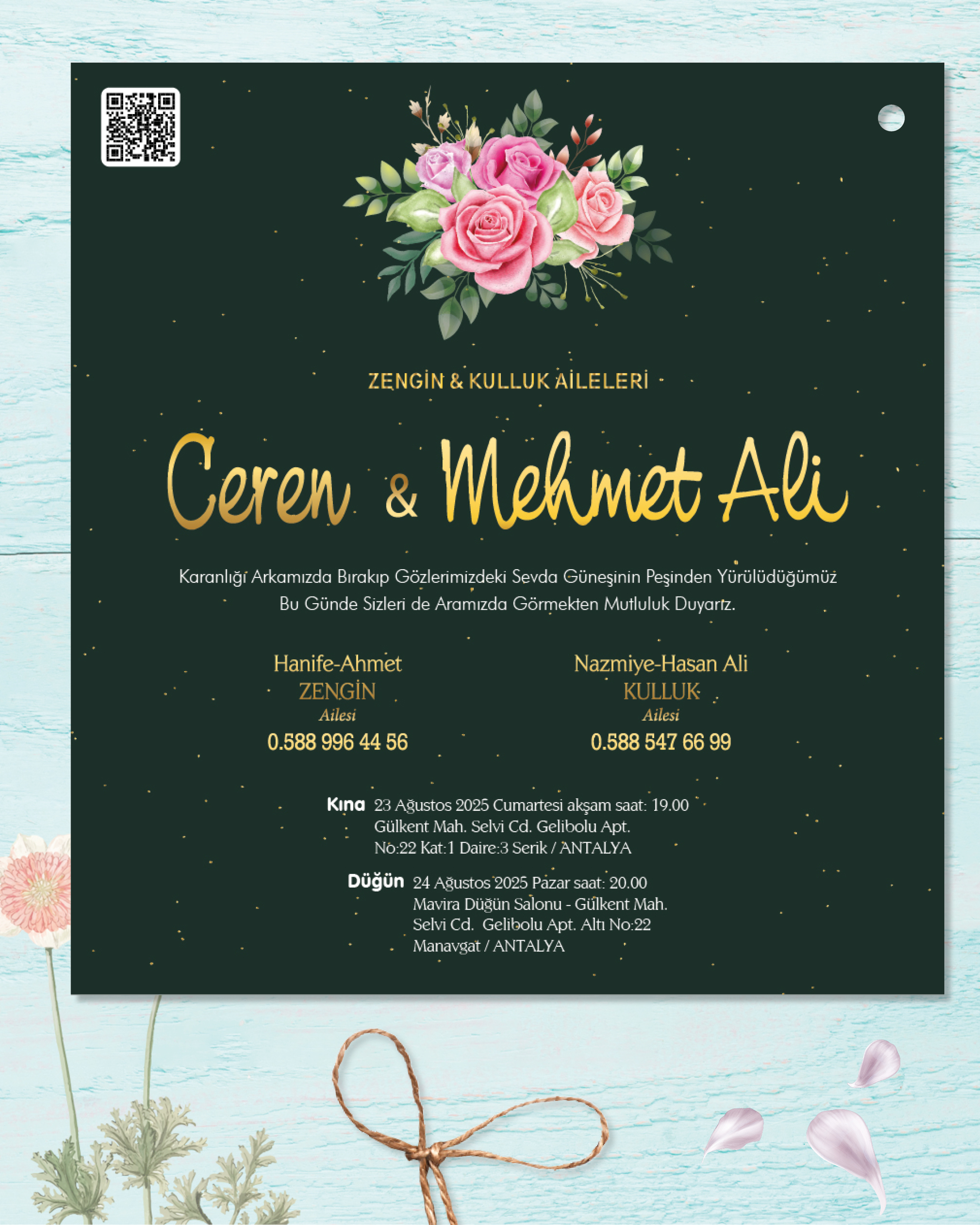 Kare İkiz İp Bağlamalı Davetiye 5002 - 50 ADET