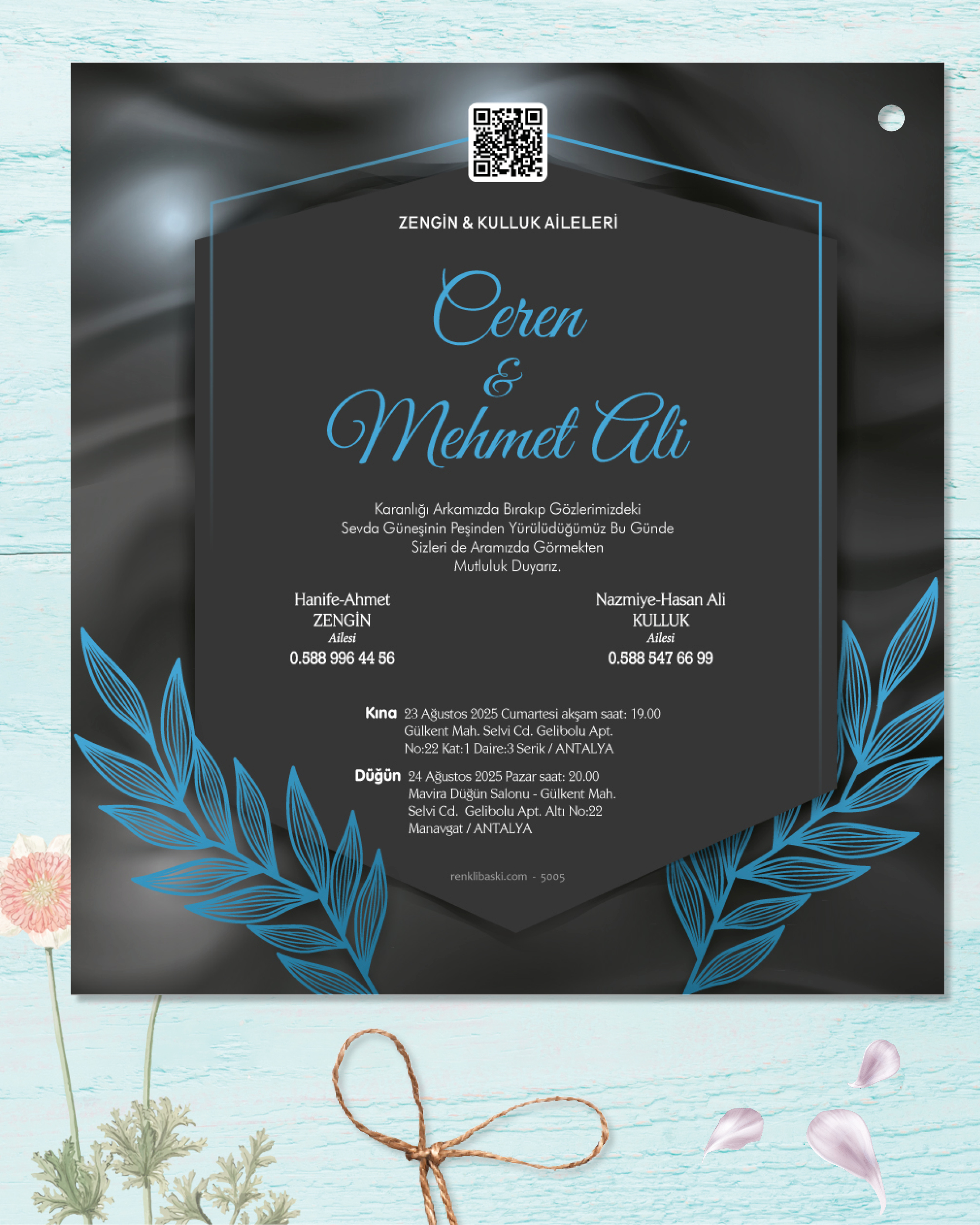 Kare İkiz İp Bağlamalı Davetiye 5005 - 50 ADET