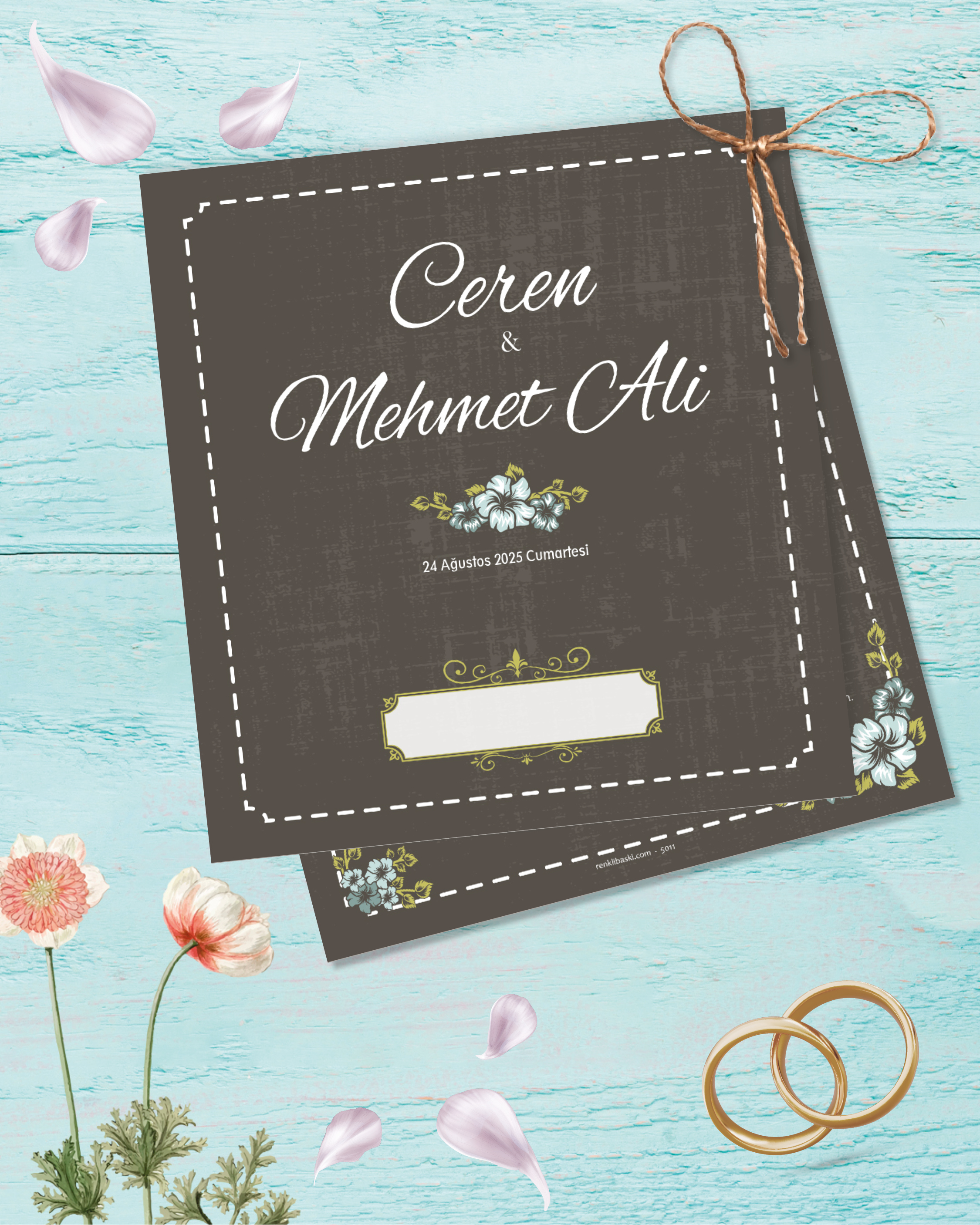 Kare İkiz İp Bağlamalı Davetiye 5011 - 50 ADET