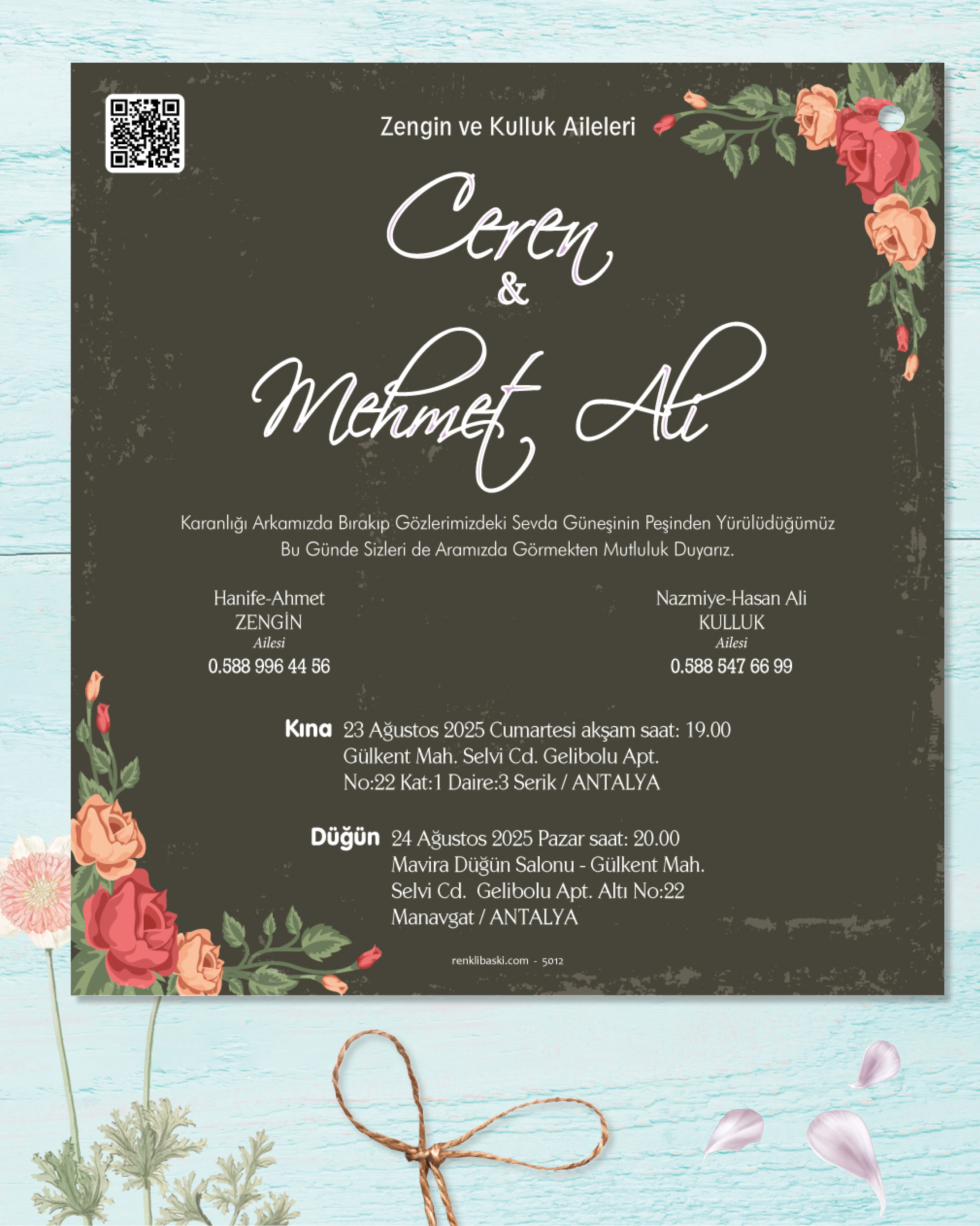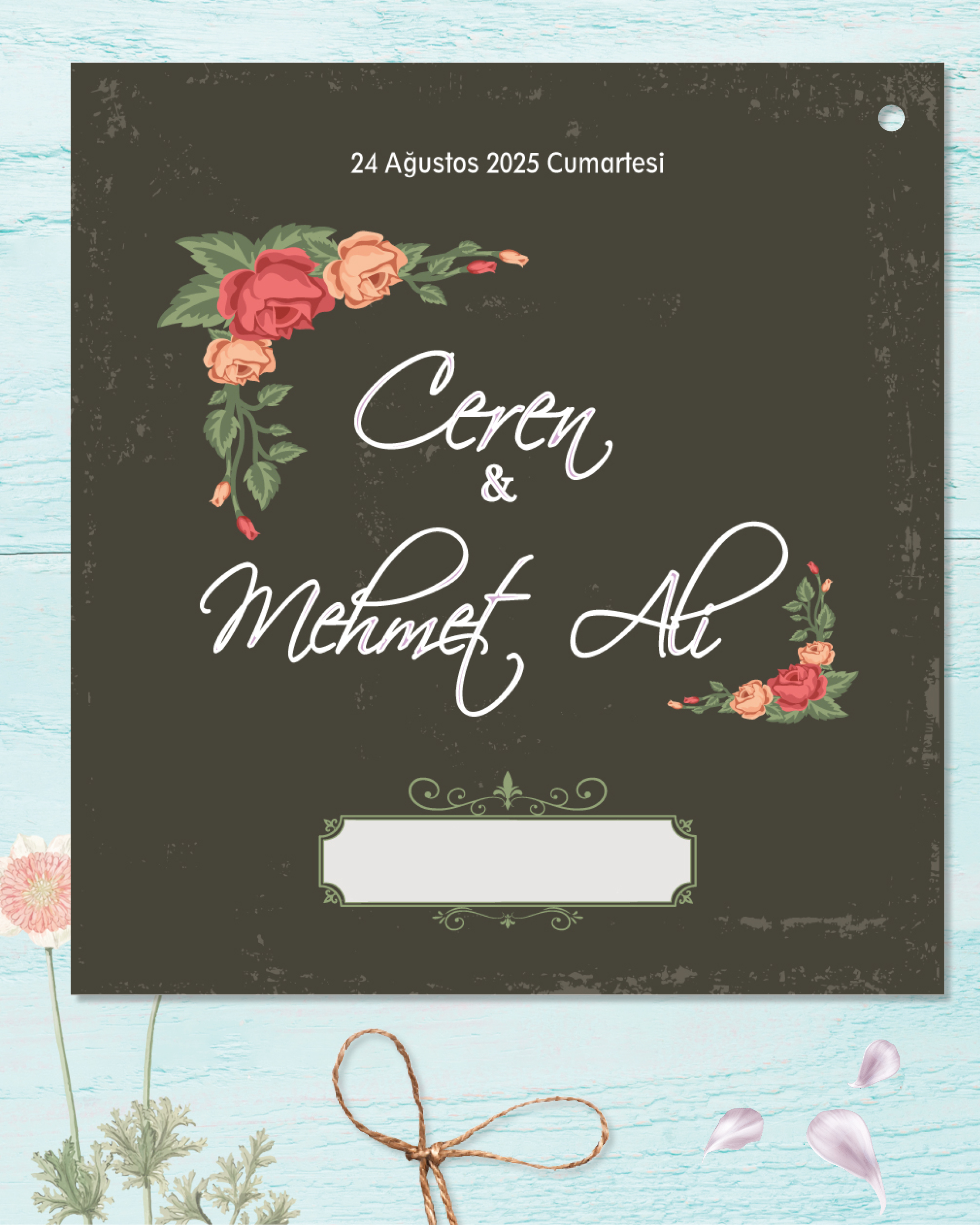 Kare İkiz İp Bağlamalı Davetiye 5012 - 50 ADET
