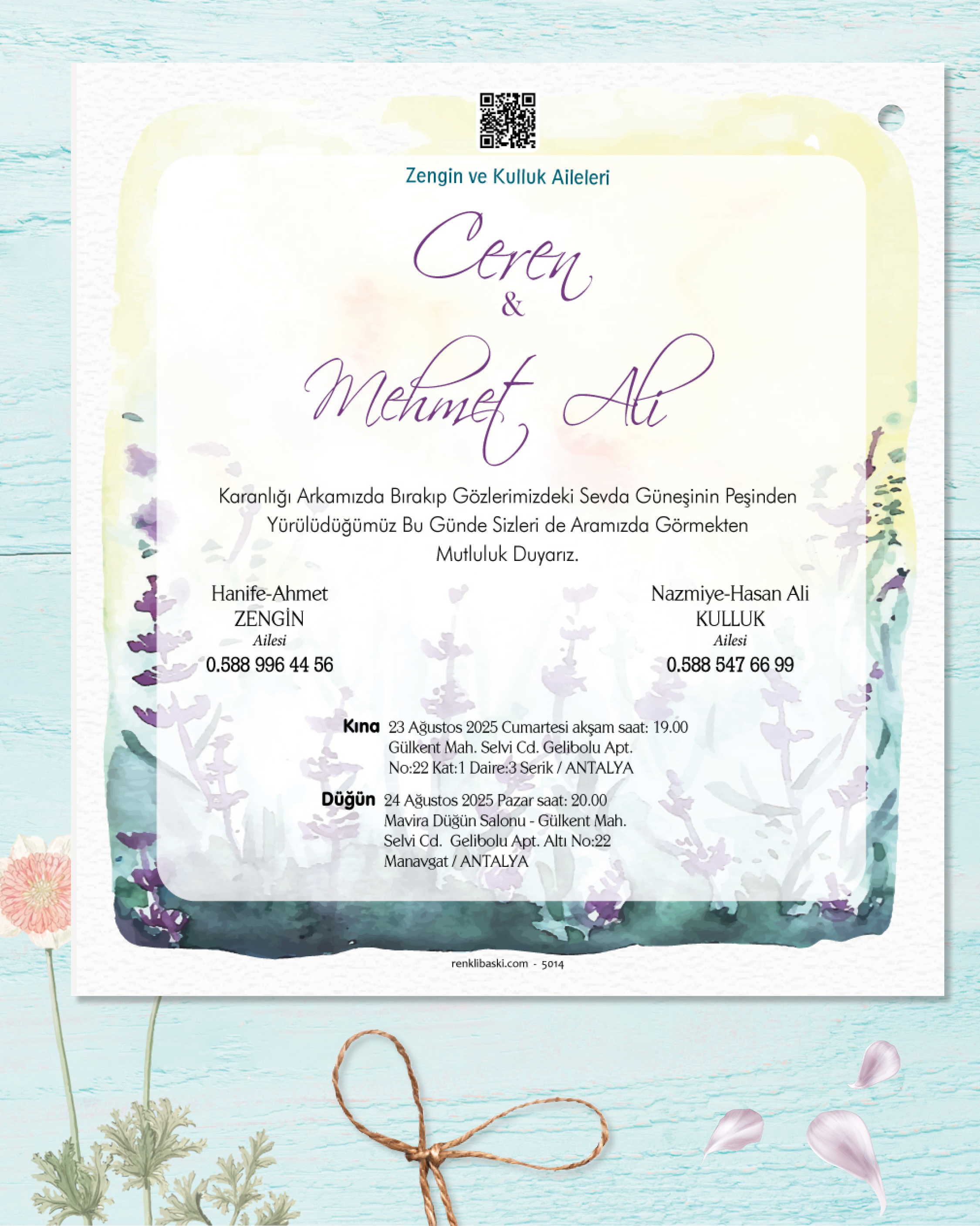 Kare İkiz İp Bağlamalı Davetiye 5014 - 50 ADET