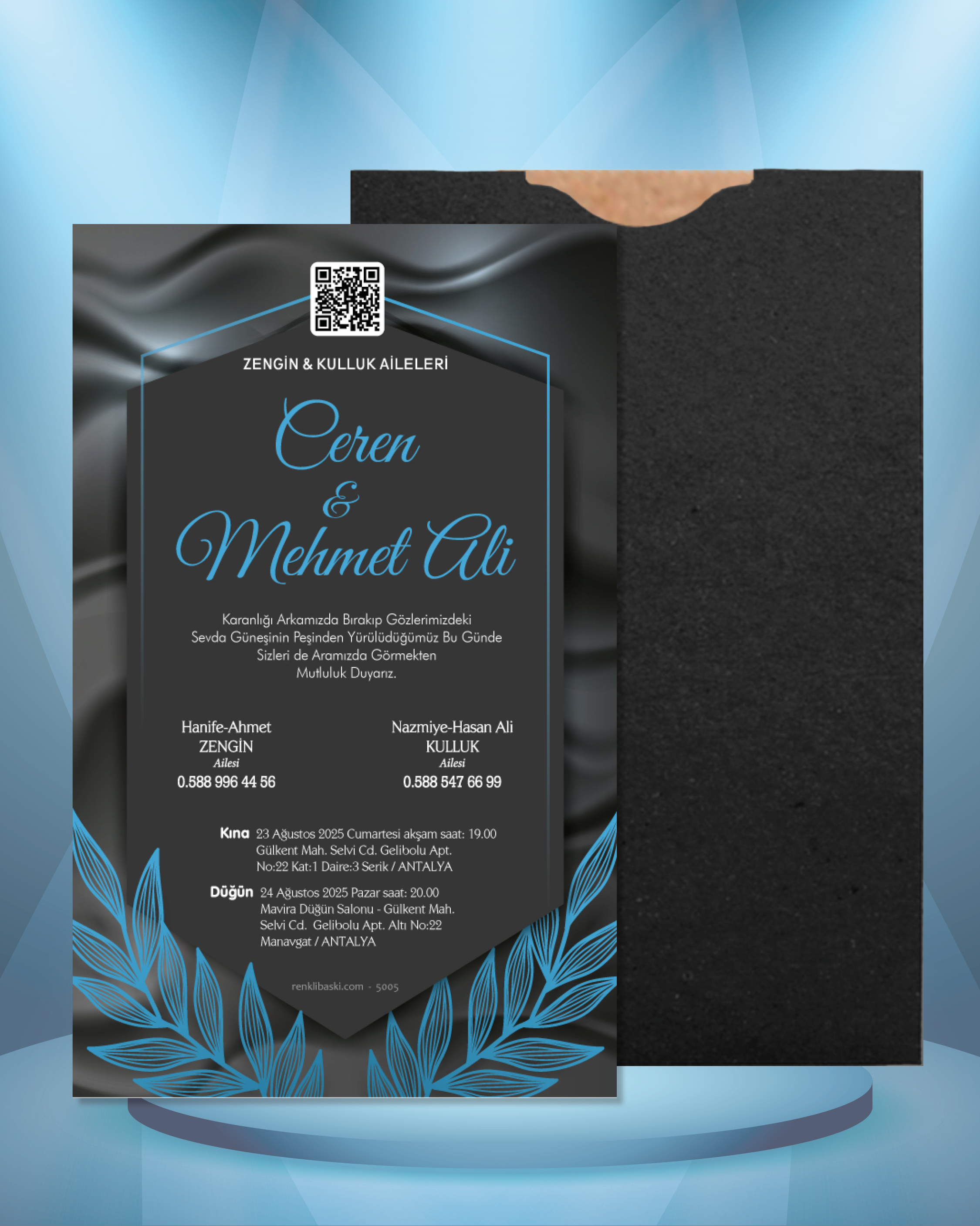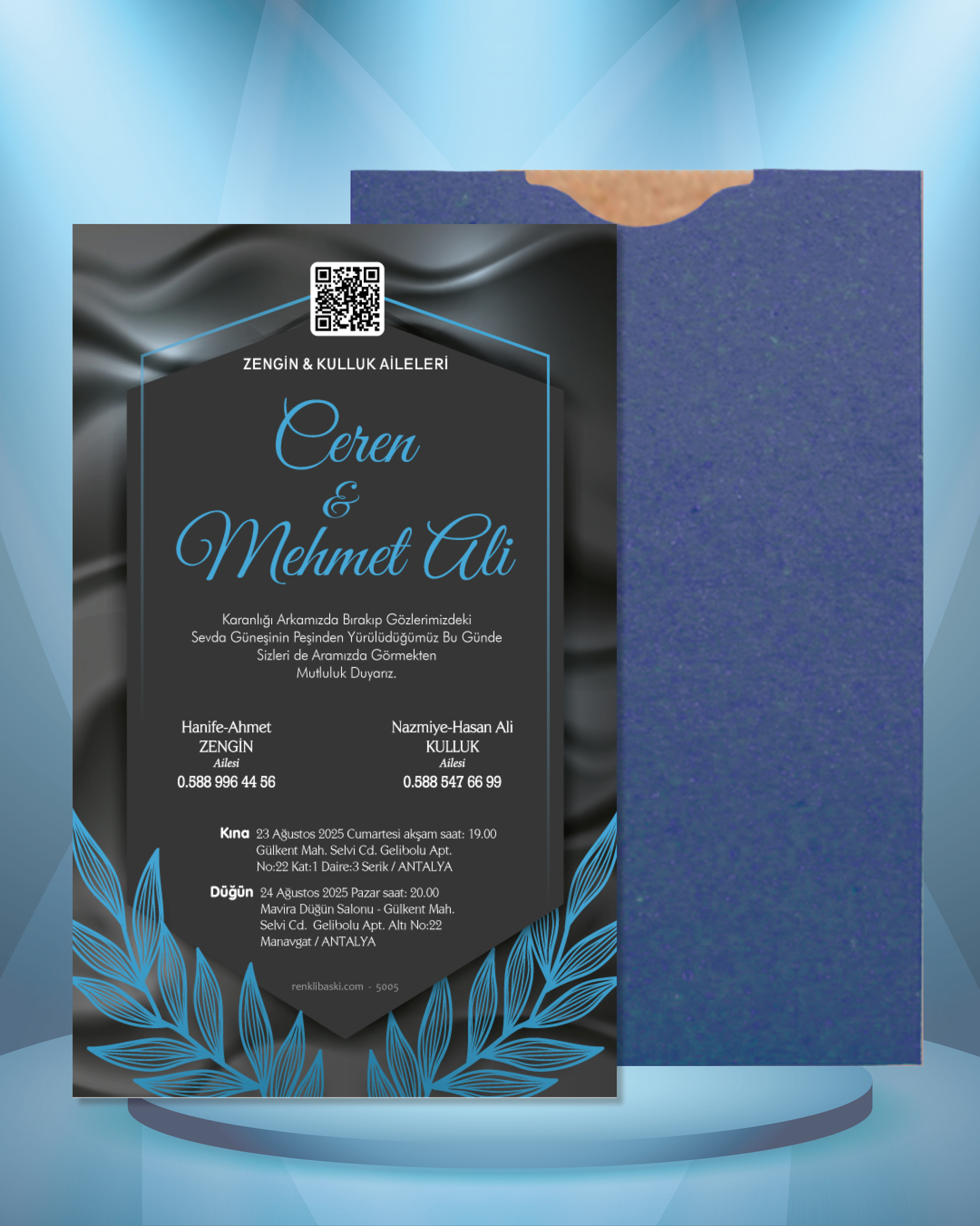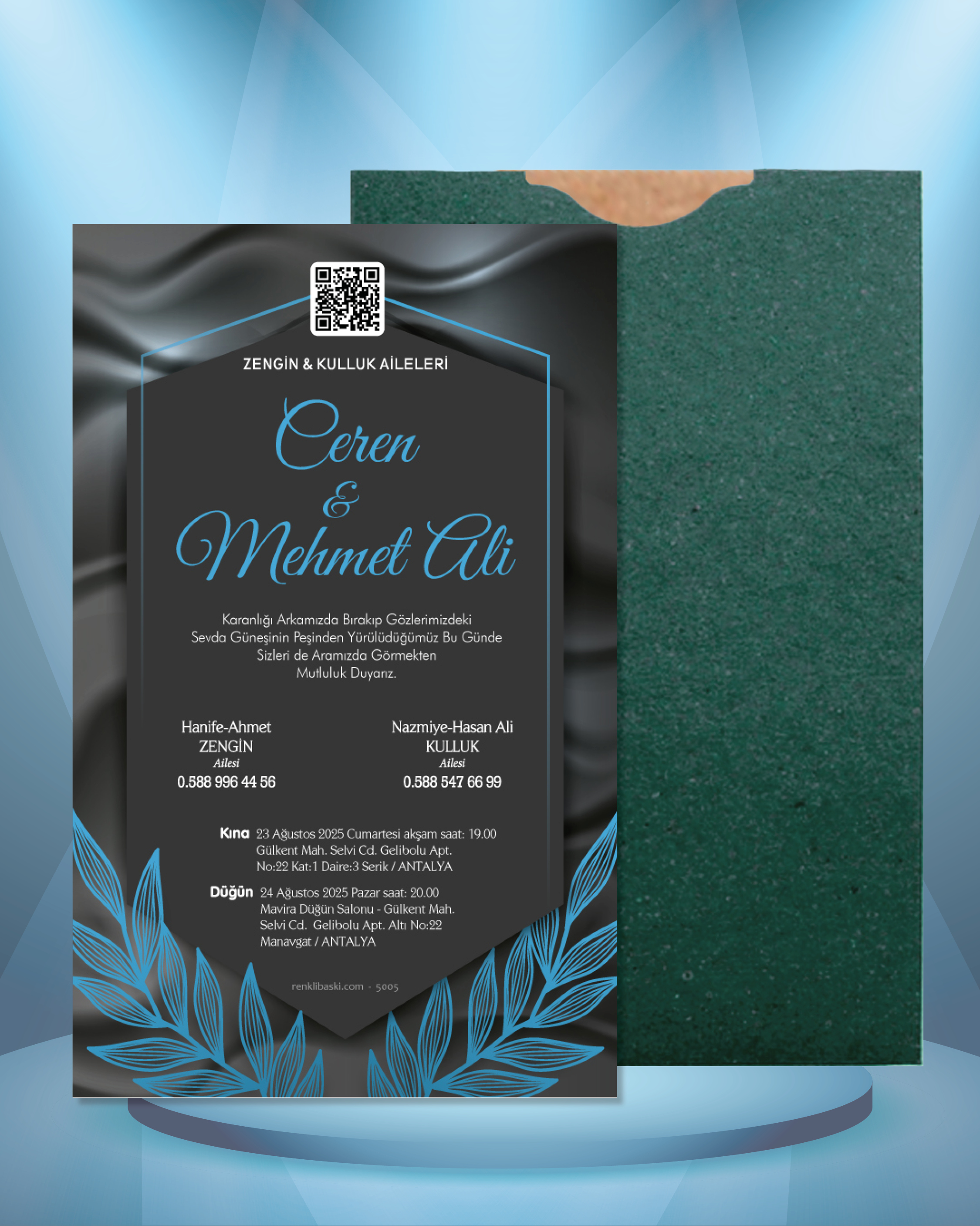 Ekonomik davetiye modelimizin düğün, nişan, kına gibi etkinlikleriniz için tasarlanmasını isteyebilirsiniz. Tasarım ücretsizdir. Tasarım hazırlatmak için 0555 190 02 00 numaralı WhatsApp hattımızla iletişime geçebilirsiniz.