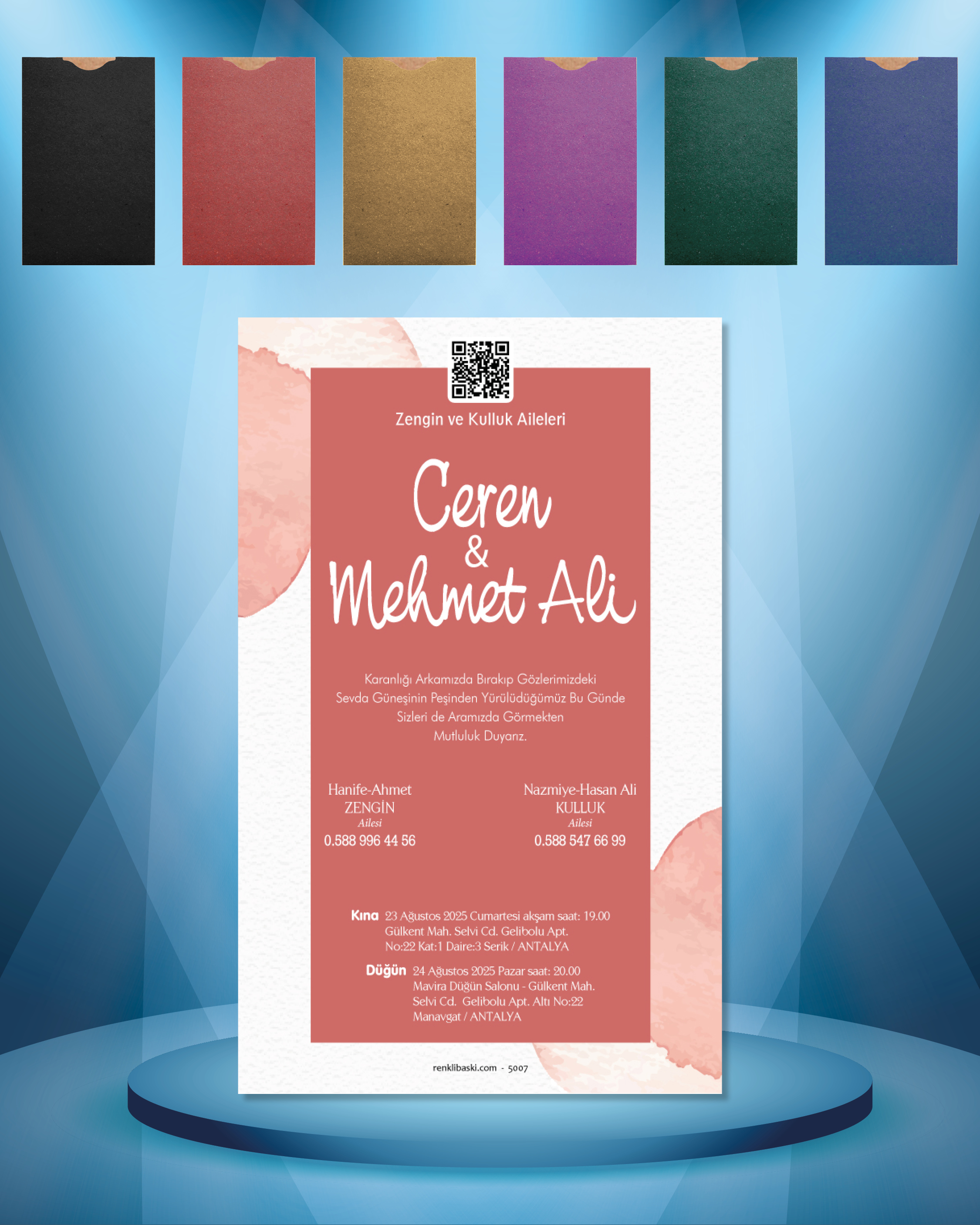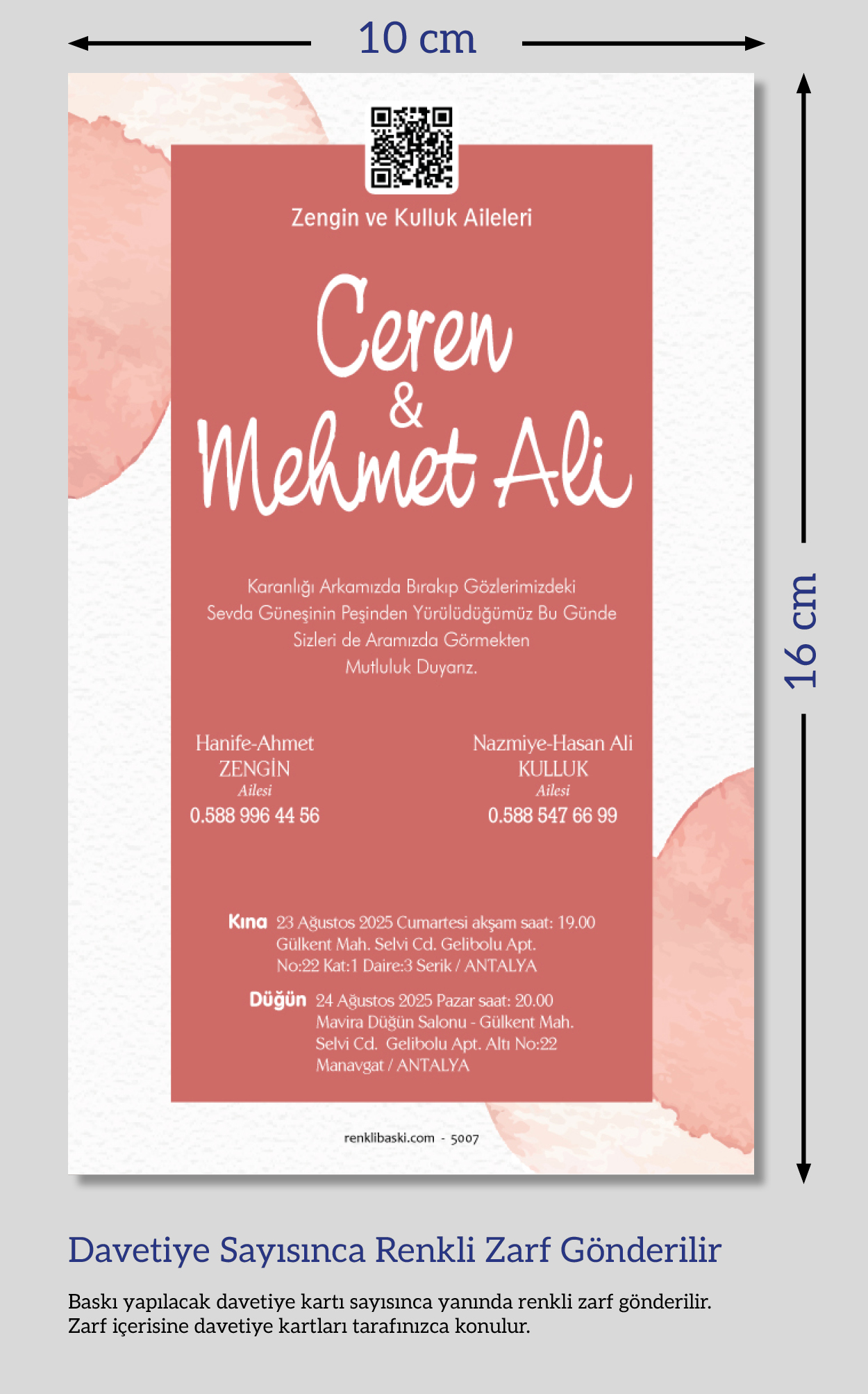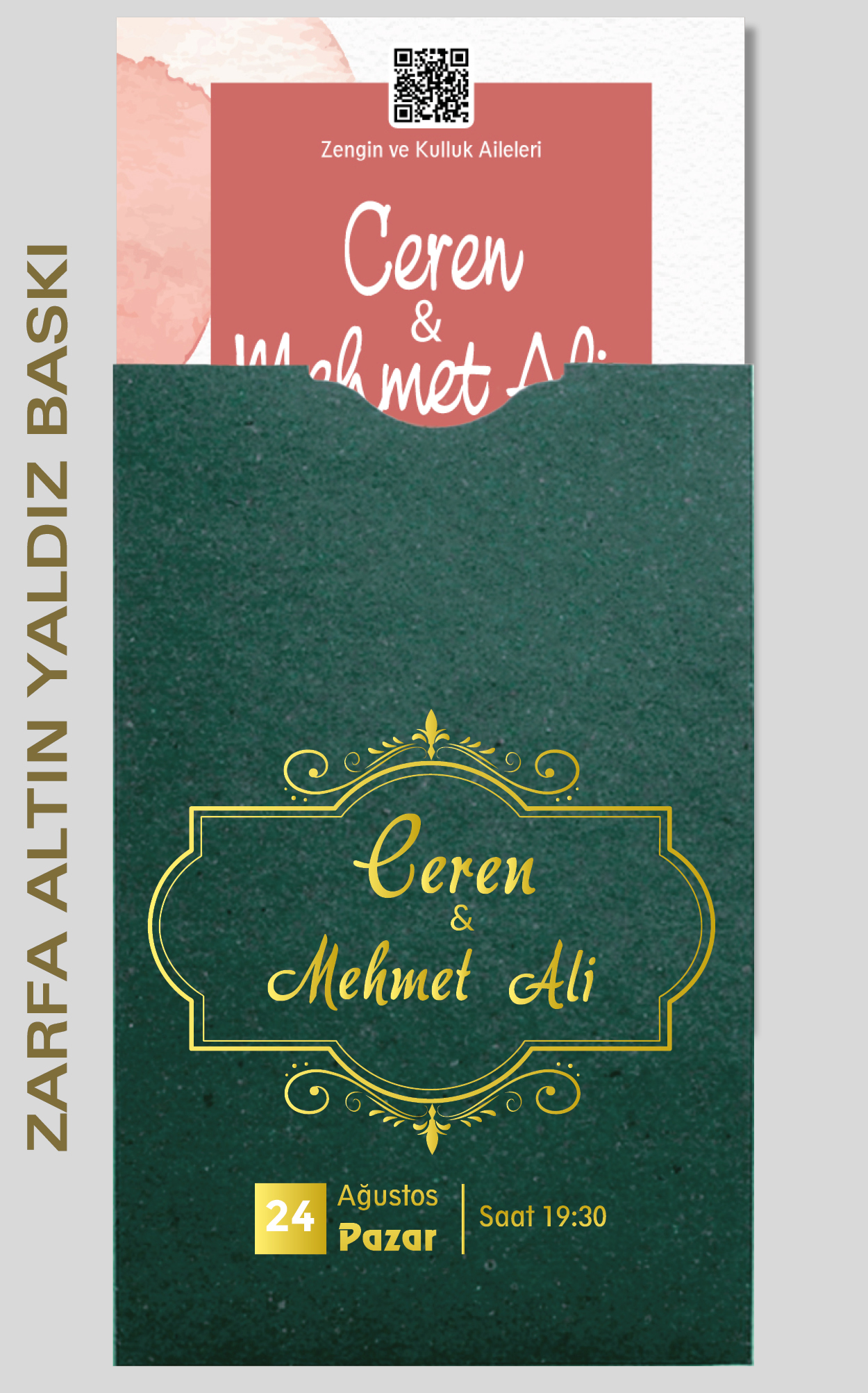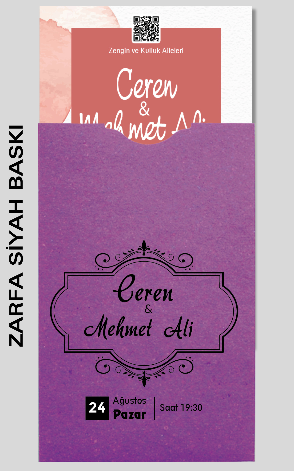 Ekonomik davetiye modelimizin düğün, nişan, kına gibi etkinlikleriniz için tasarlanmasını isteyebilirsiniz. Tasarım ücretsizdir. Tasarım hazırlatmak için 0555 190 02 00 numaralı WhatsApp hattımızla iletişime geçebilirsiniz.