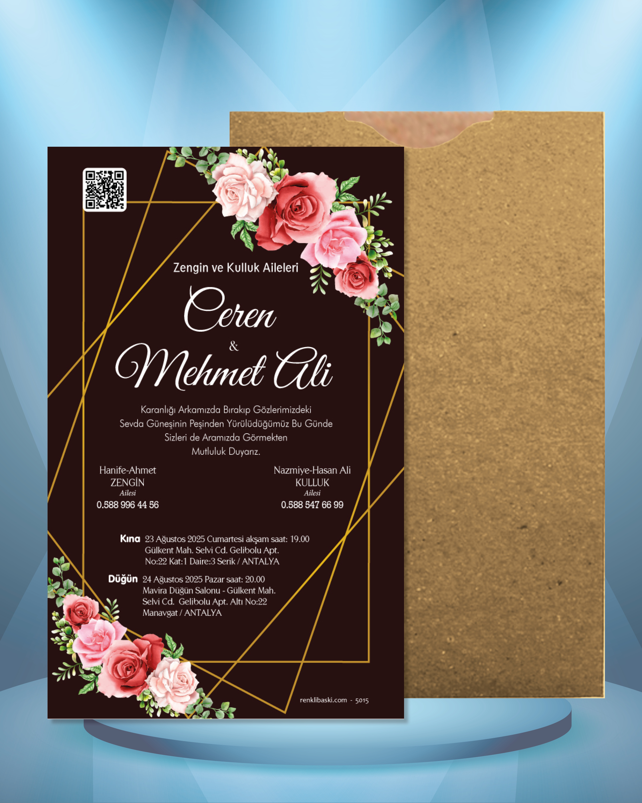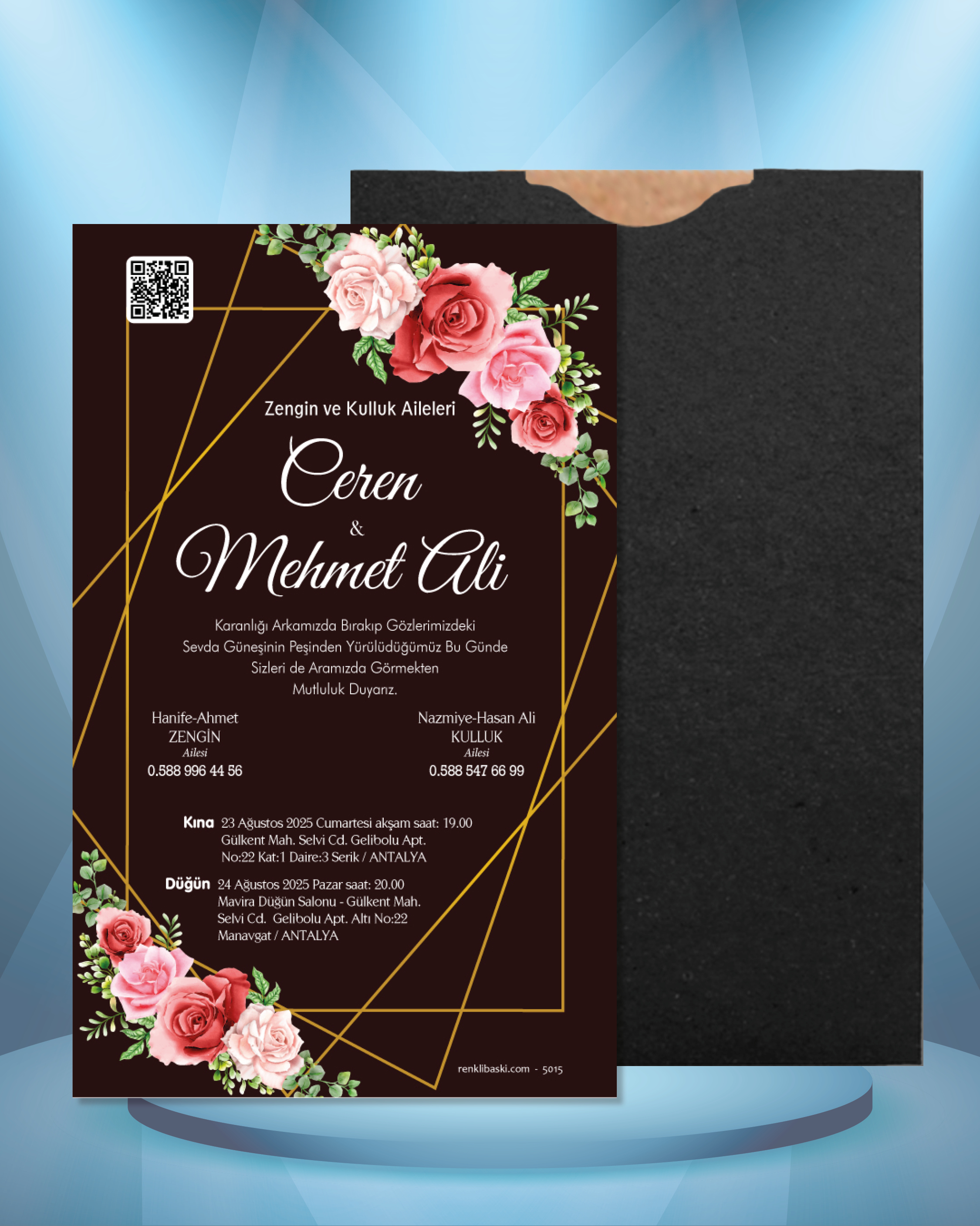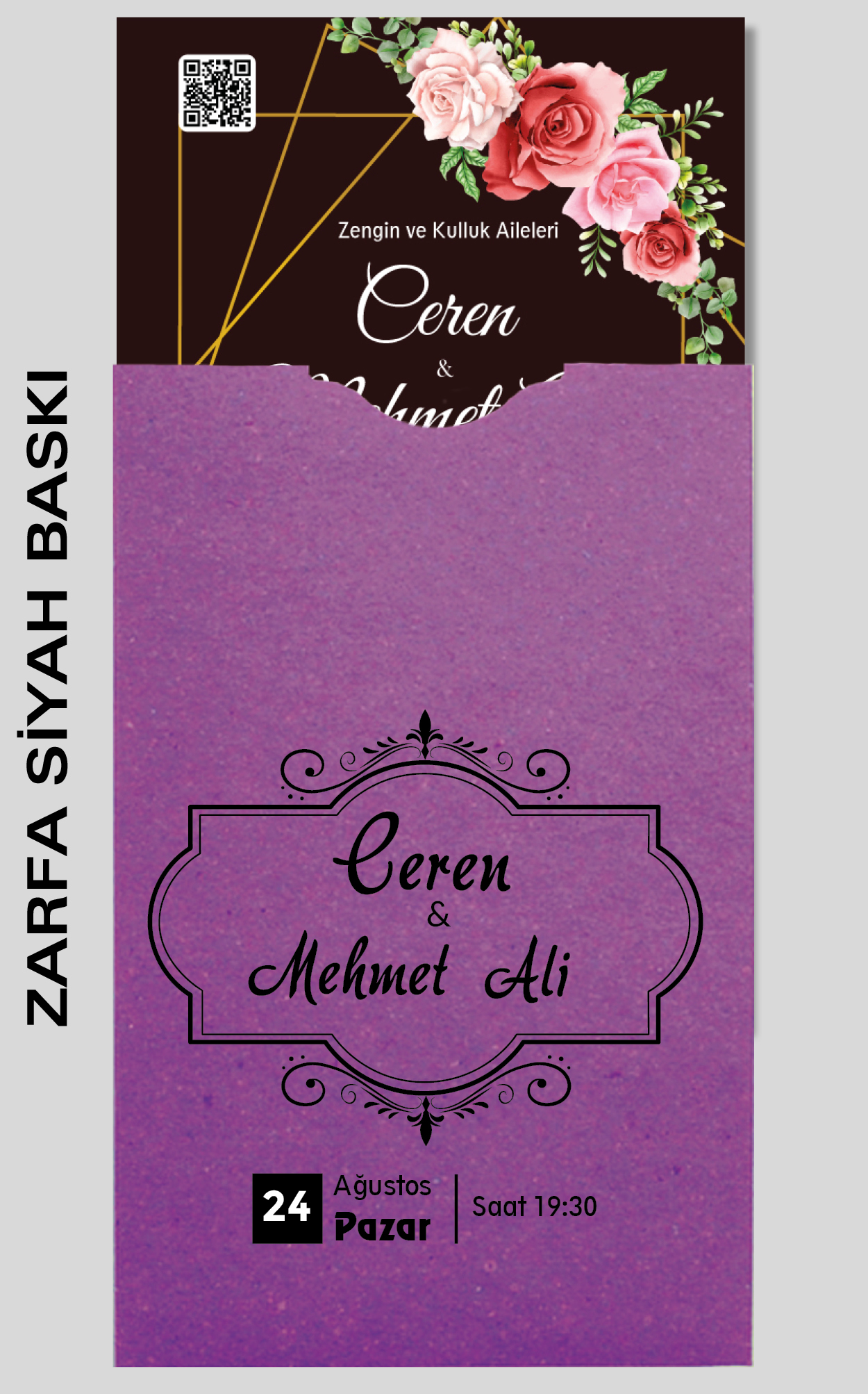 Ekonomik davetiye modelimizin düğün, nişan, kına gibi etkinlikleriniz için tasarlanmasını isteyebilirsiniz. Tasarım ücretsizdir. Tasarım hazırlatmak için 0555 190 02 00 numaralı WhatsApp hattımızla iletişime geçebilirsiniz.