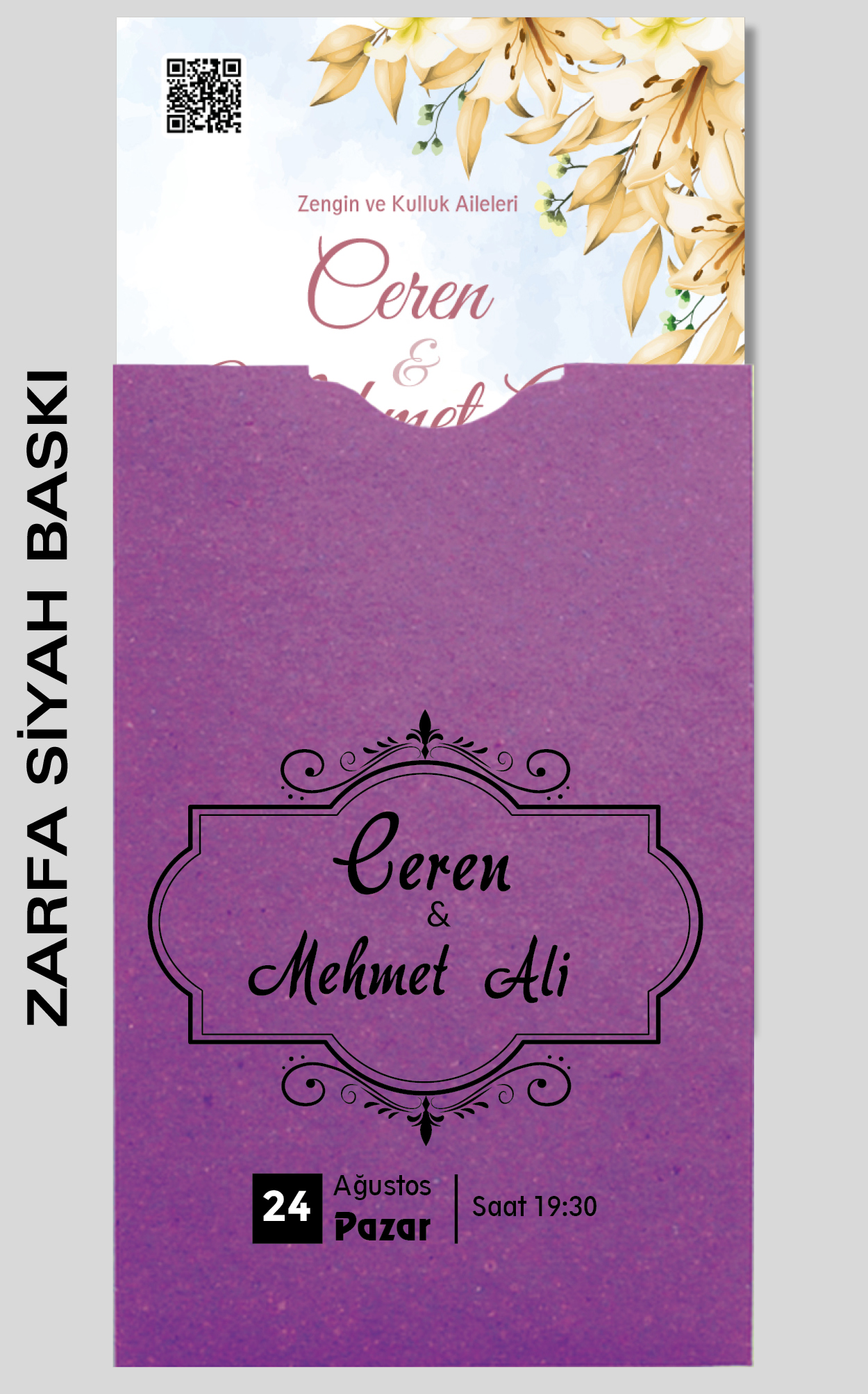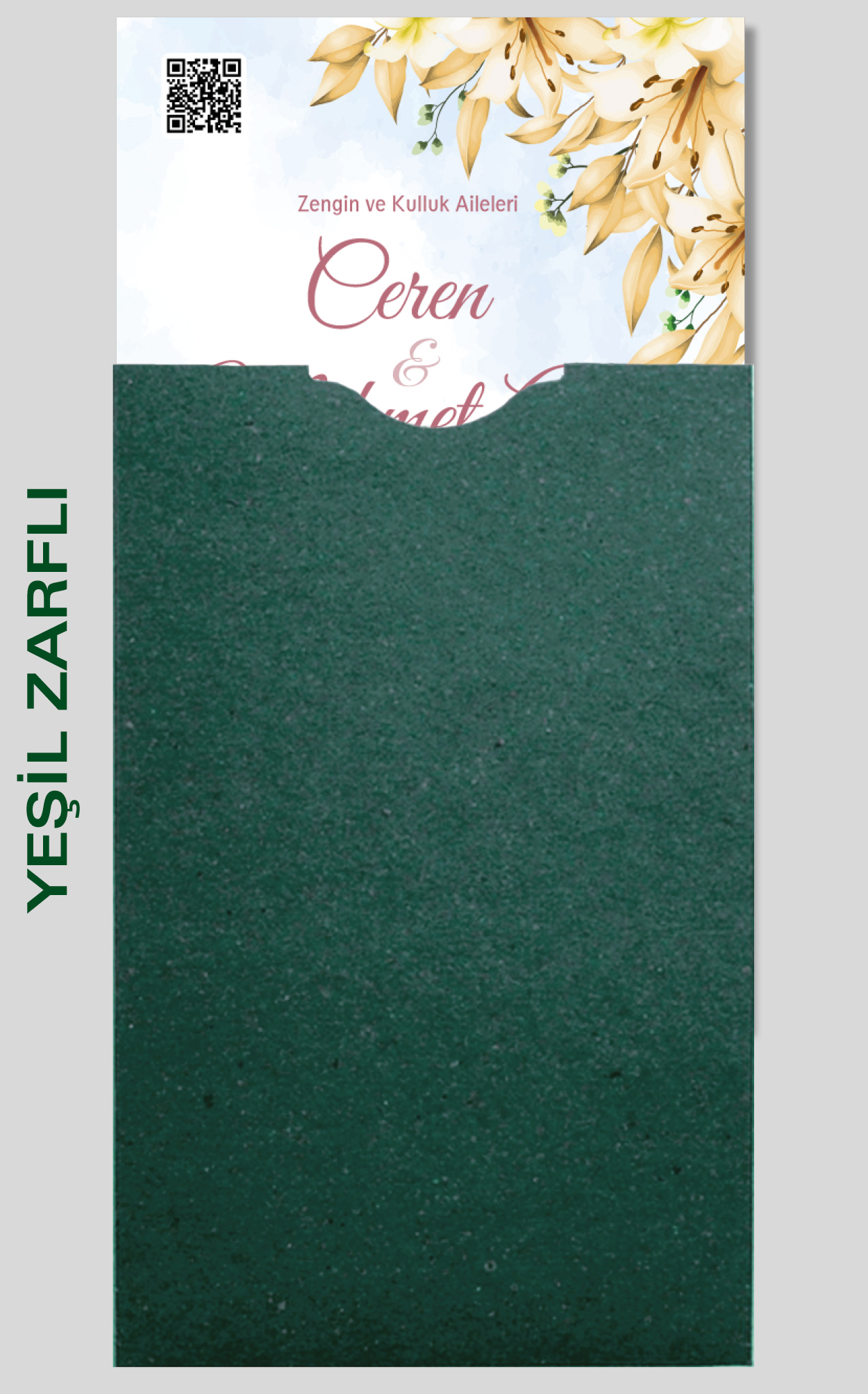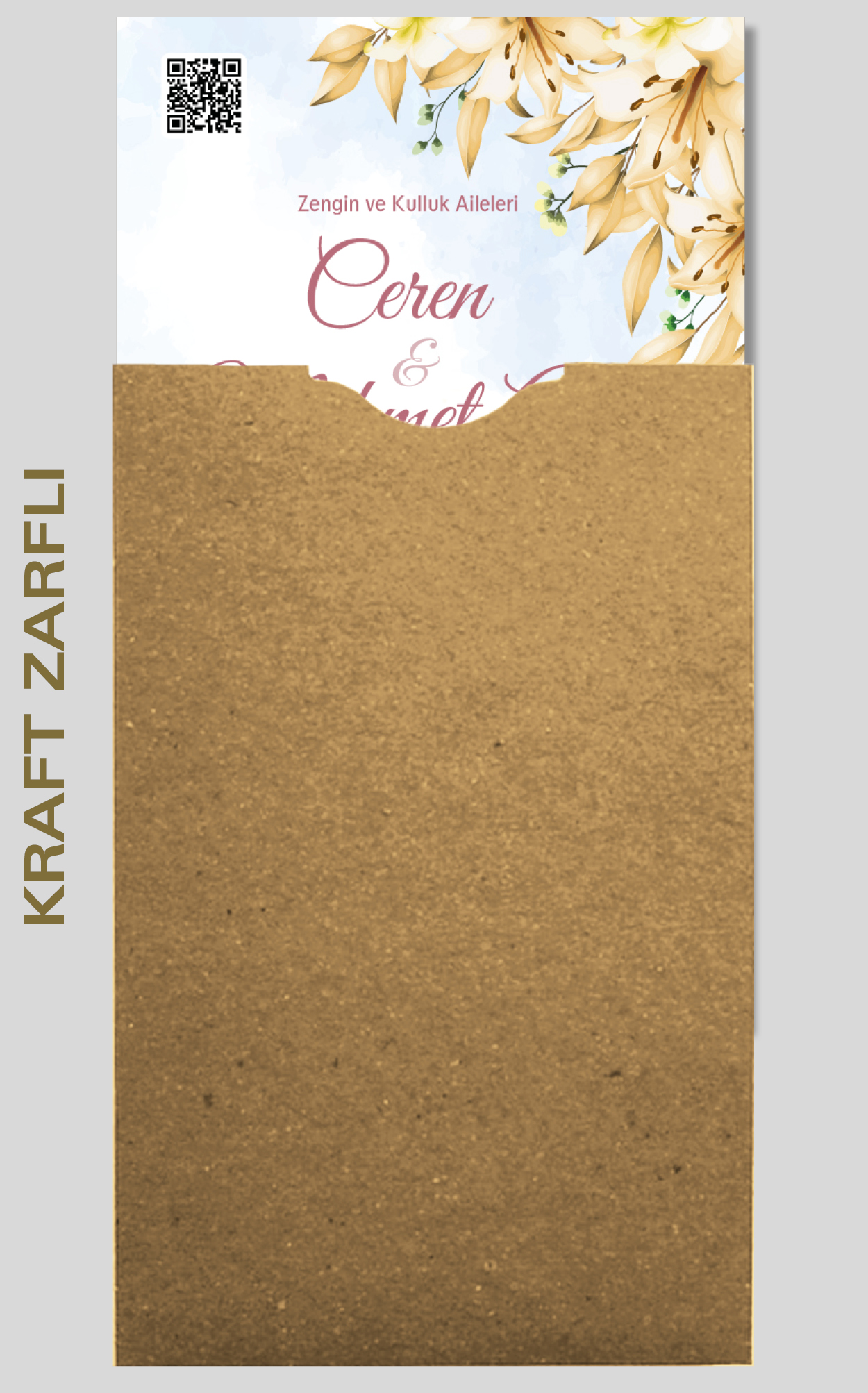 Ekonomik davetiye modelimizin düğün, nişan, kına gibi etkinlikleriniz için tasarlanmasını isteyebilirsiniz. Tasarım ücretsizdir. Tasarım hazırlatmak için 0555 190 02 00 numaralı WhatsApp hattımızla iletişime geçebilirsiniz.