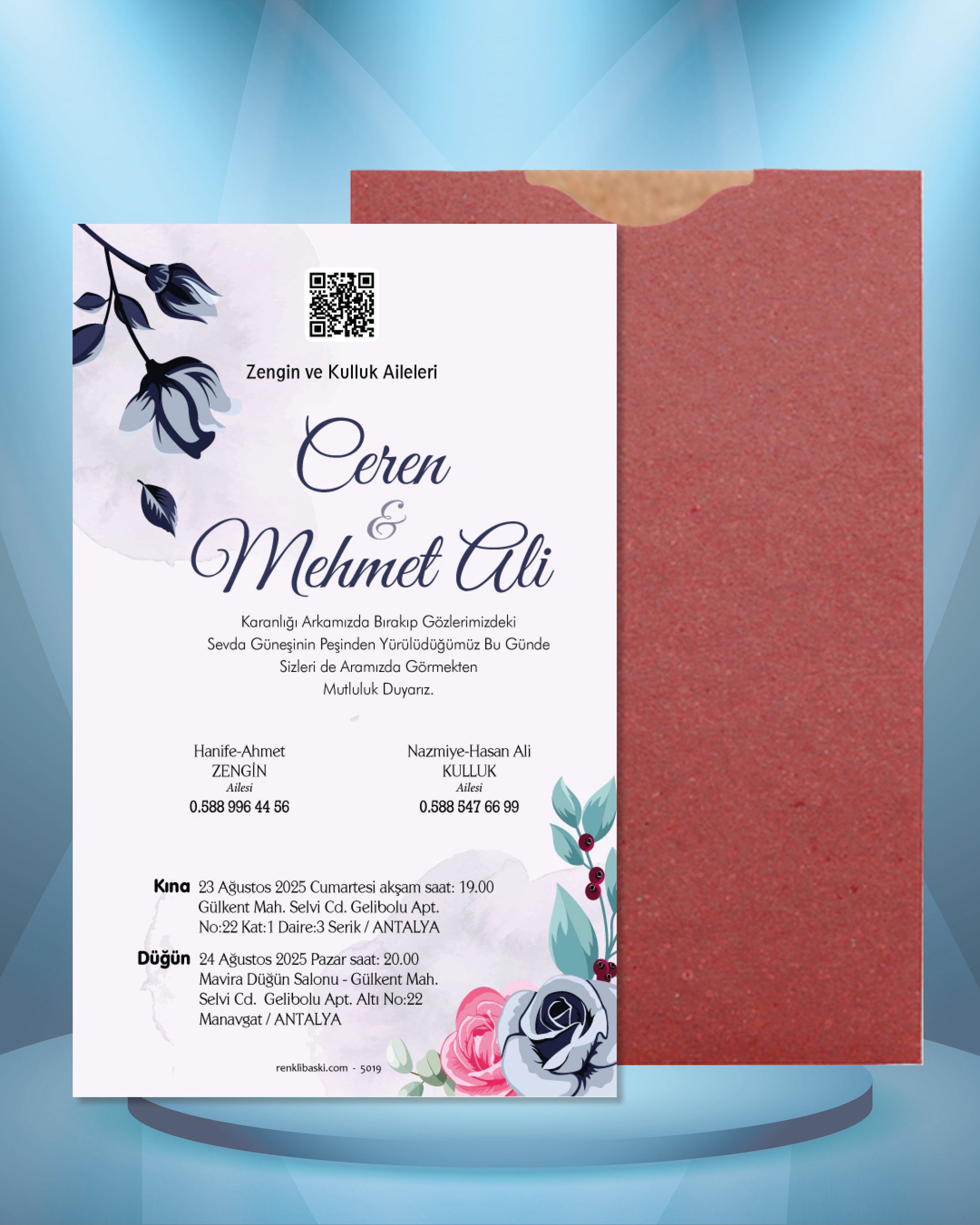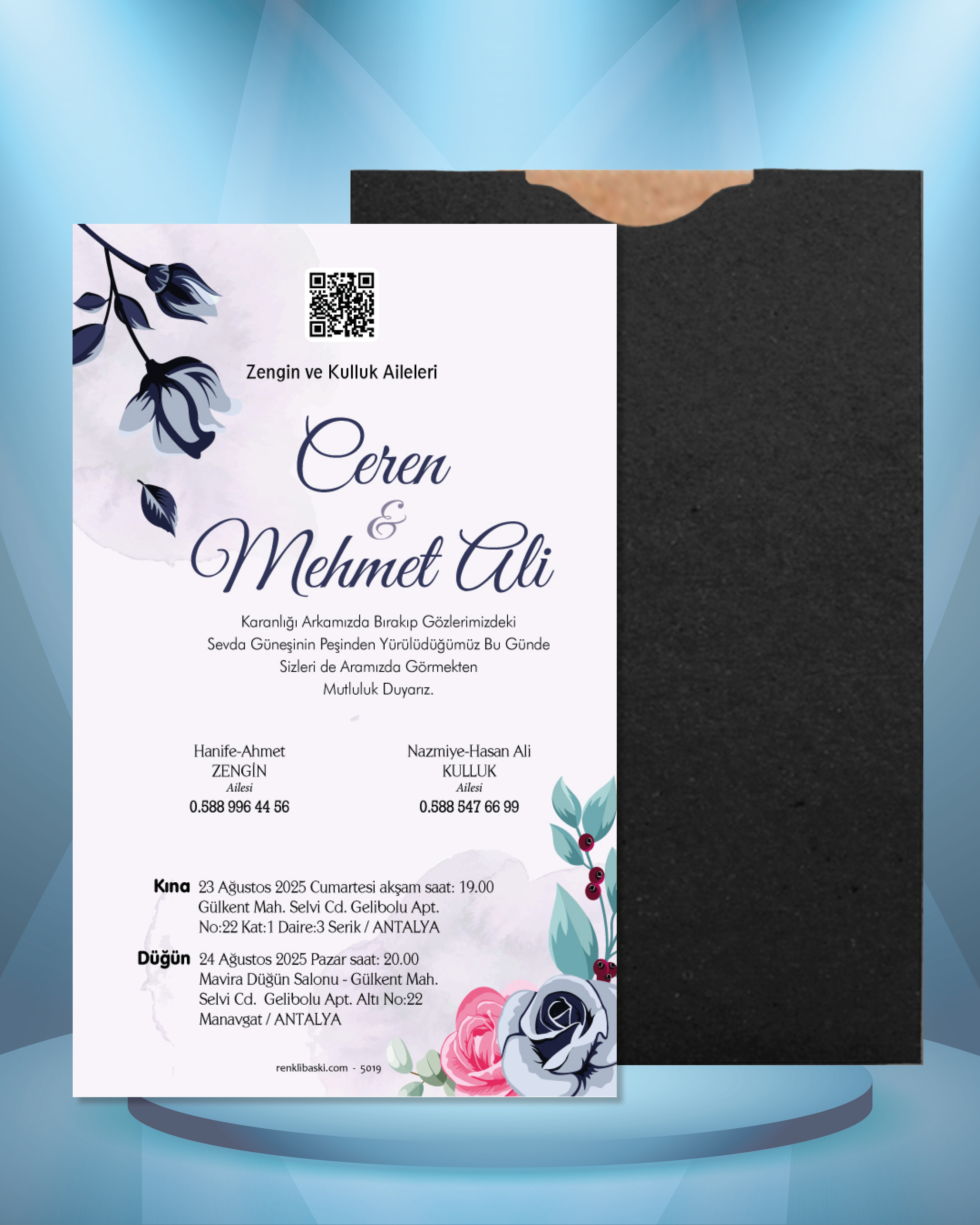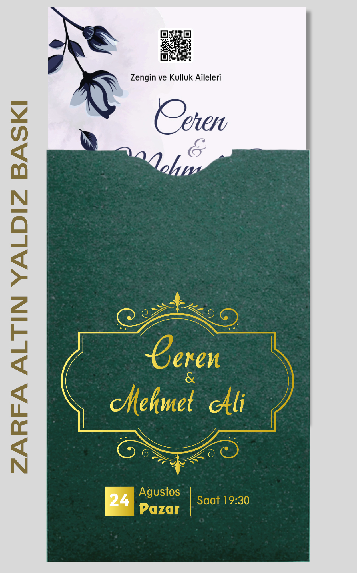 Ekonomik davetiye modelimizin düğün, nişan, kına gibi etkinlikleriniz için tasarlanmasını isteyebilirsiniz. Tasarım ücretsizdir. Tasarım hazırlatmak için 0555 190 02 00 numaralı WhatsApp hattımızla iletişime geçebilirsiniz.