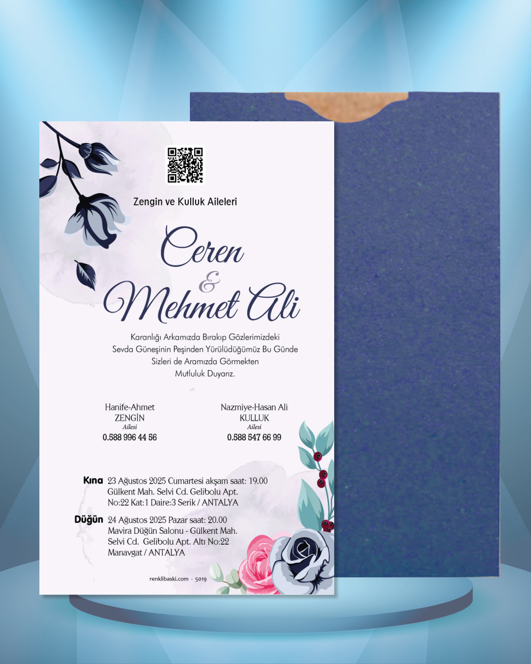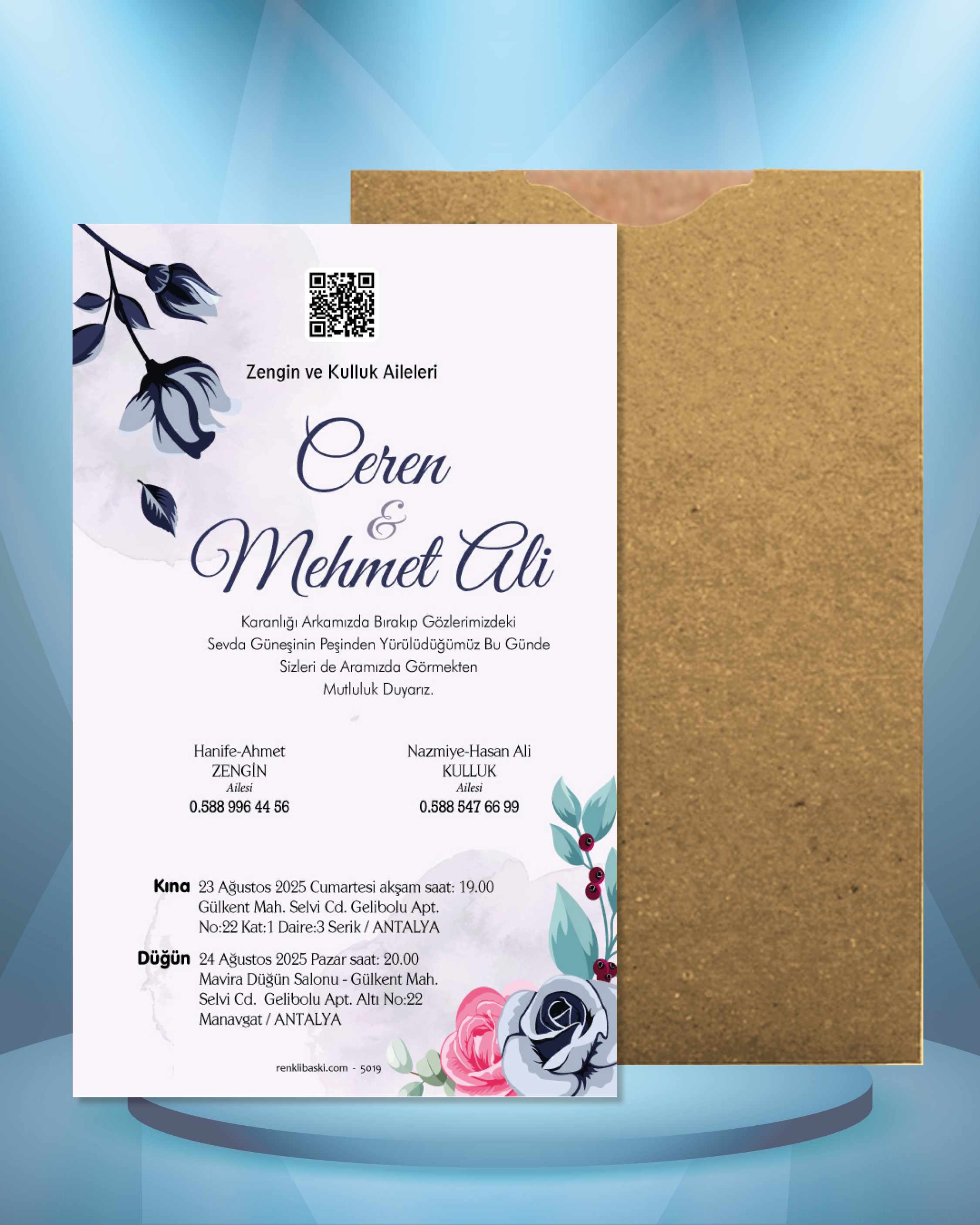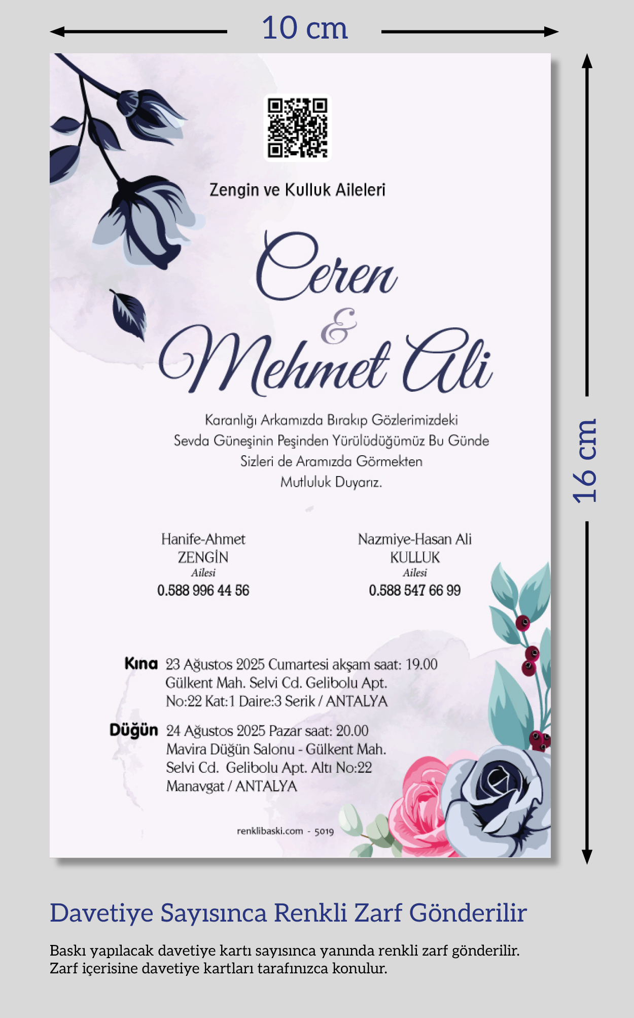 Ekonomik davetiye modelimizin düğün, nişan, kına gibi etkinlikleriniz için tasarlanmasını isteyebilirsiniz. Tasarım ücretsizdir. Tasarım hazırlatmak için 0555 190 02 00 numaralı WhatsApp hattımızla iletişime geçebilirsiniz.