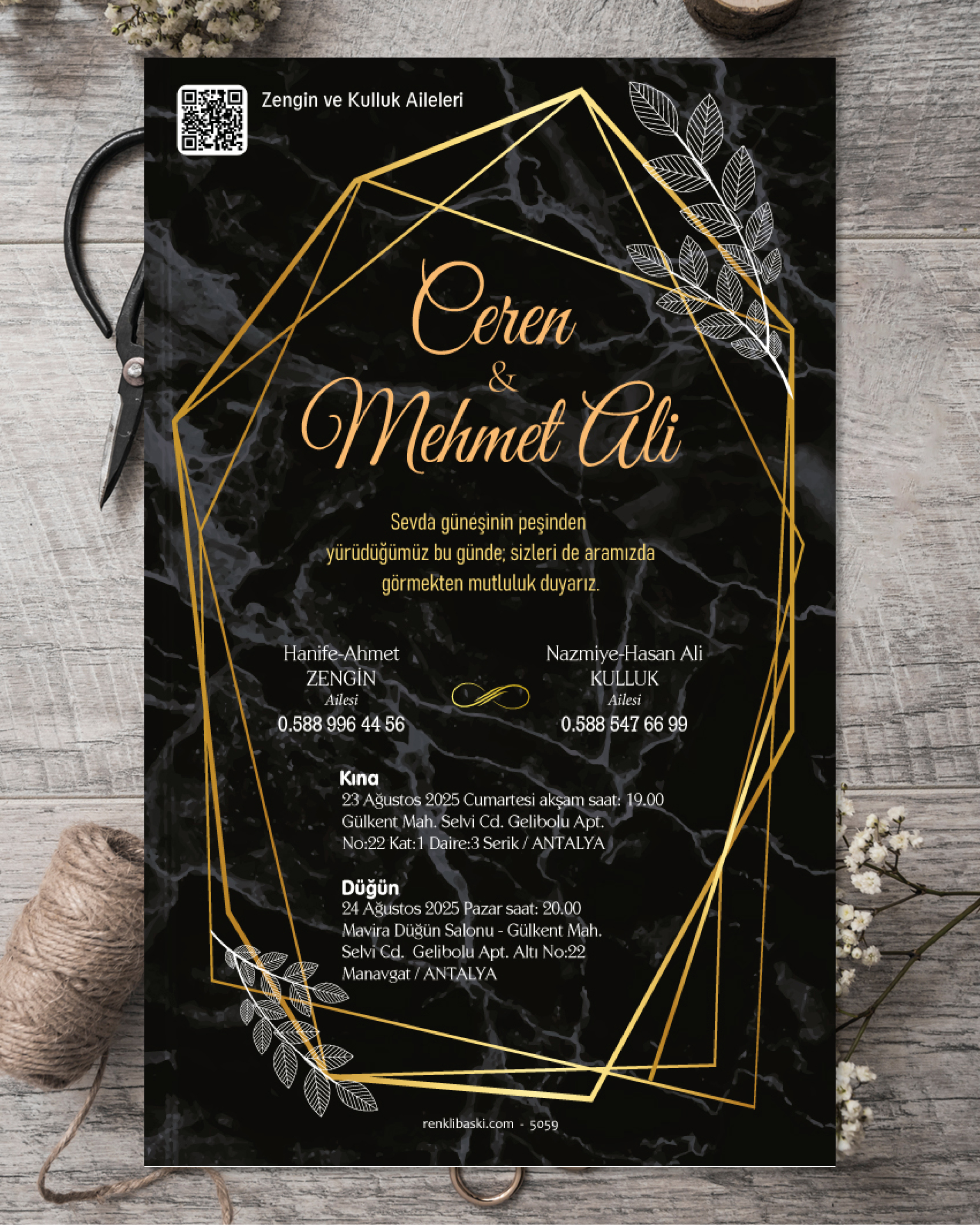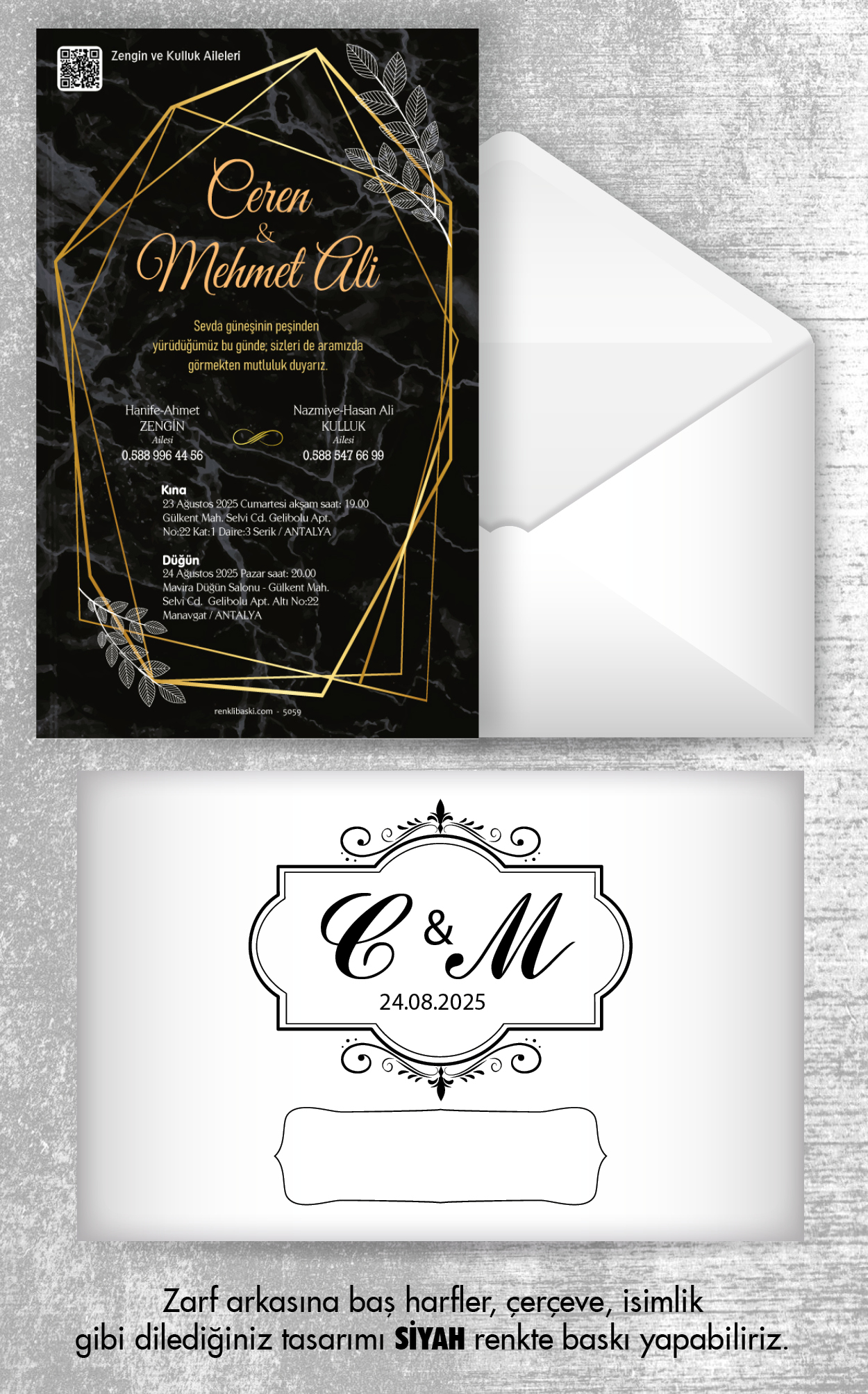 Ekonomik davetiye modelimizin düğün, nişan, kına gibi etkinlikleriniz için tasarlanmasını isteyebilirsiniz. Tasarım ücretsizdir. Tasarım hazırlatmak için 0555 190 02 00 numaralı WhatsApp hattımızla iletişime geçebilirsiniz.