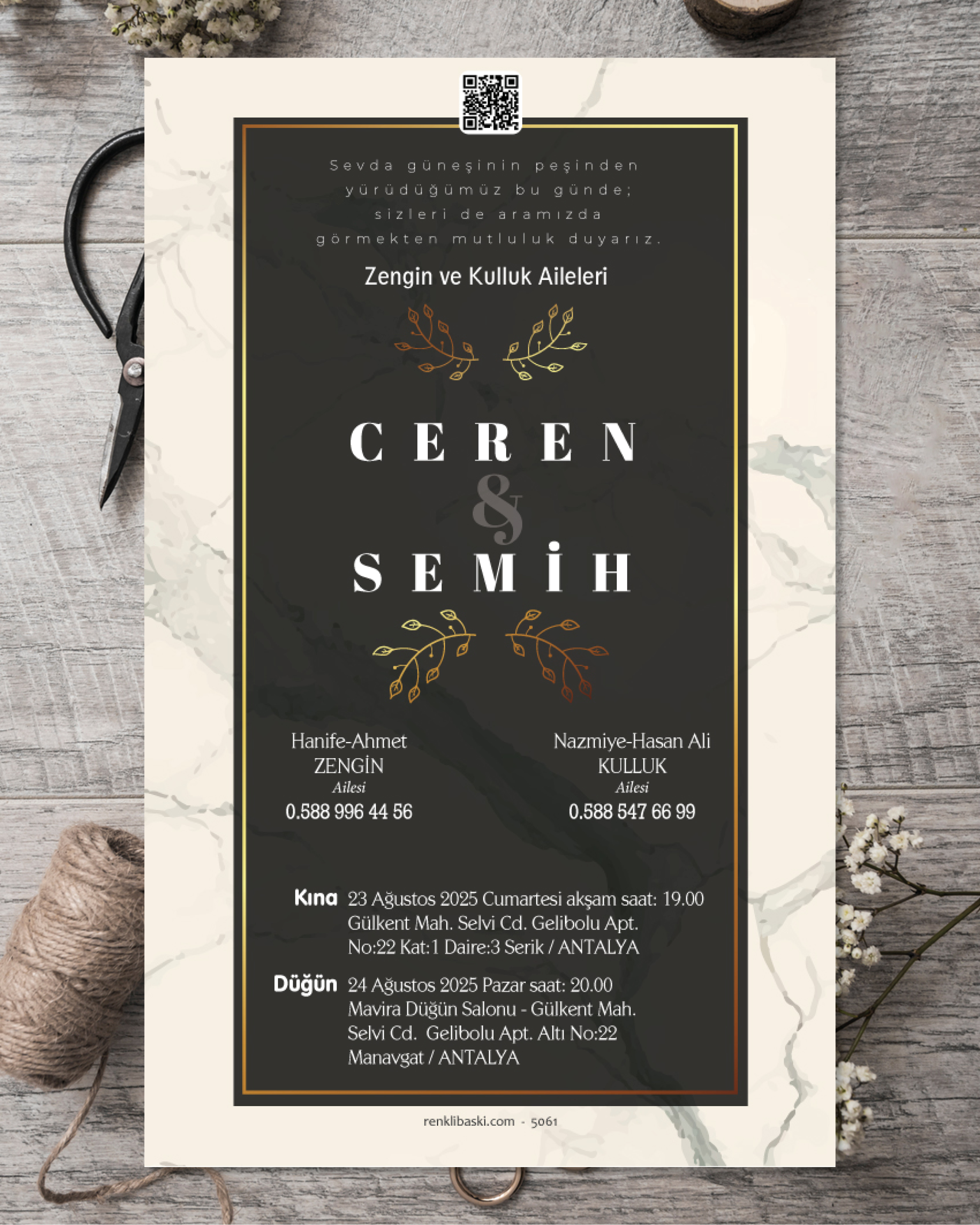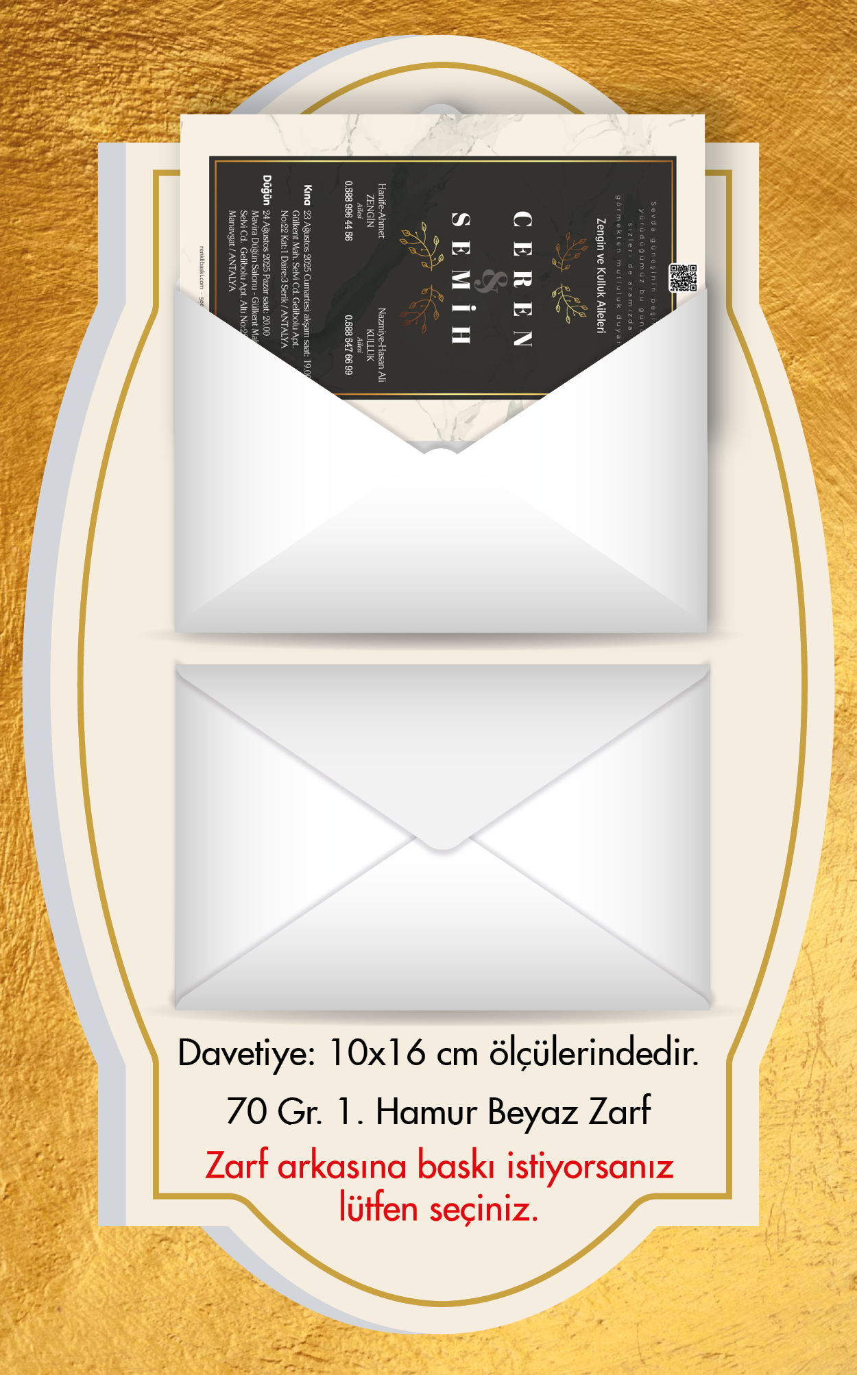 Ekonomik davetiye modelimizin düğün, nişan, kına gibi etkinlikleriniz için tasarlanmasını isteyebilirsiniz. Tasarım ücretsizdir. Tasarım hazırlatmak için 0555 190 02 00 numaralı WhatsApp hattımızla iletişime geçebilirsiniz.