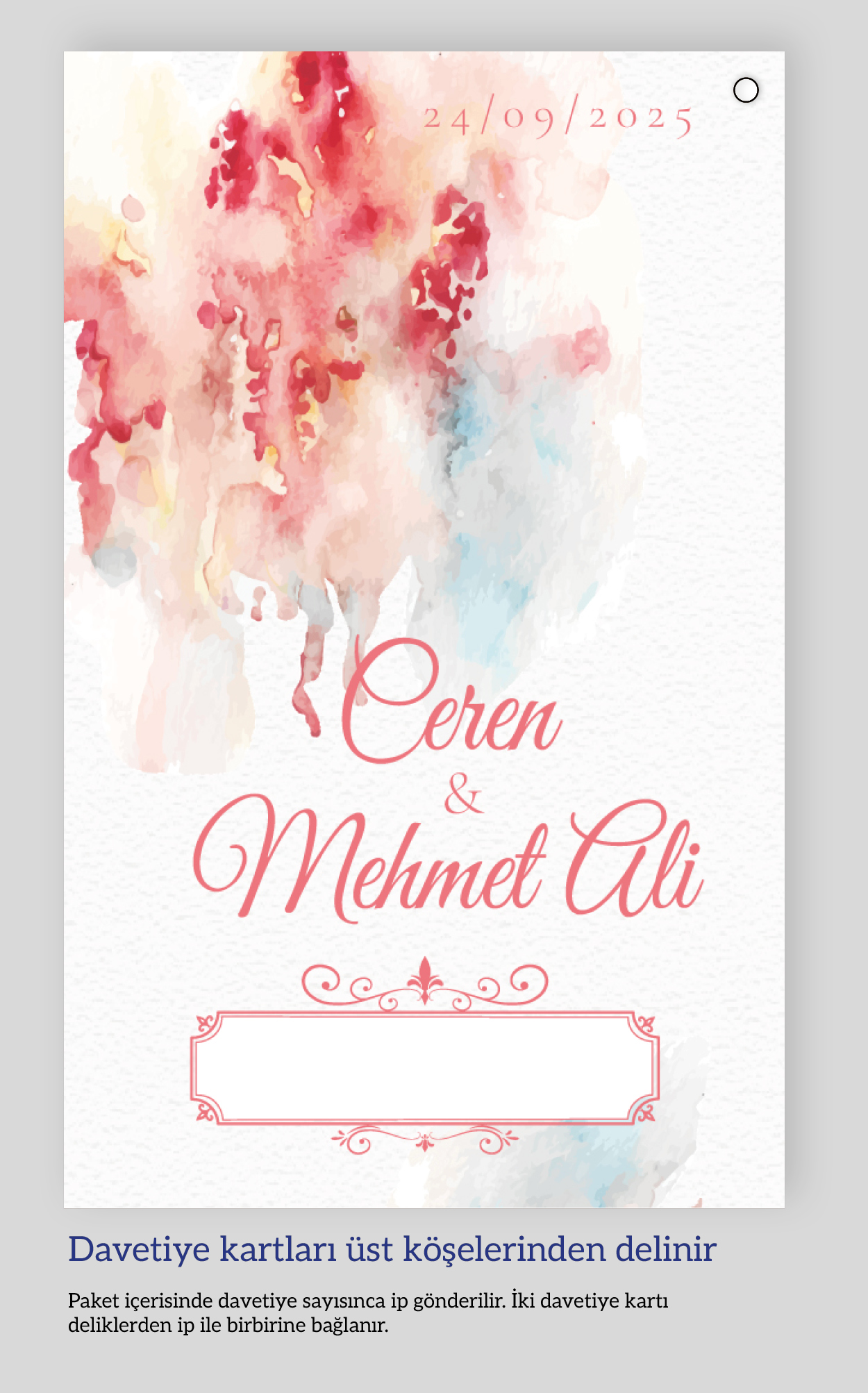 Dikey ikiz ip bağlamalı davetiyeler