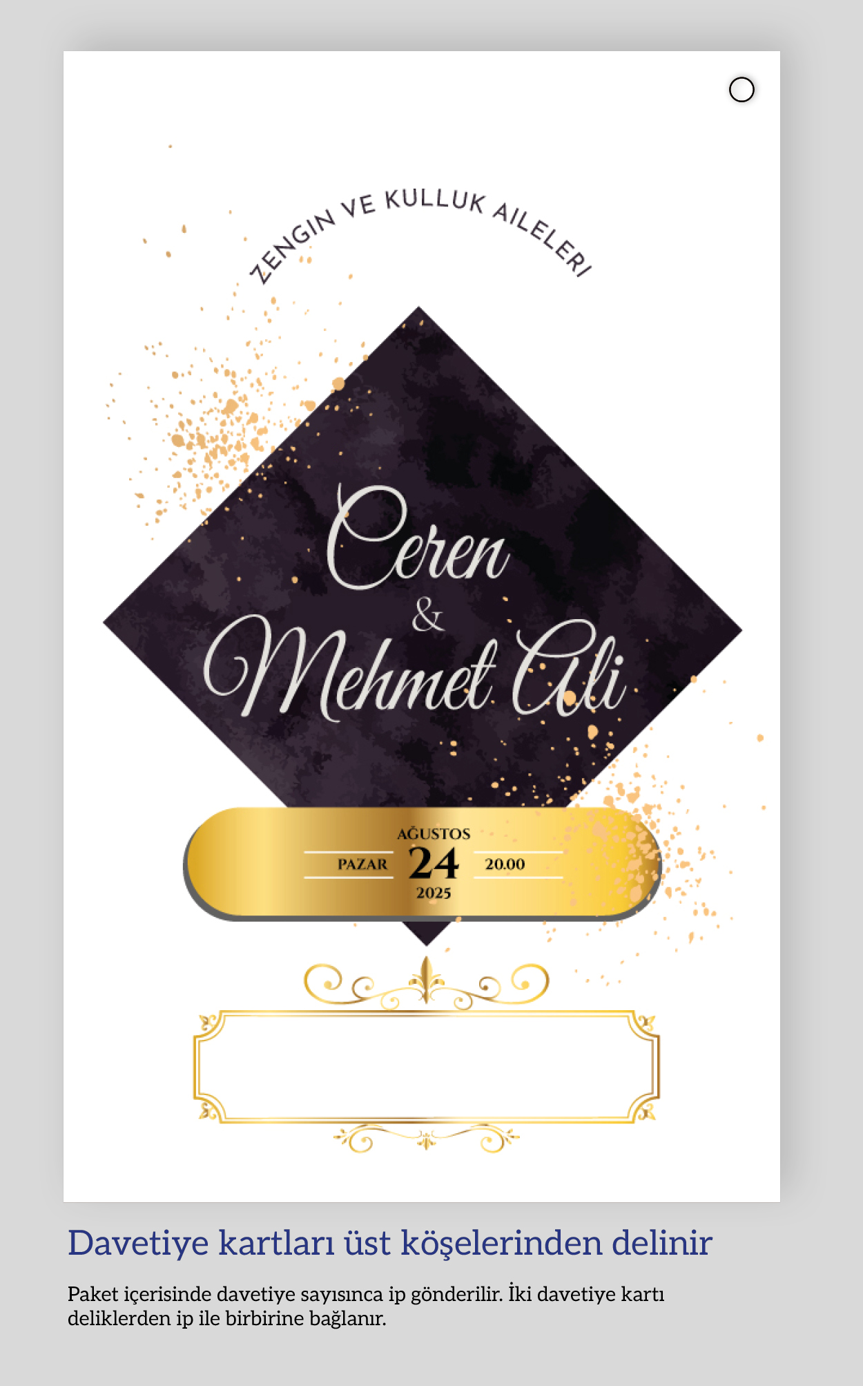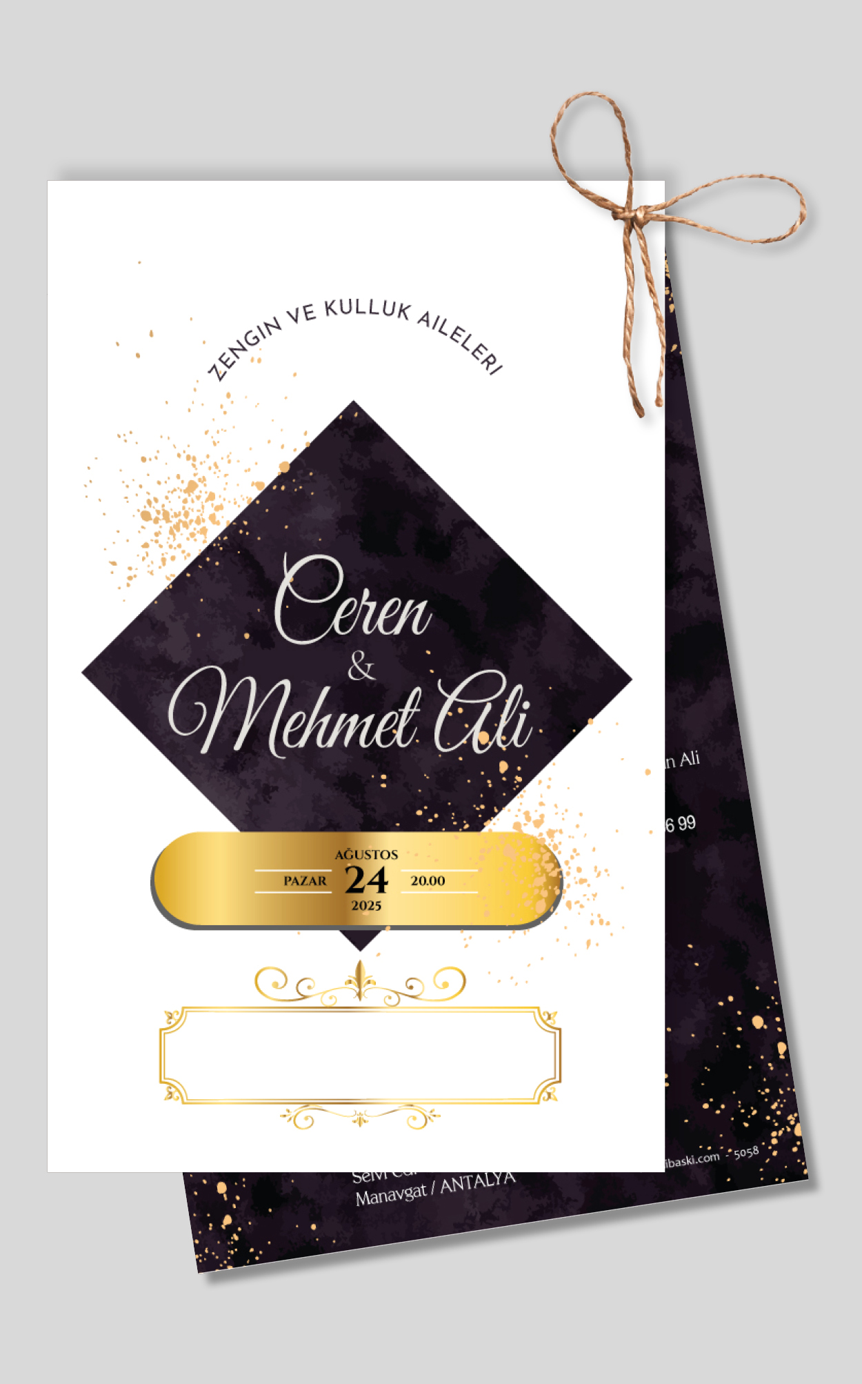 Dikey ikiz ip bağlamalı davetiyeler
