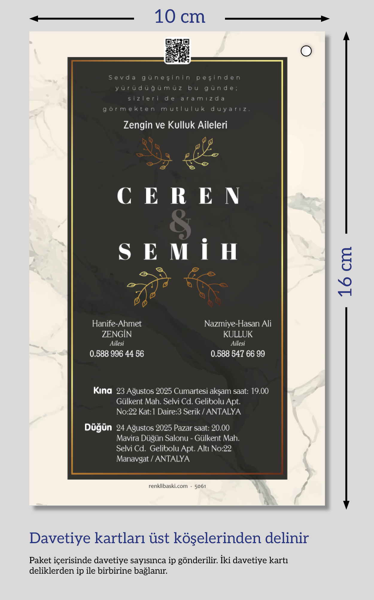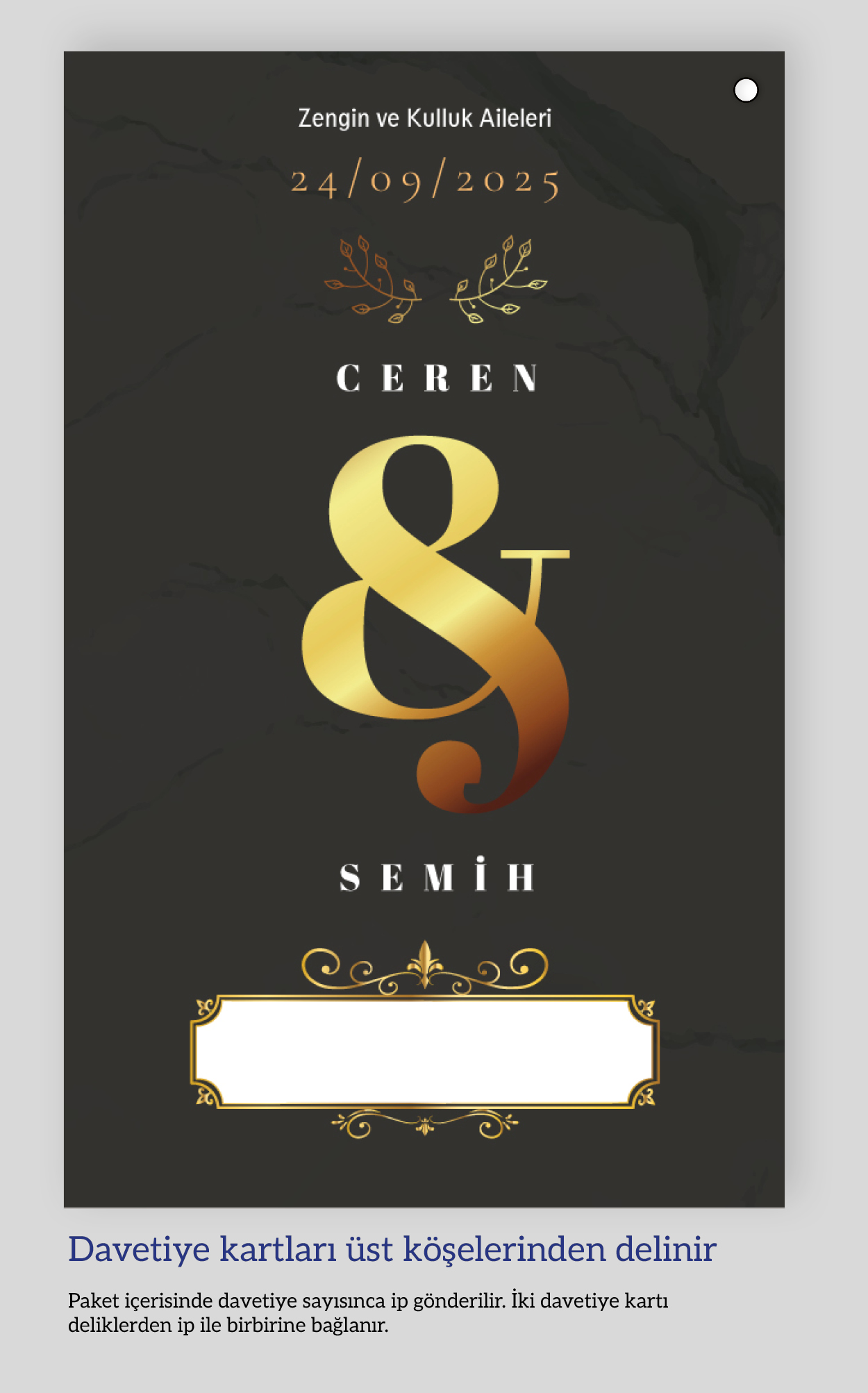 Dikey ikiz ip bağlamalı davetiyeler