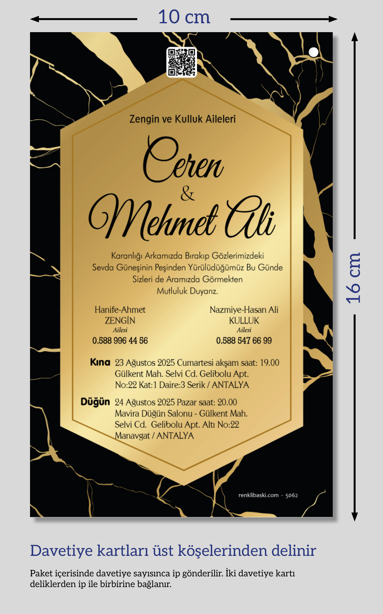 Dikey ikiz ip bağlamalı davetiyeler