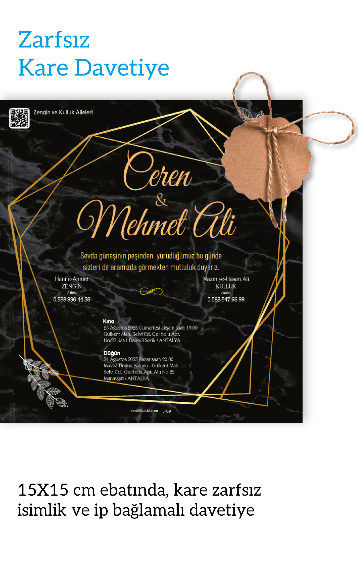Kare Ekonomik Düğün Davetiyesi 5059 - 0 ADET
