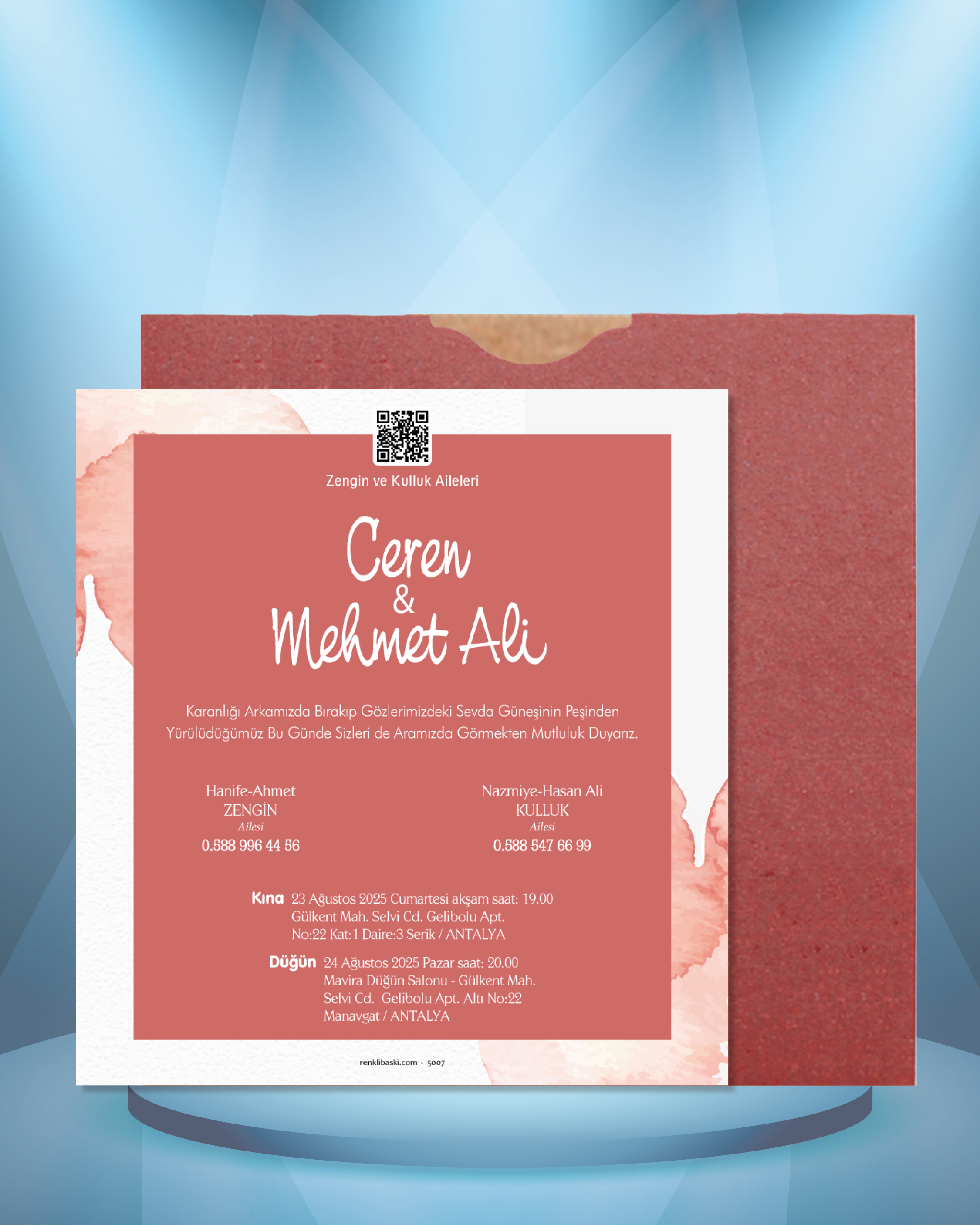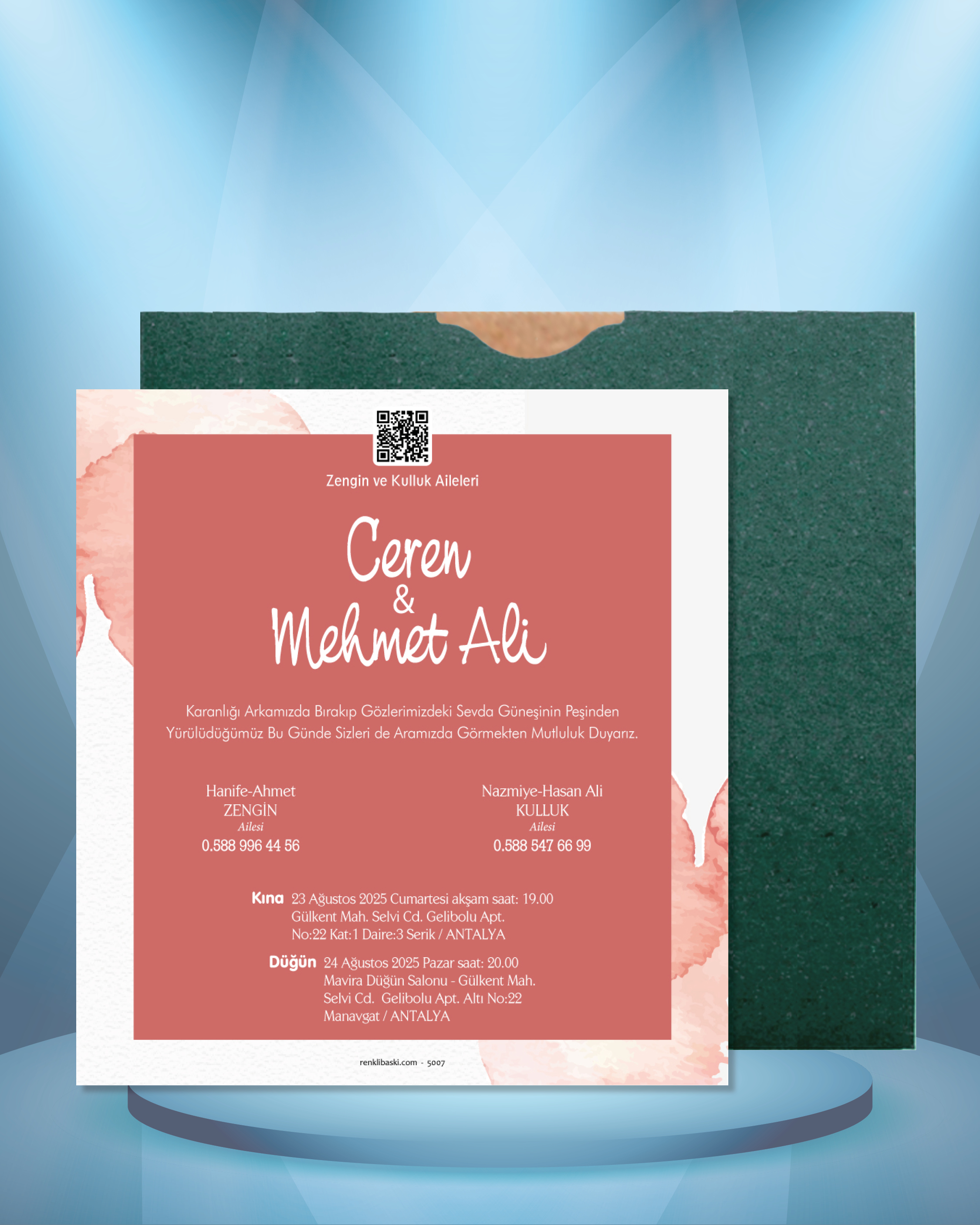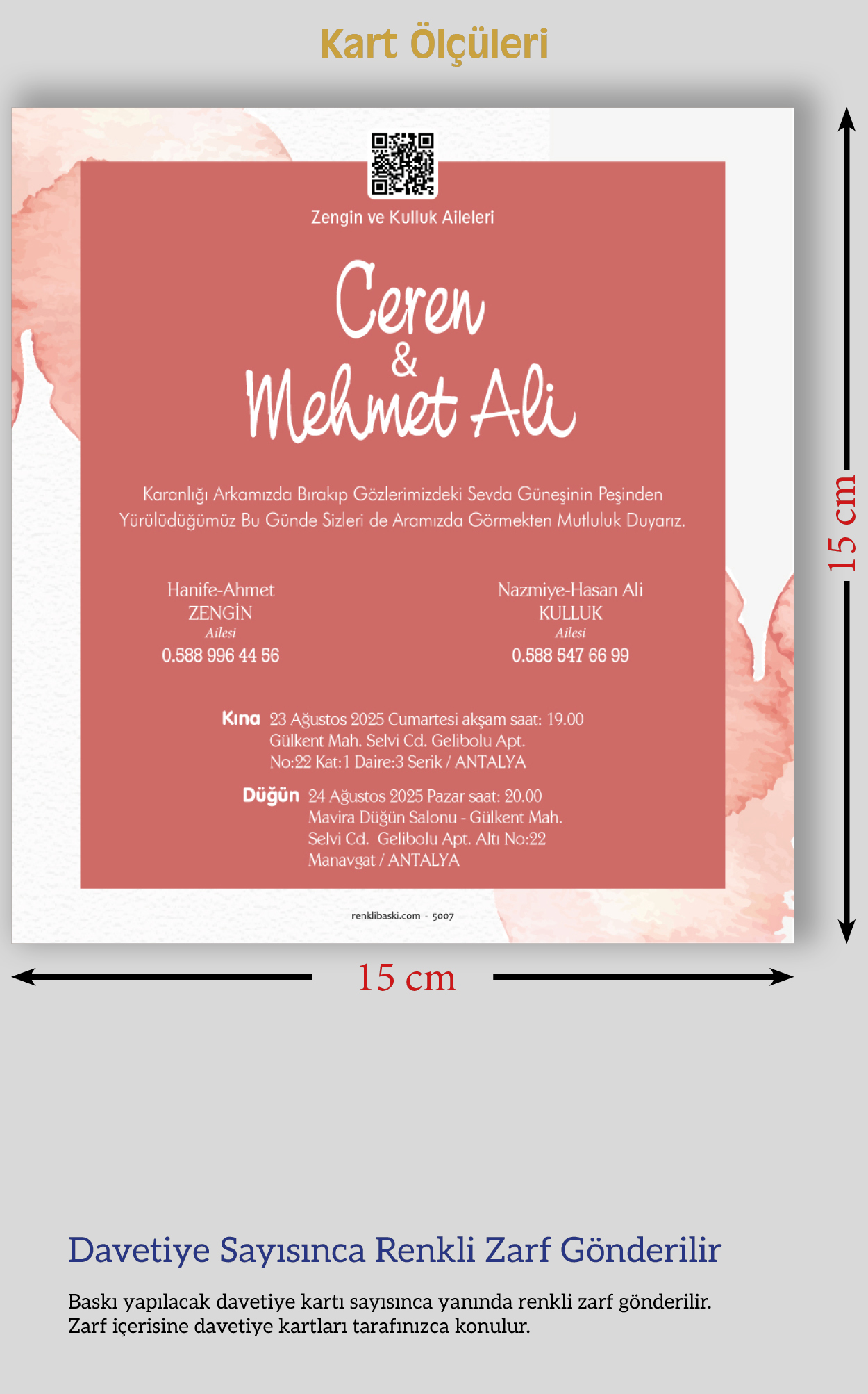 Kare Renkli Zarflı Davetiye 5007