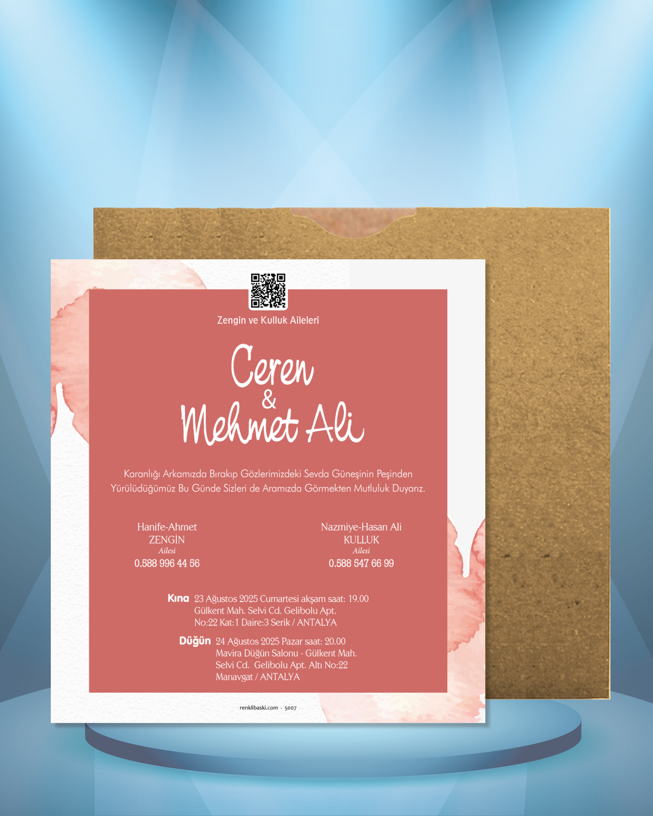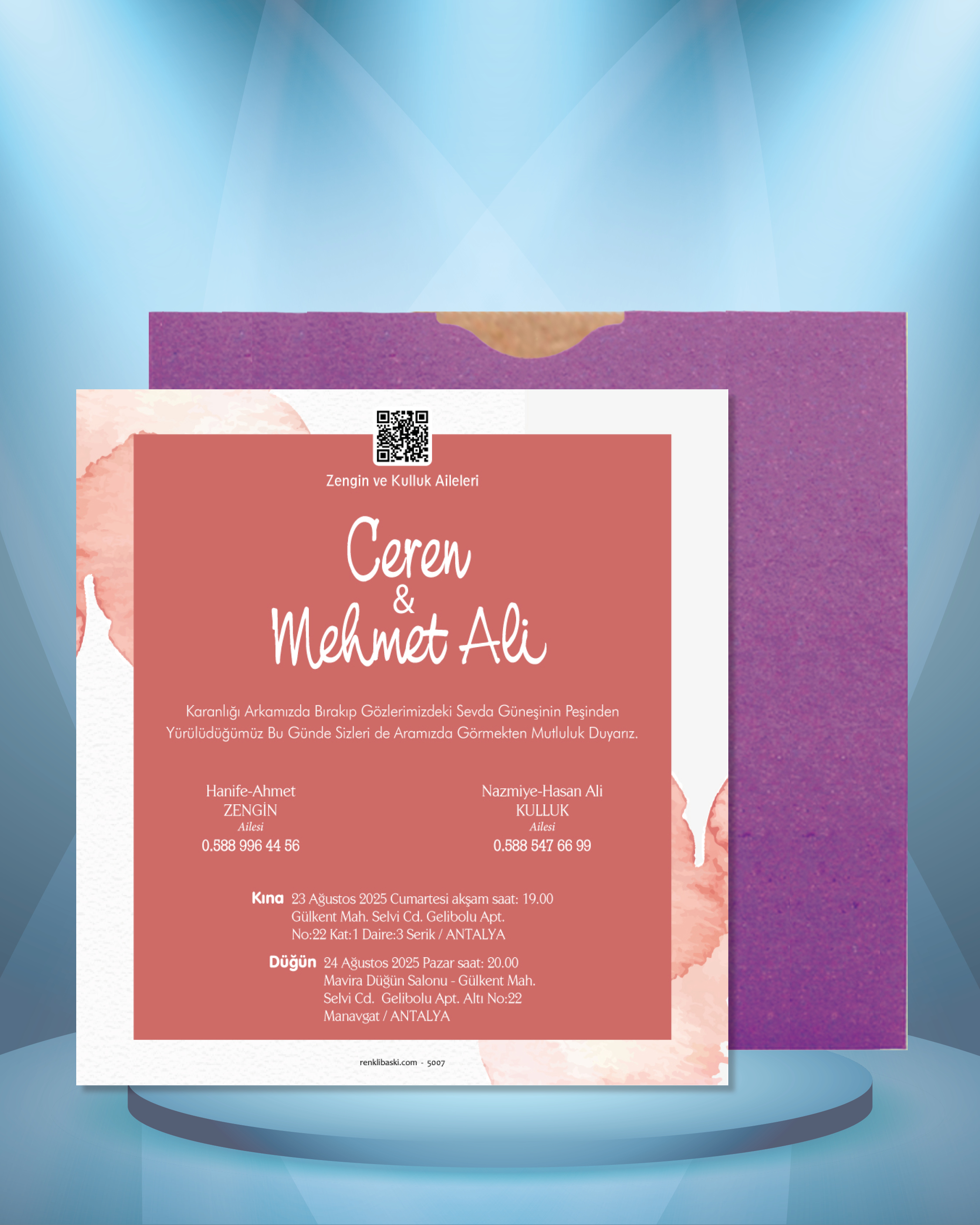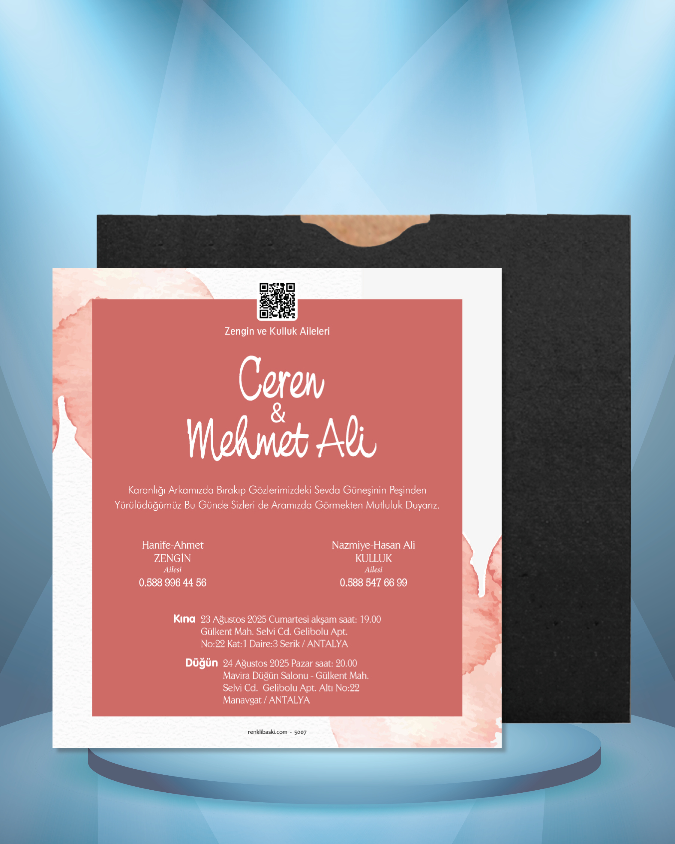 Kare Renkli Zarflı Davetiye 5007