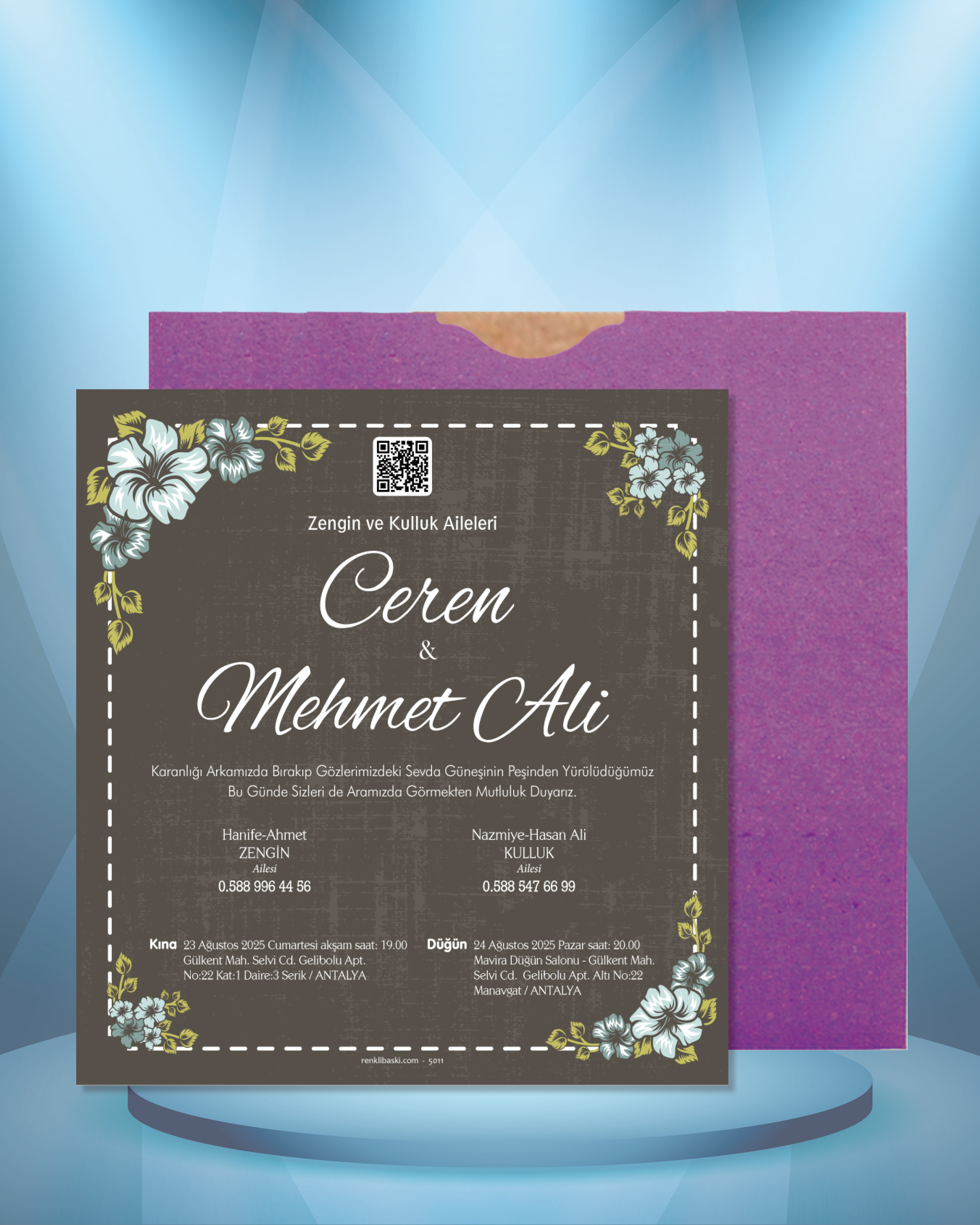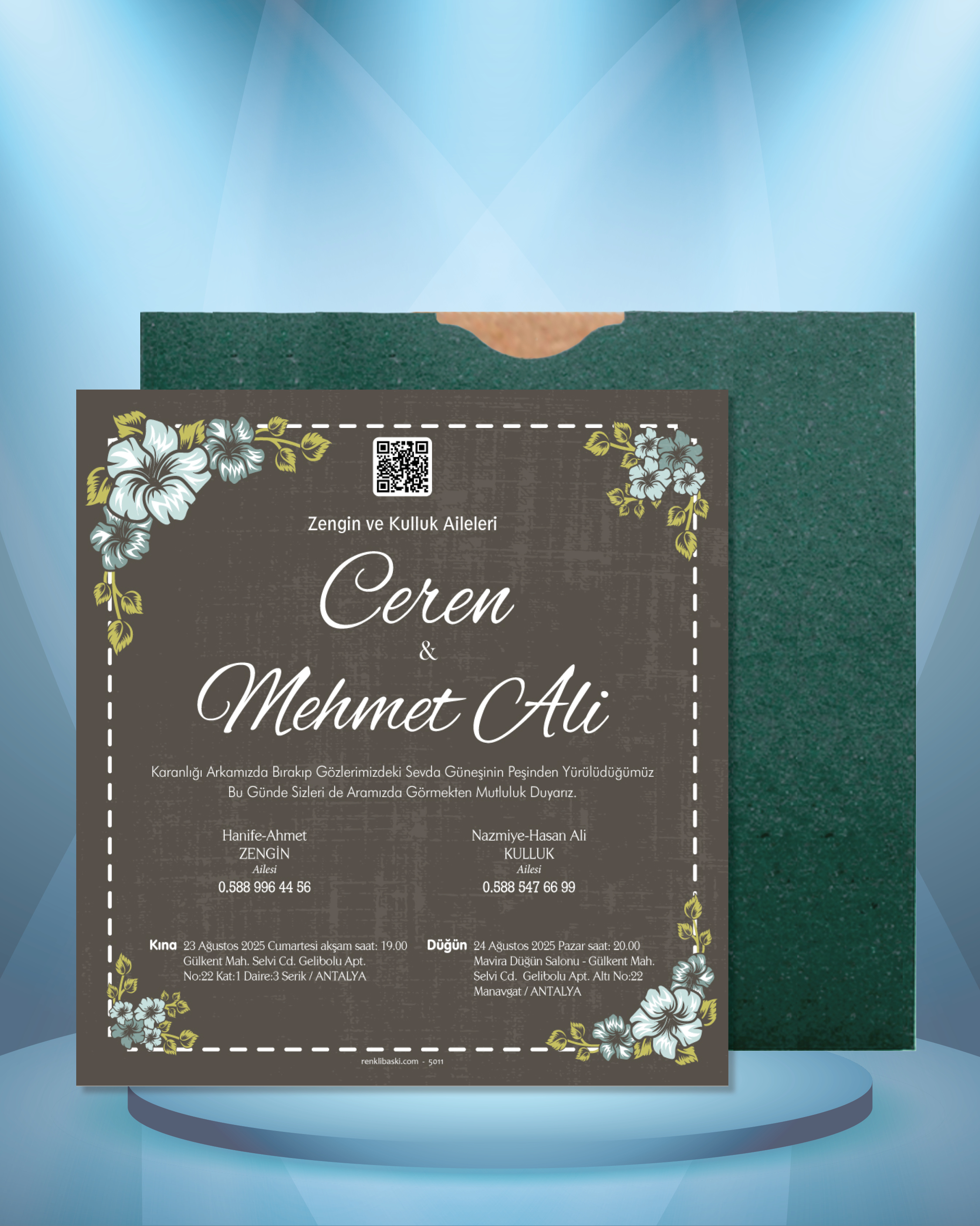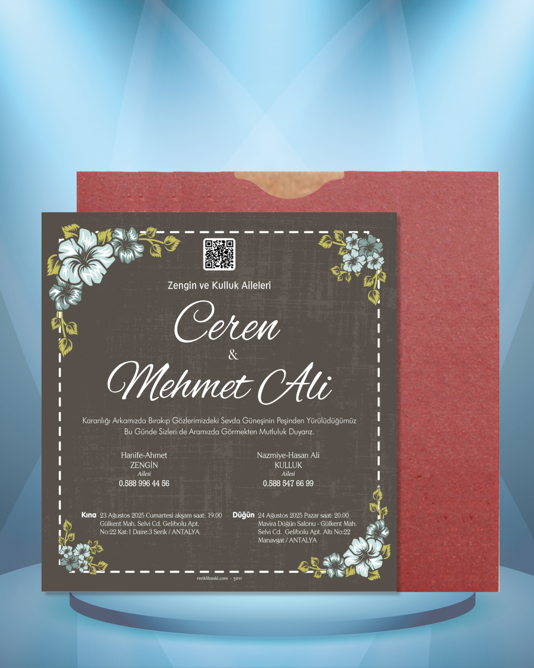 Kare Renkli Zarflı Davetiye 5011