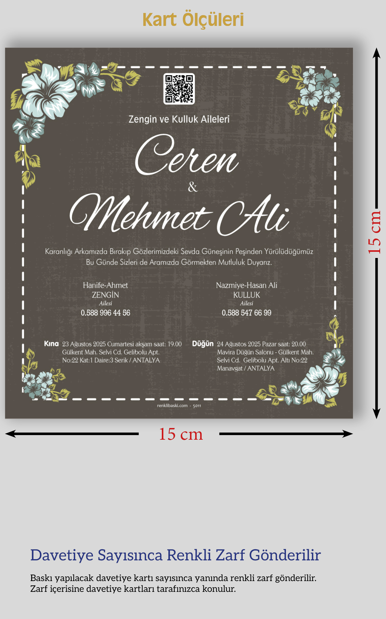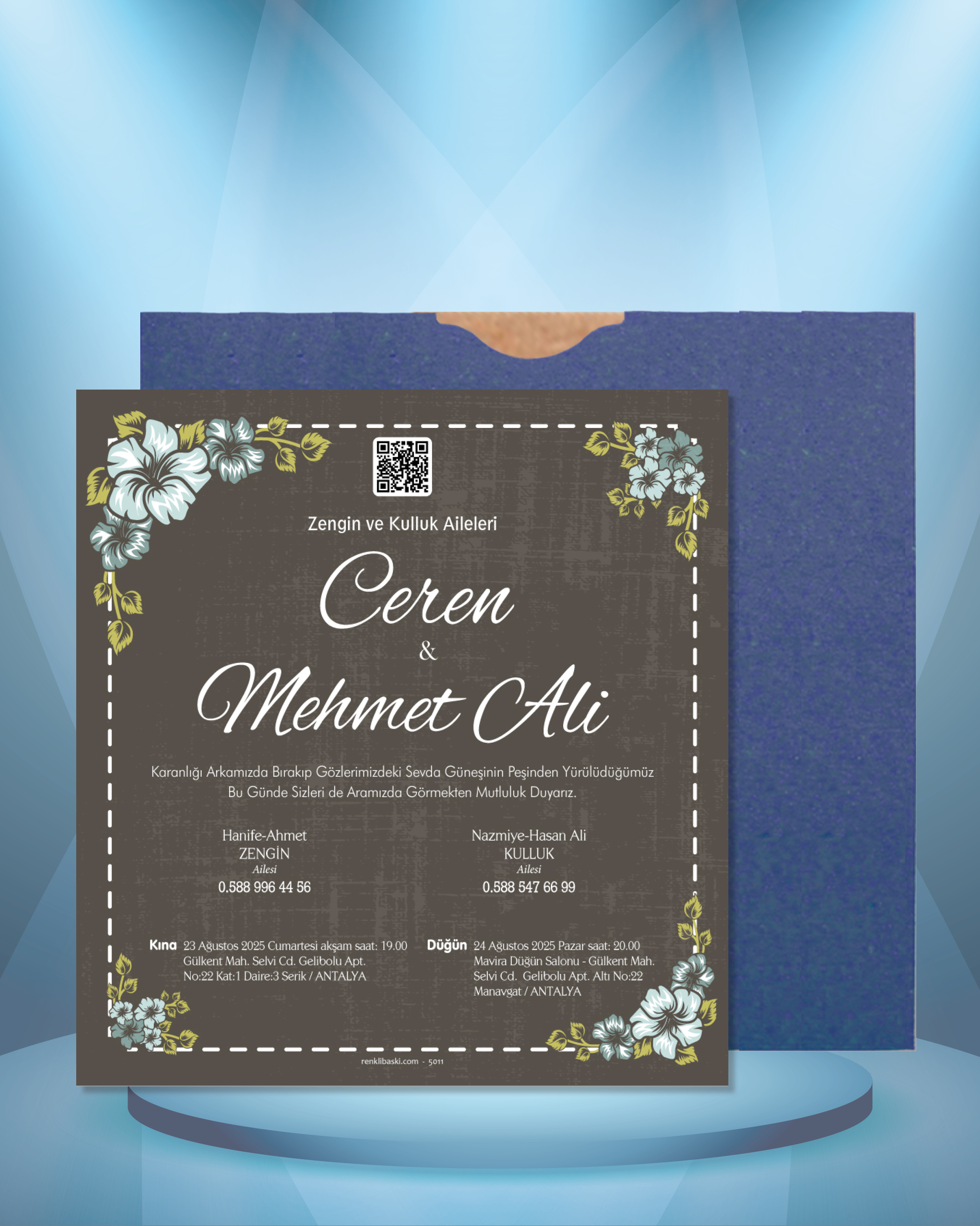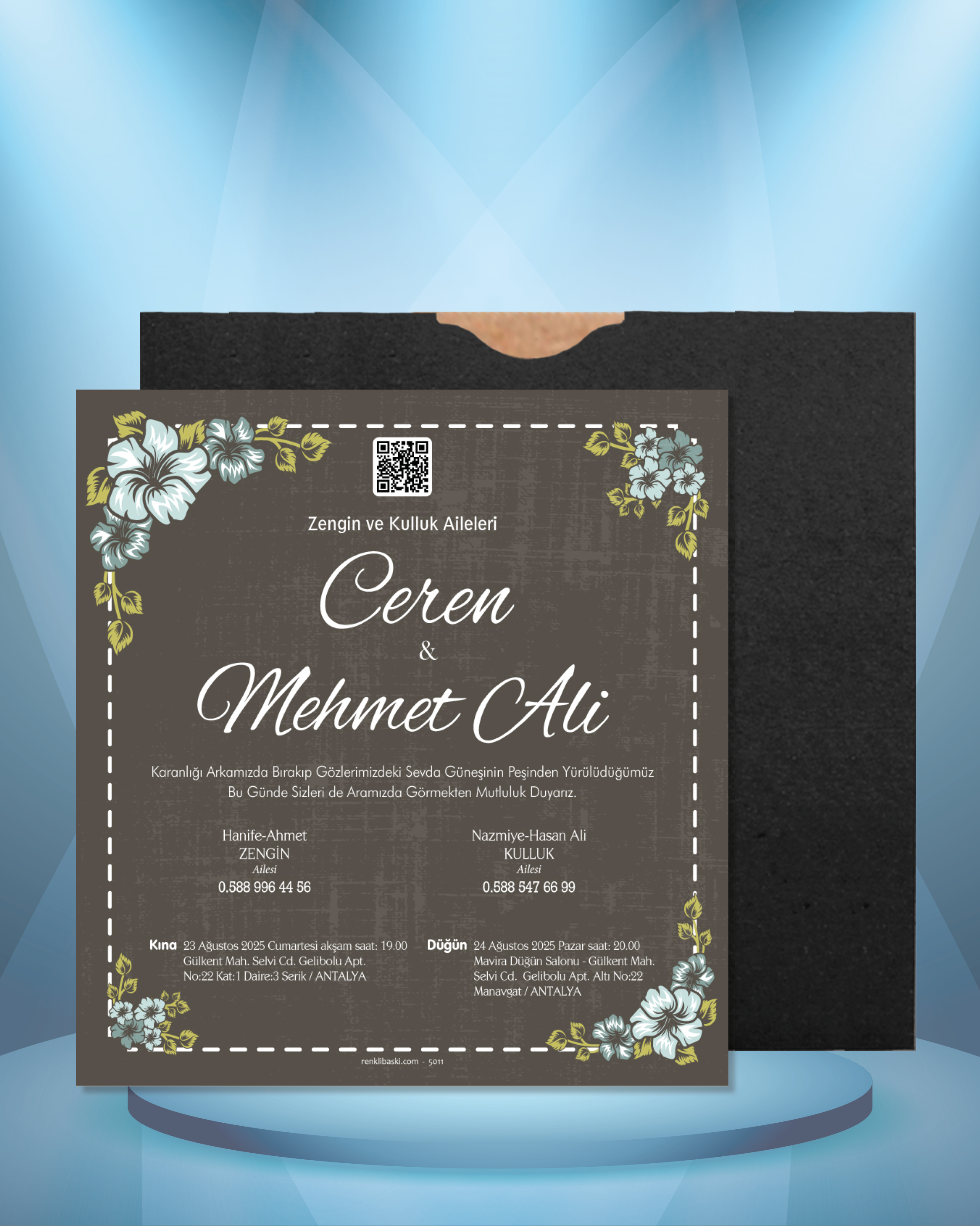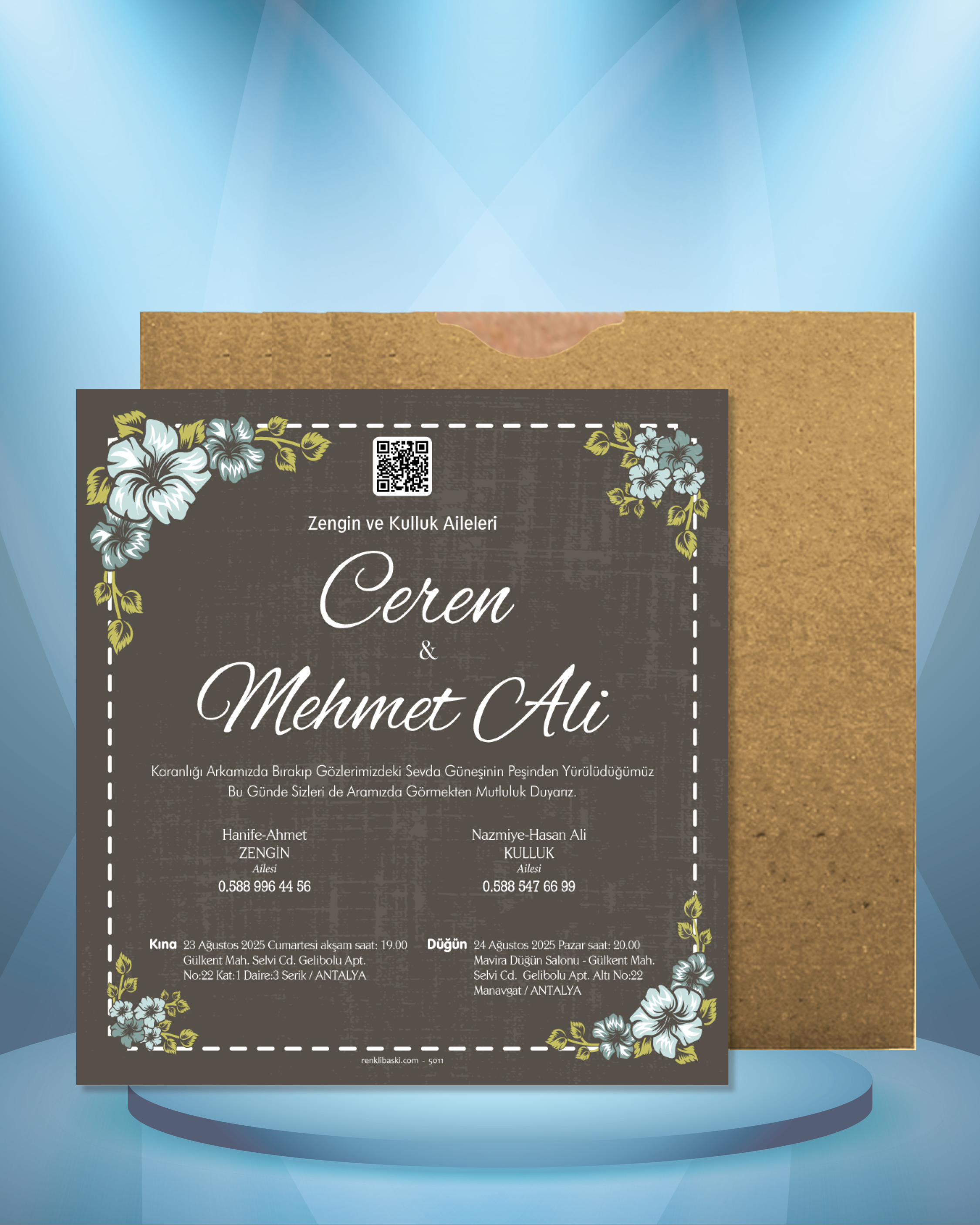 Kare Renkli Zarflı Davetiye 5011