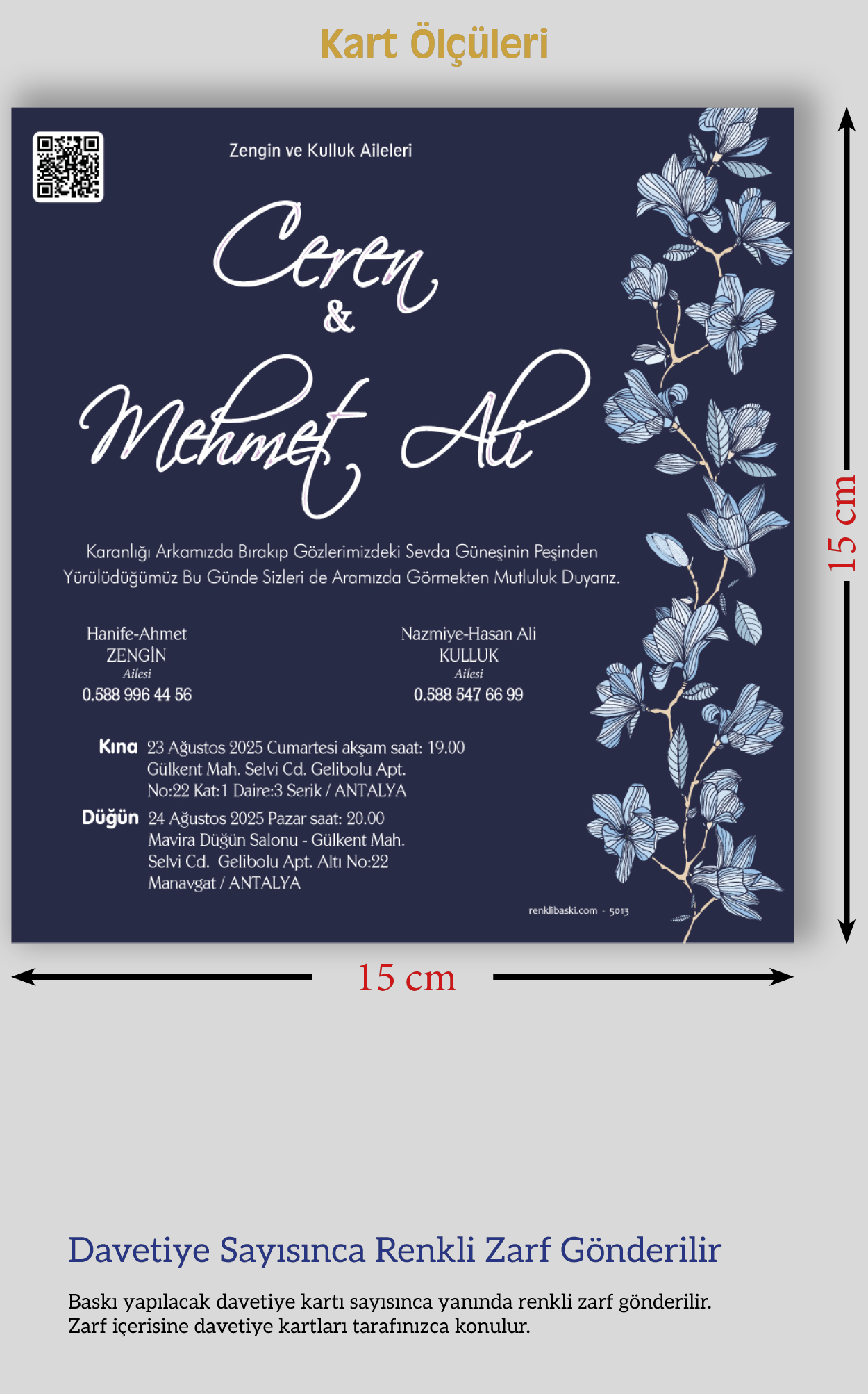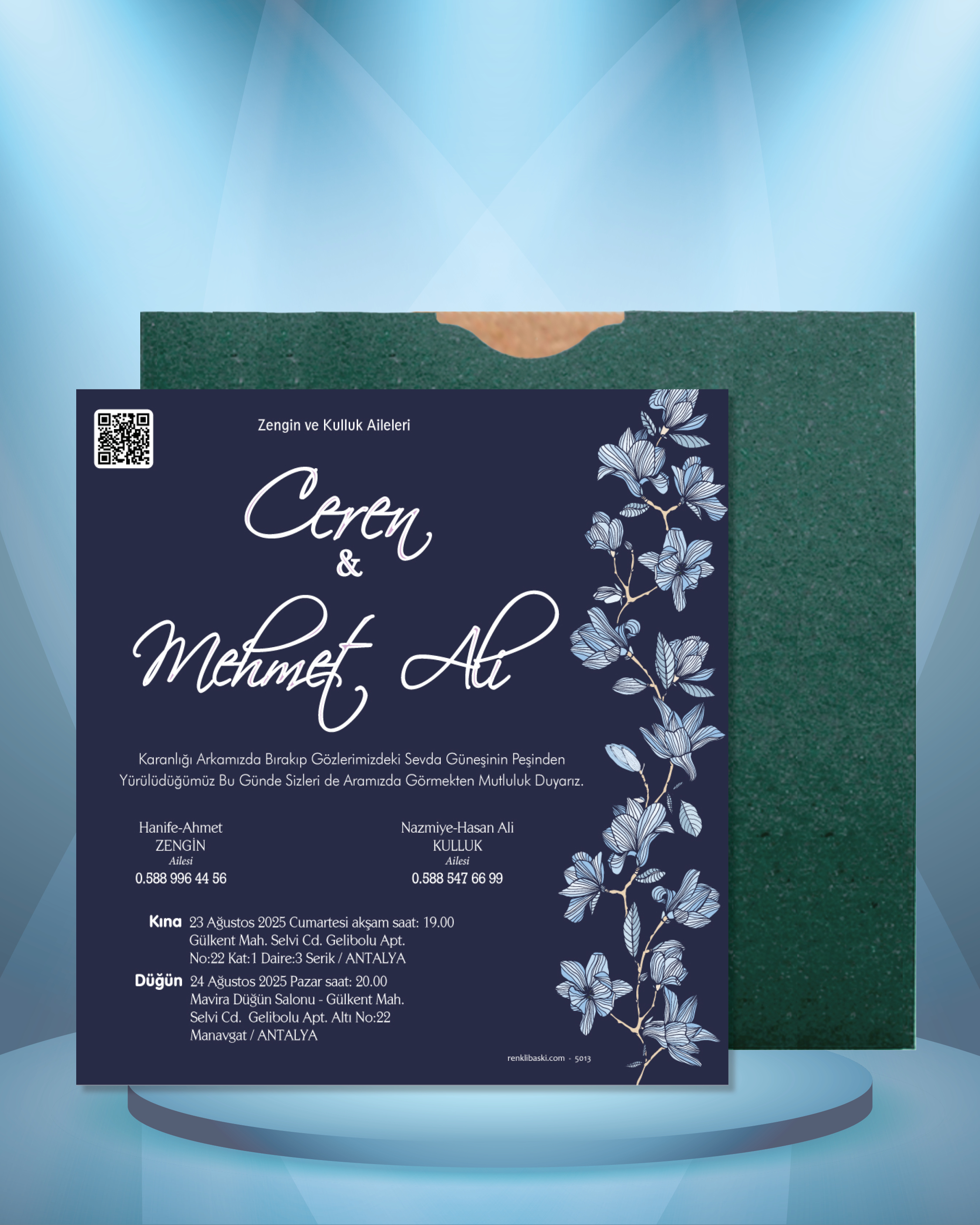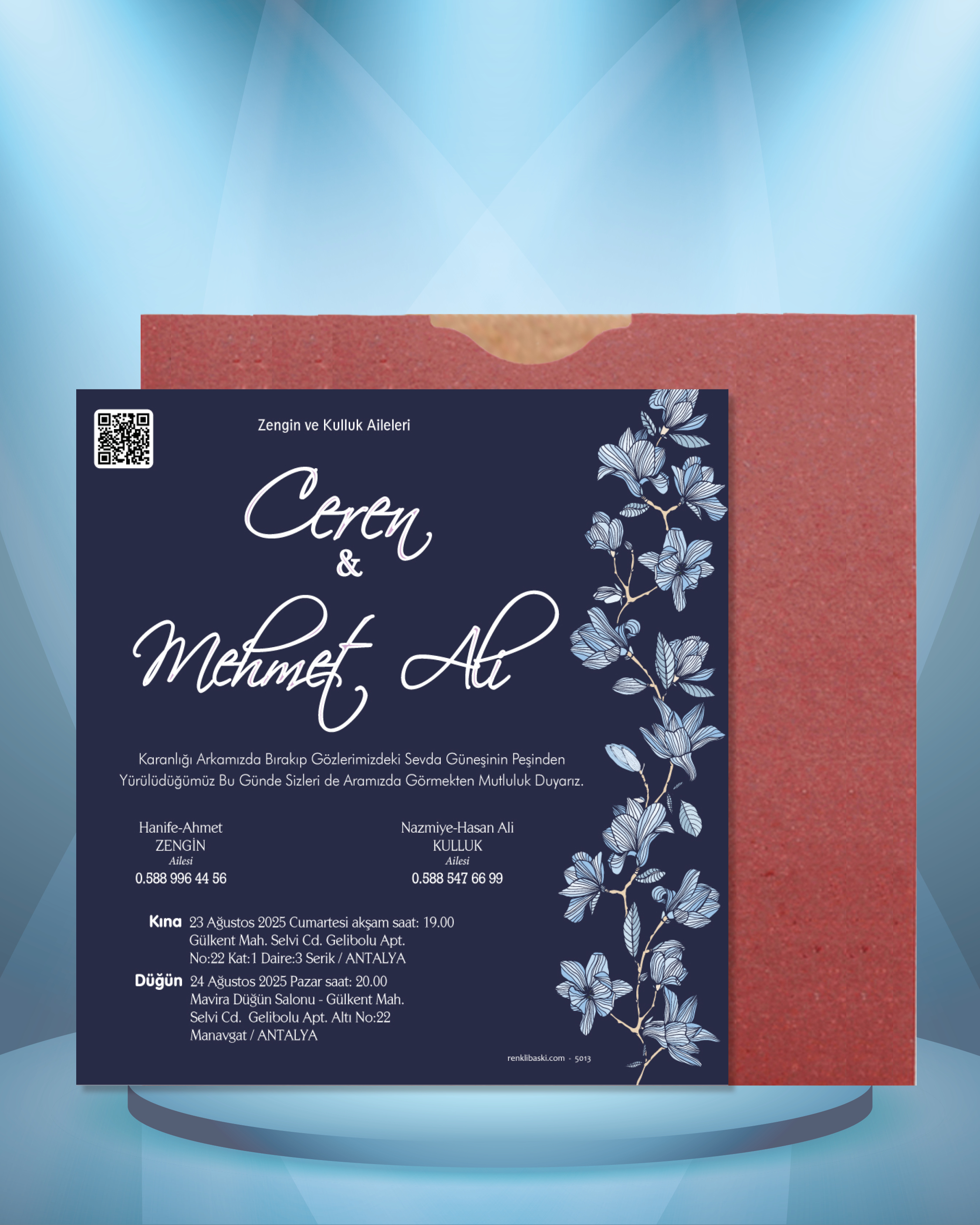 Kare Renkli Zarflı Davetiye 5013