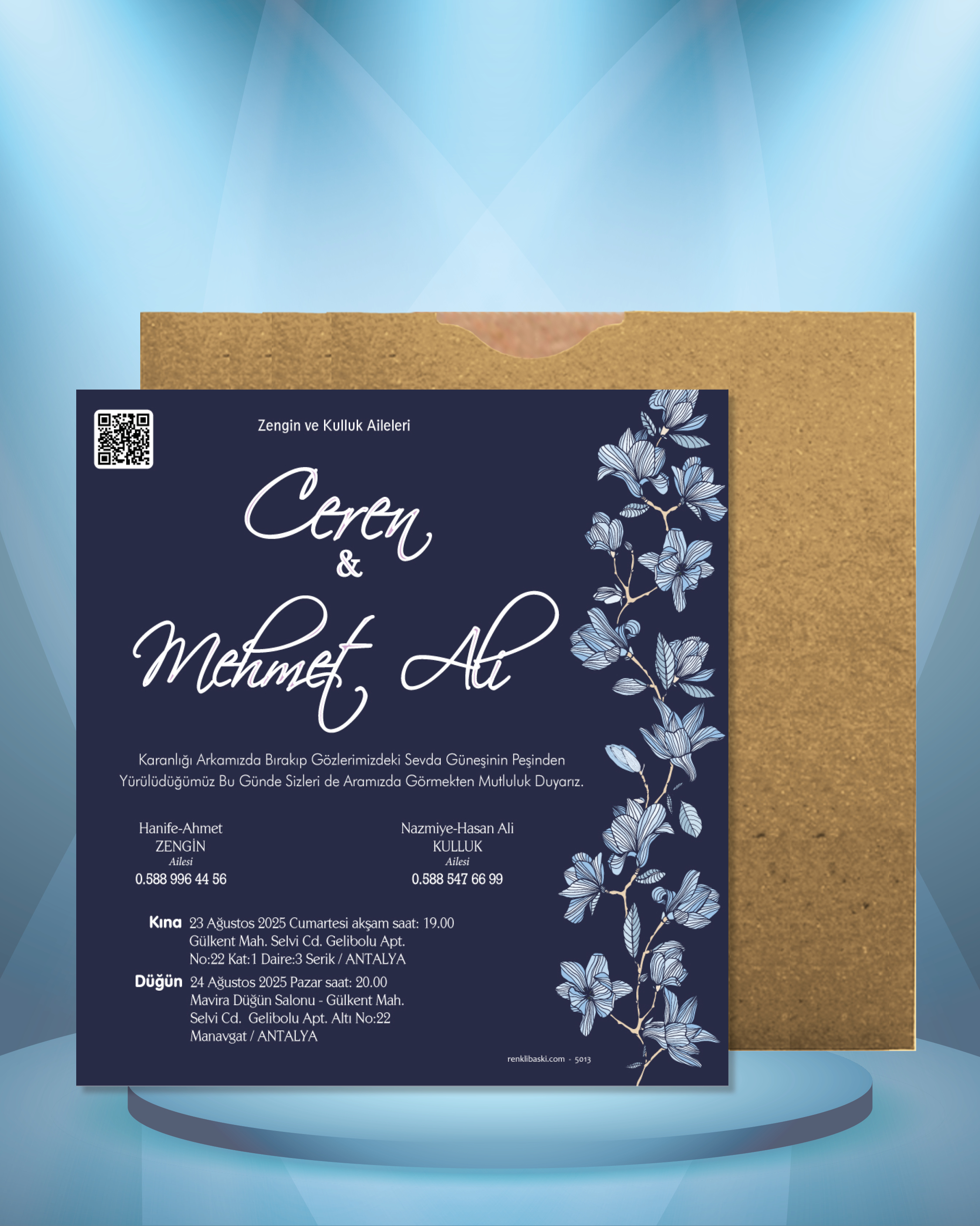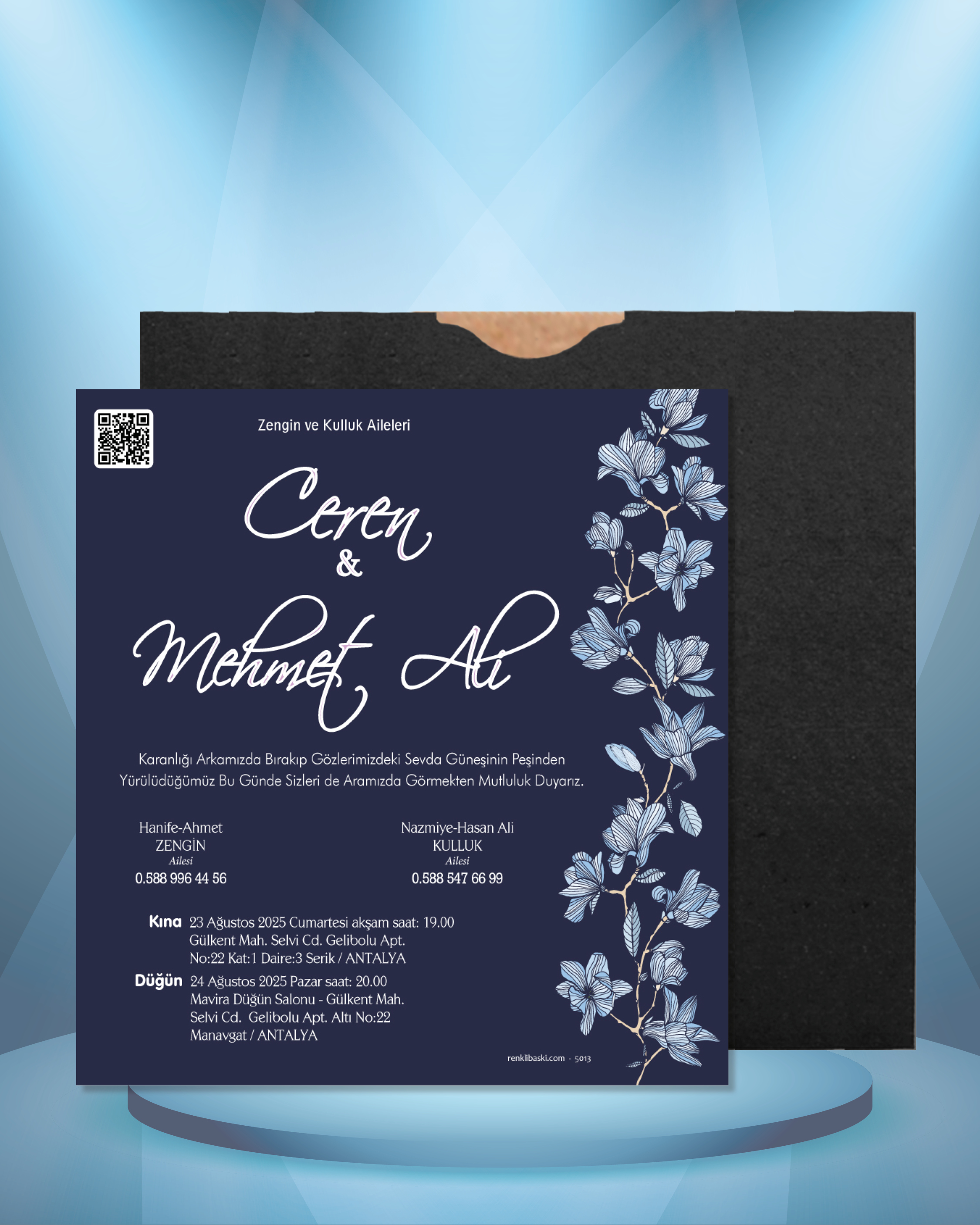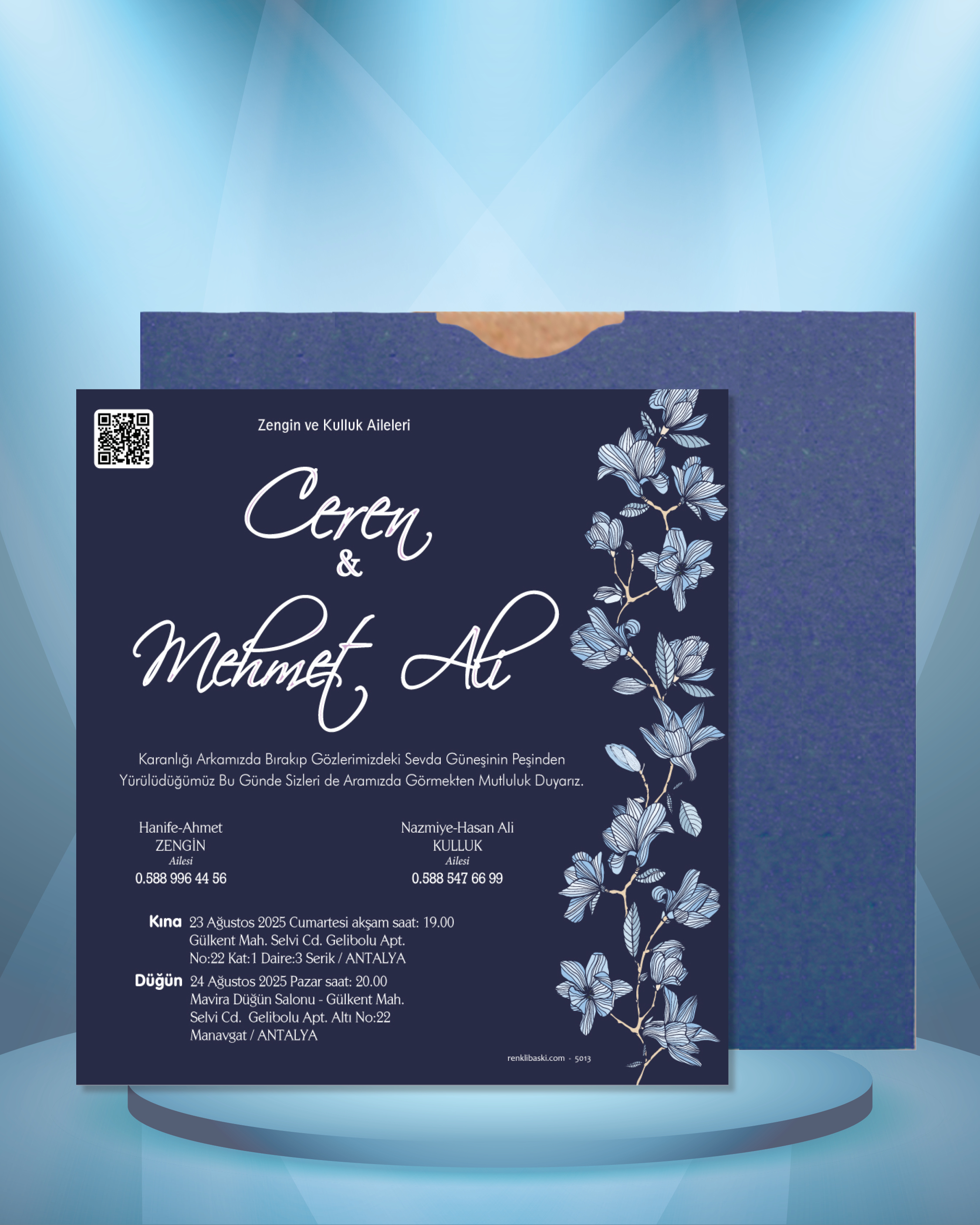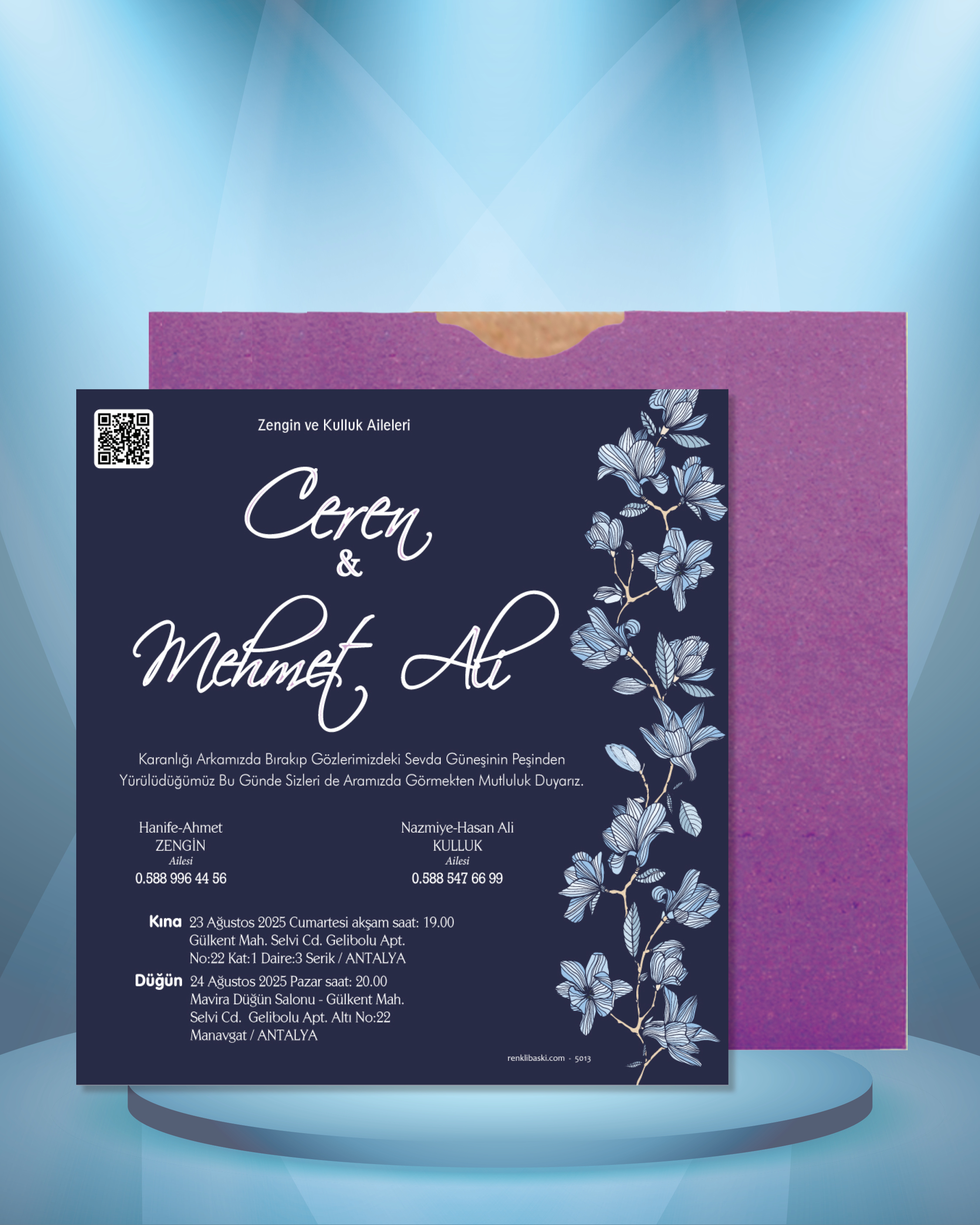 Kare Renkli Zarflı Davetiye 5013