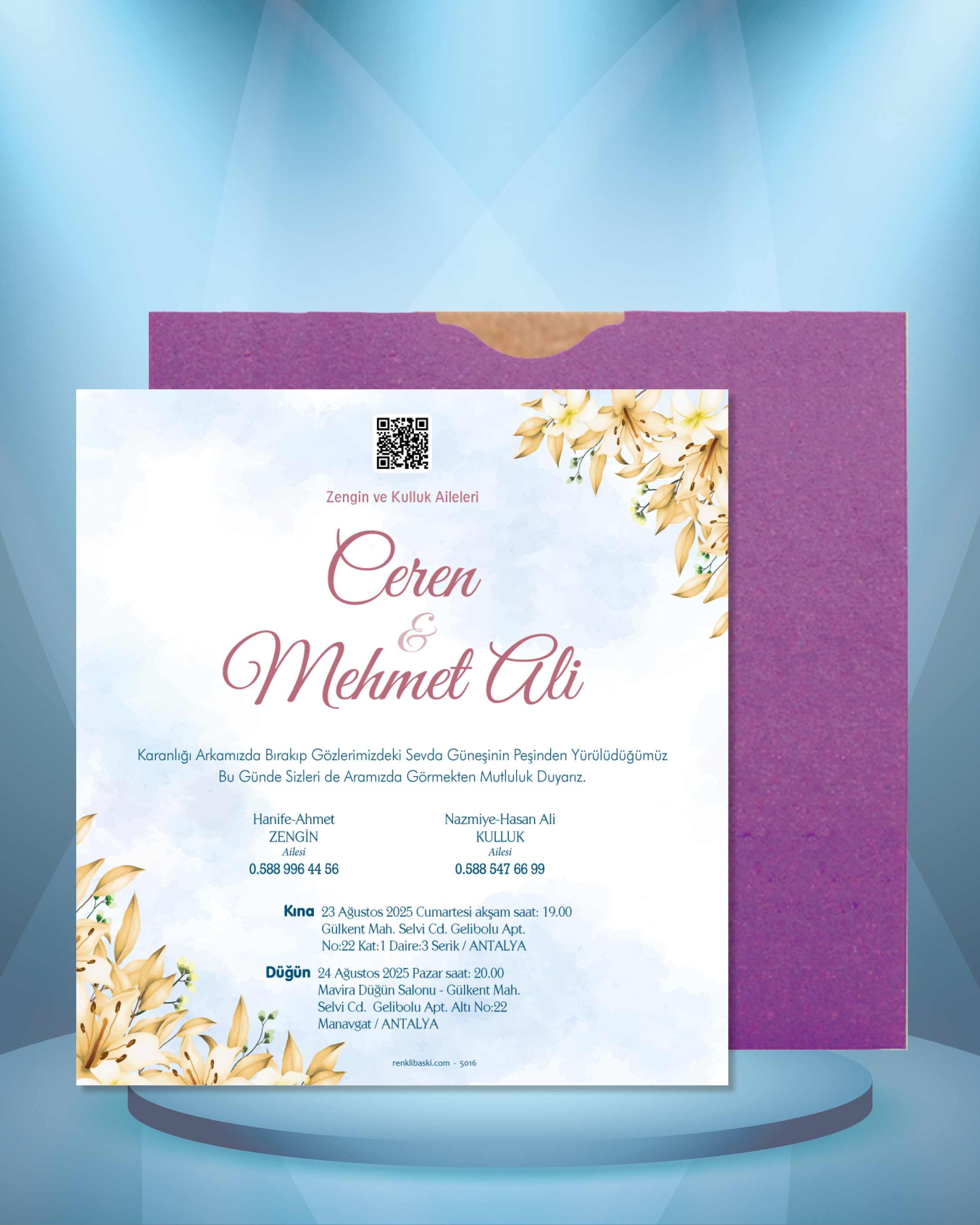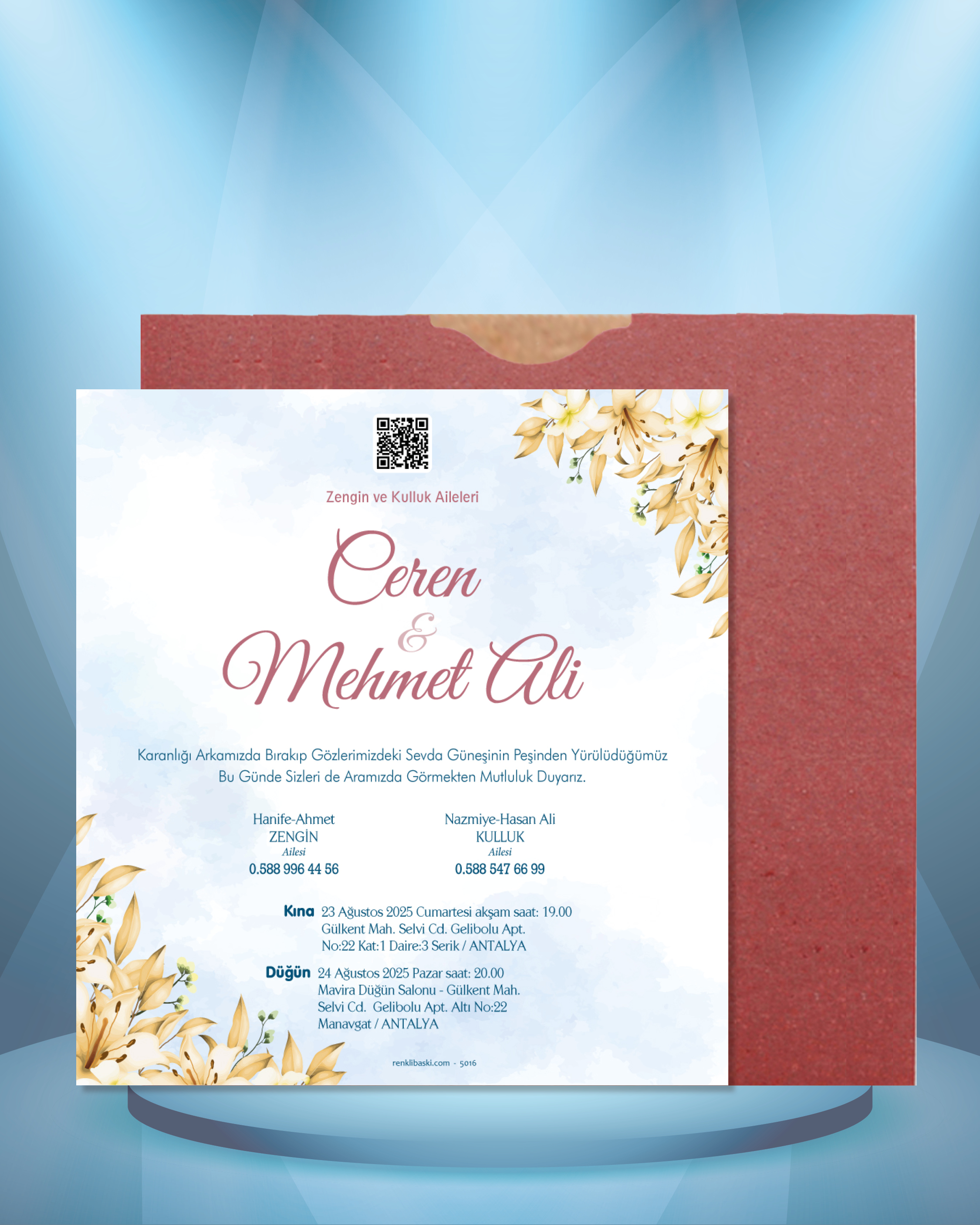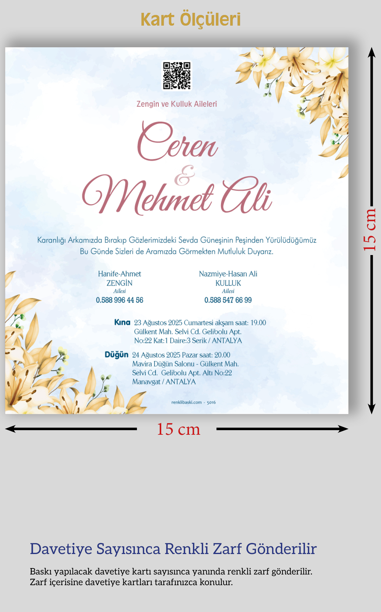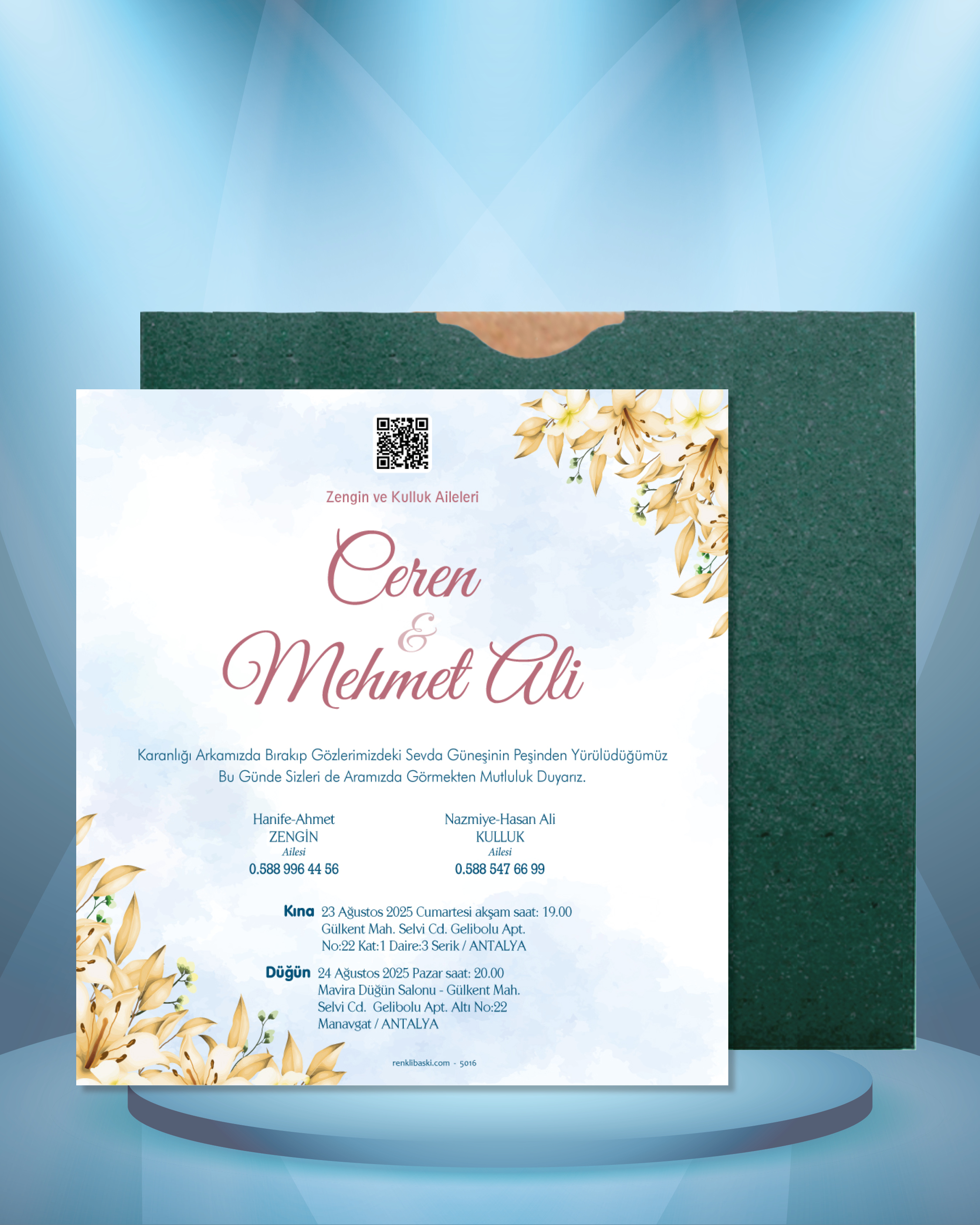 Kare Renkli Zarflı Davetiye 5016