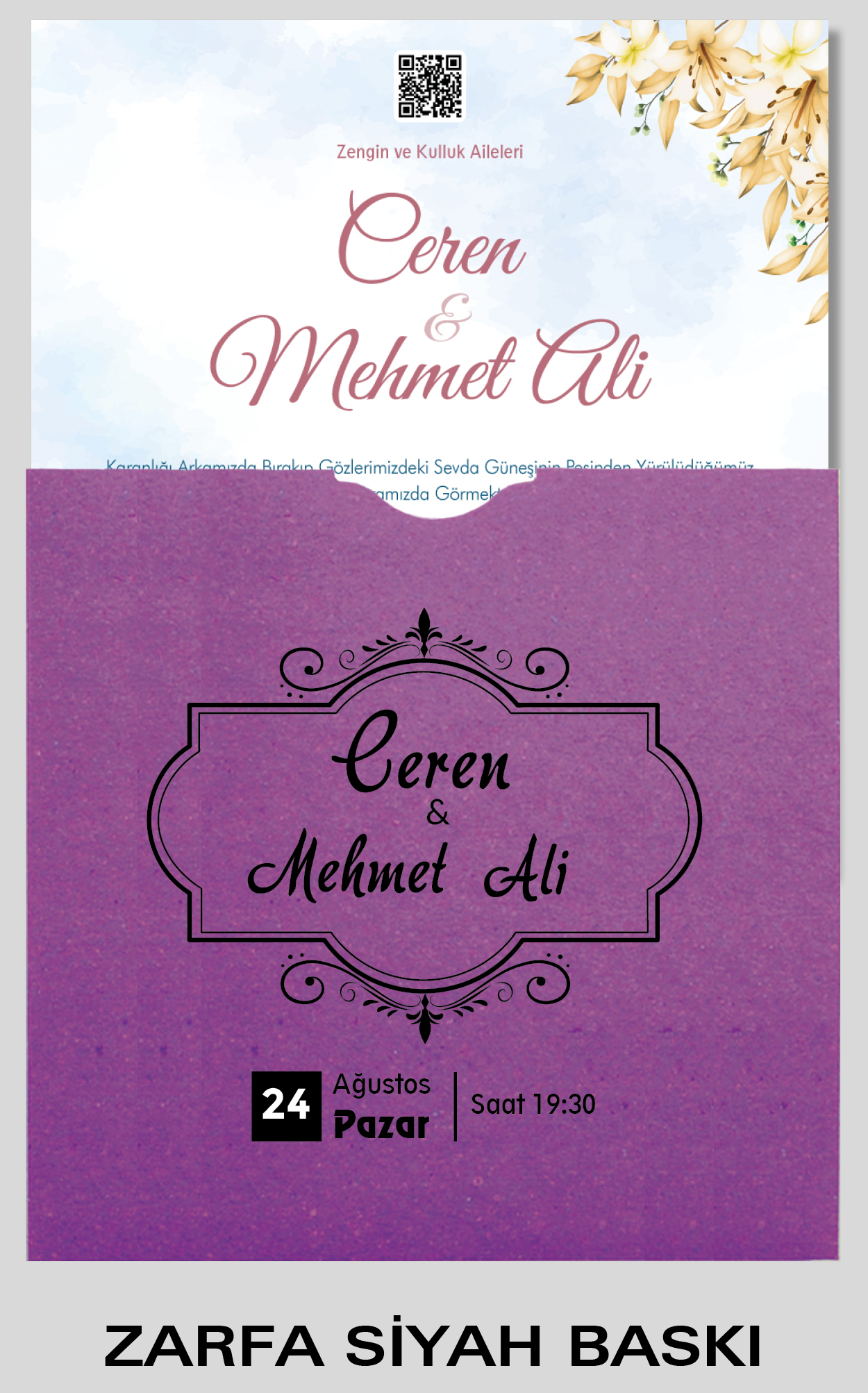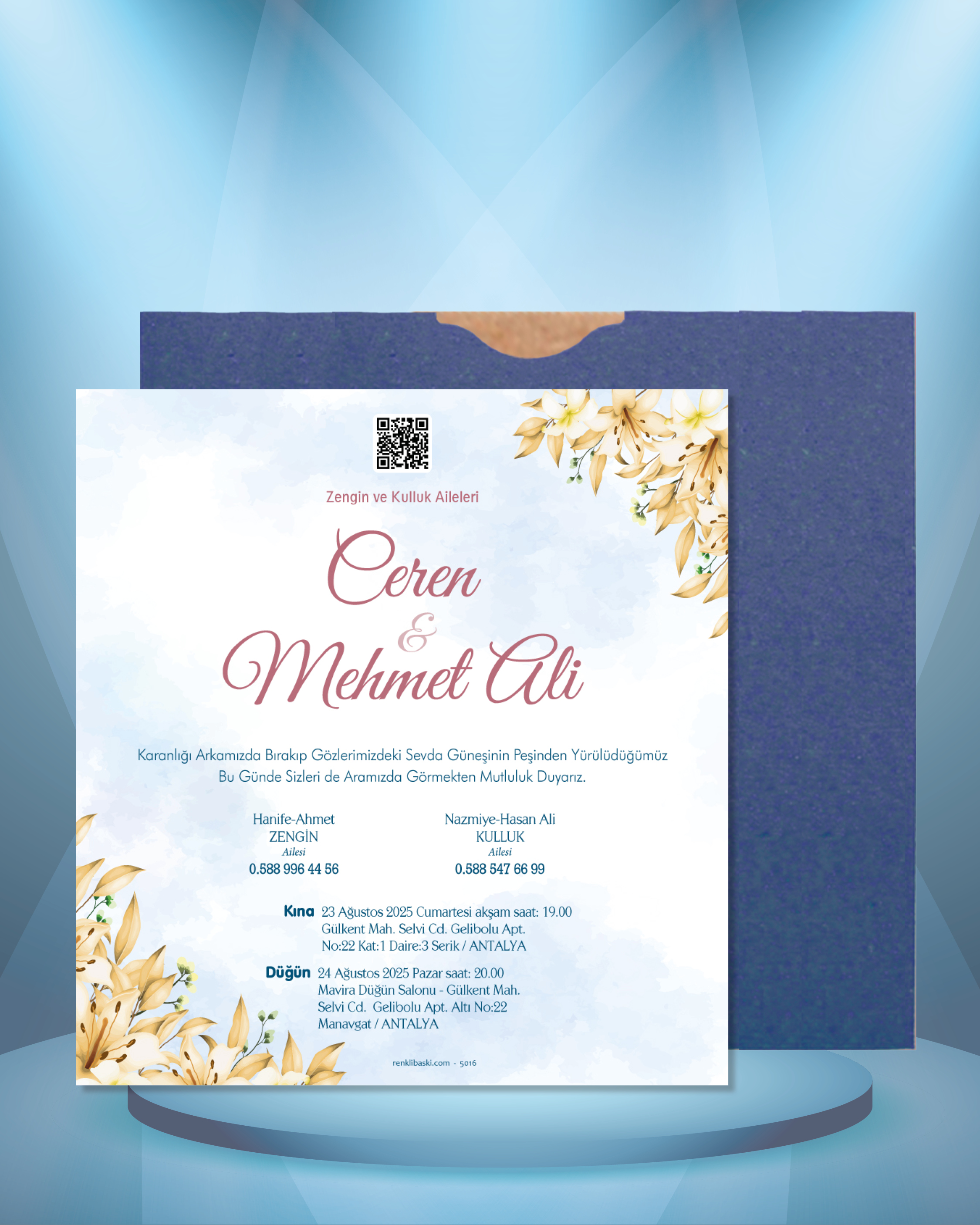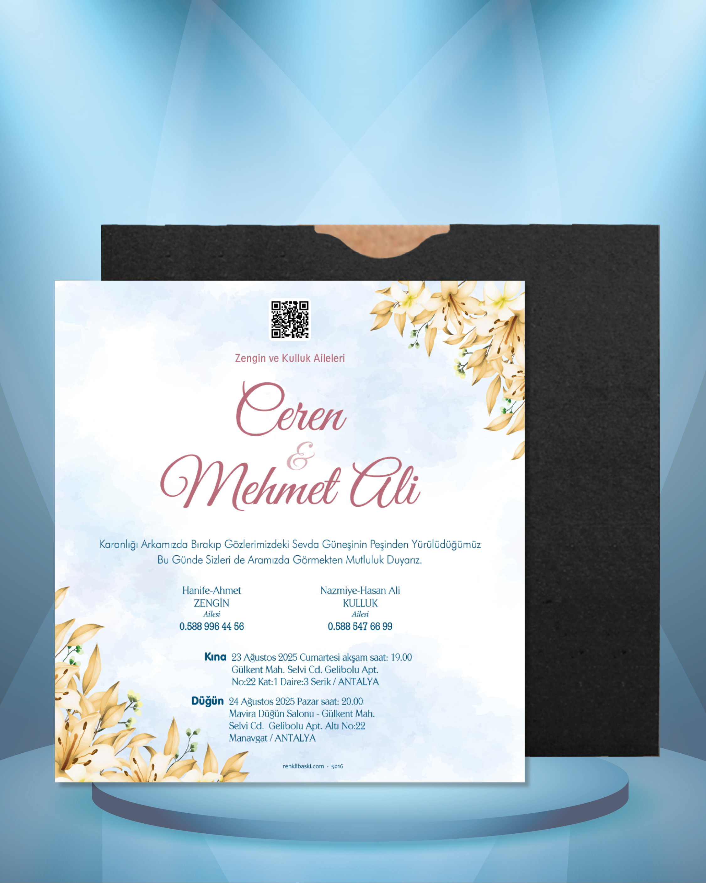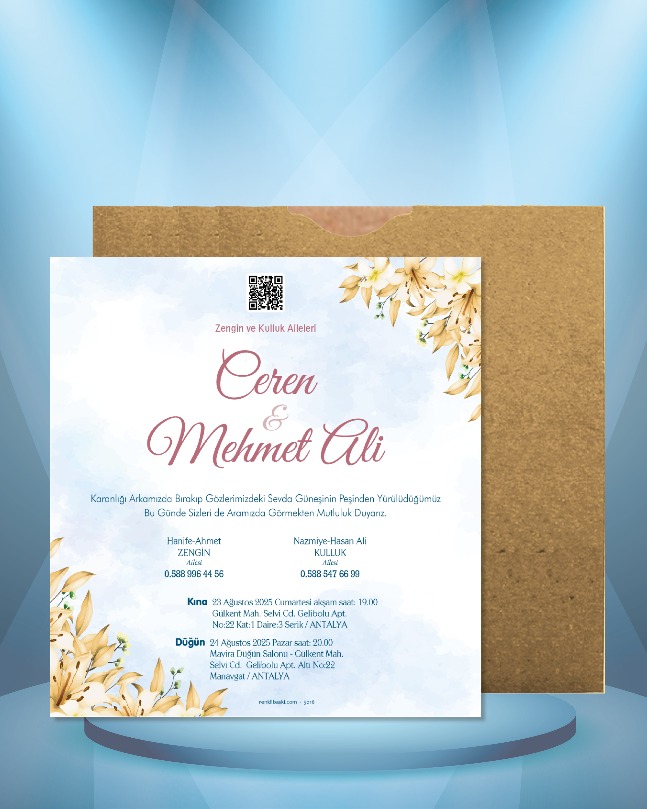 Kare Renkli Zarflı Davetiye 5016