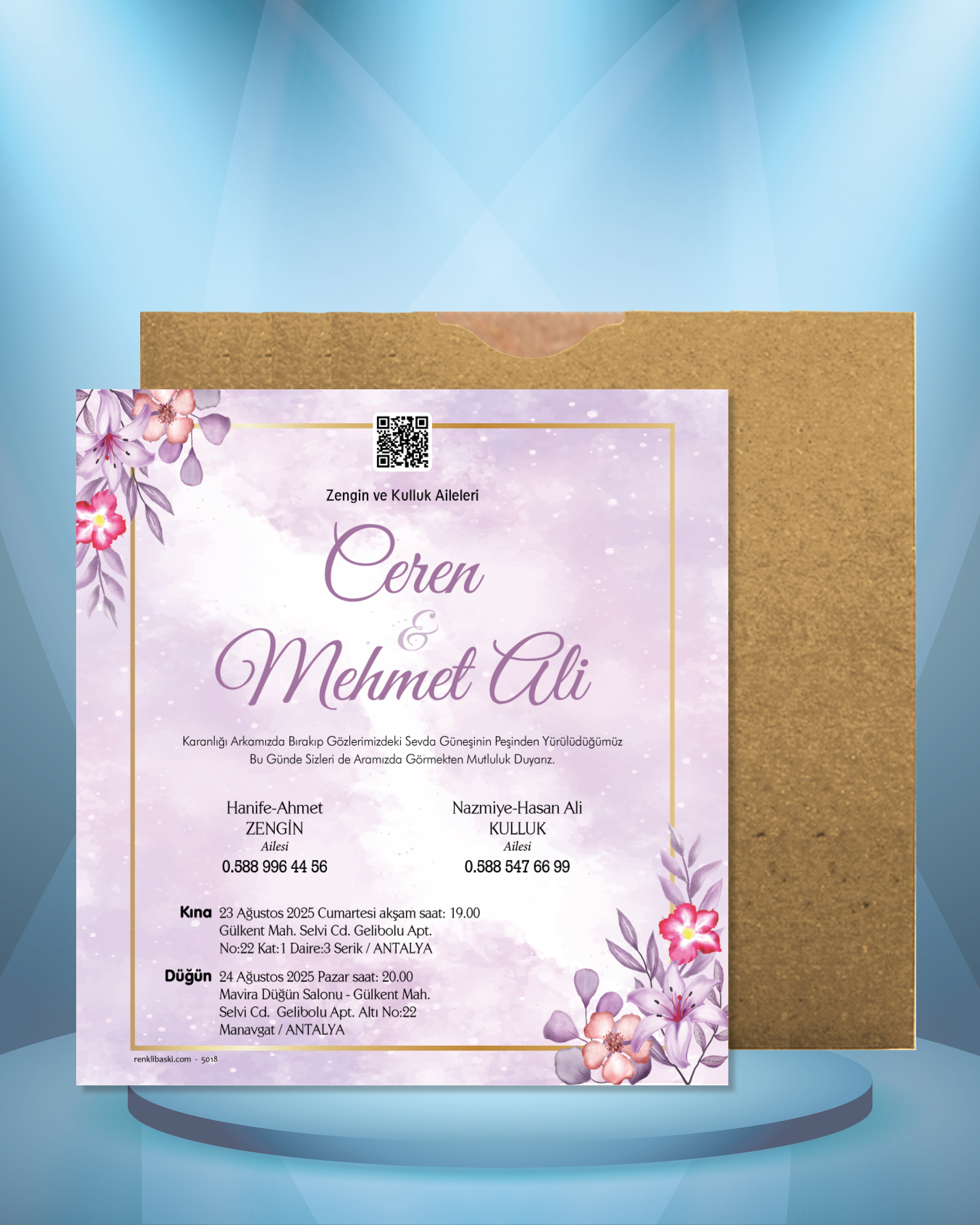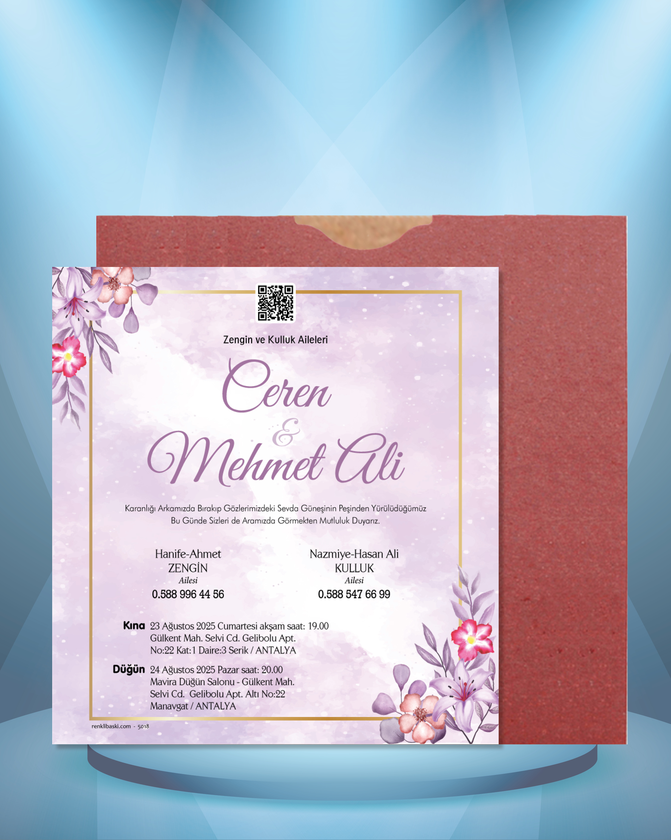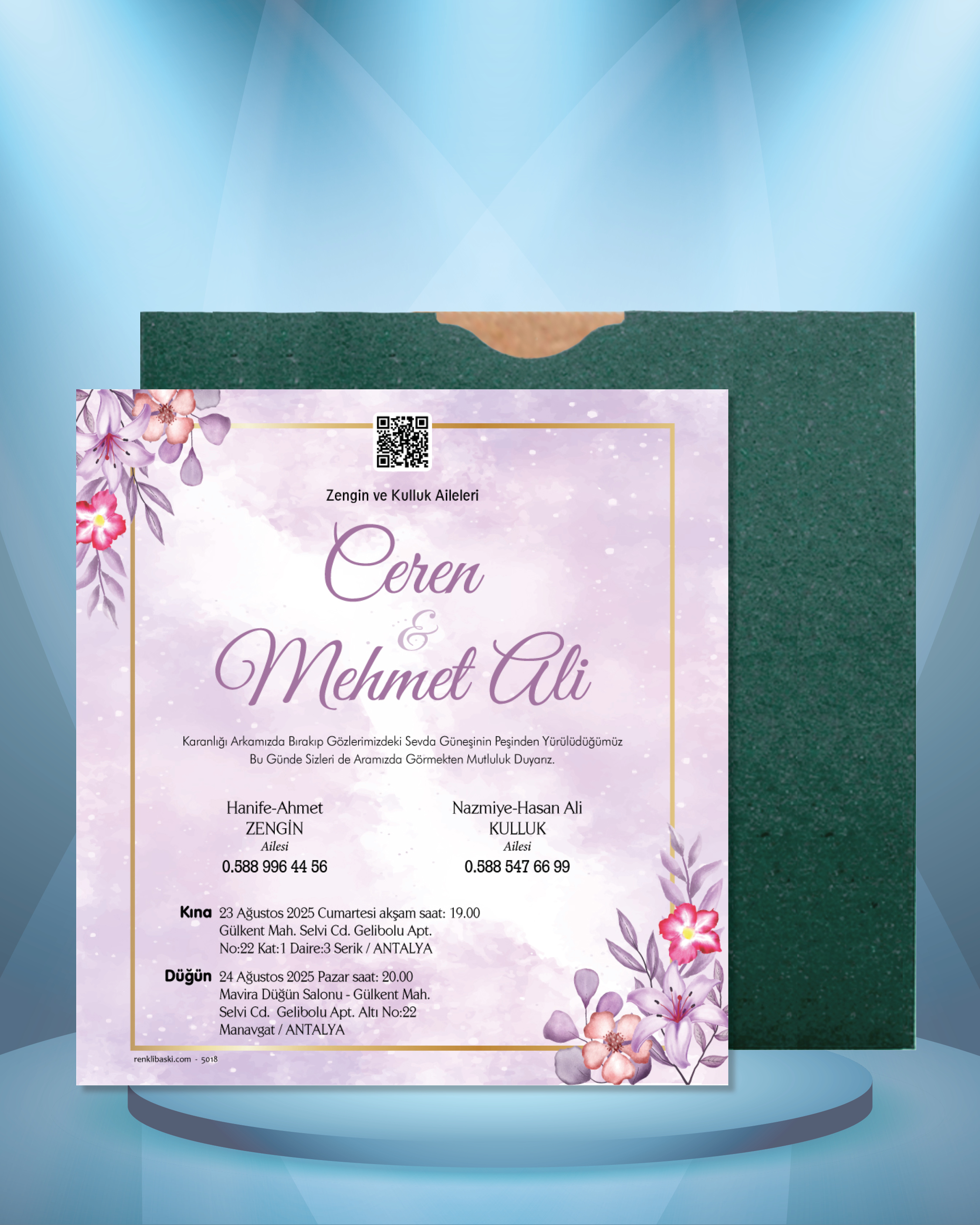 Kare Renkli Zarflı Davetiye 5018