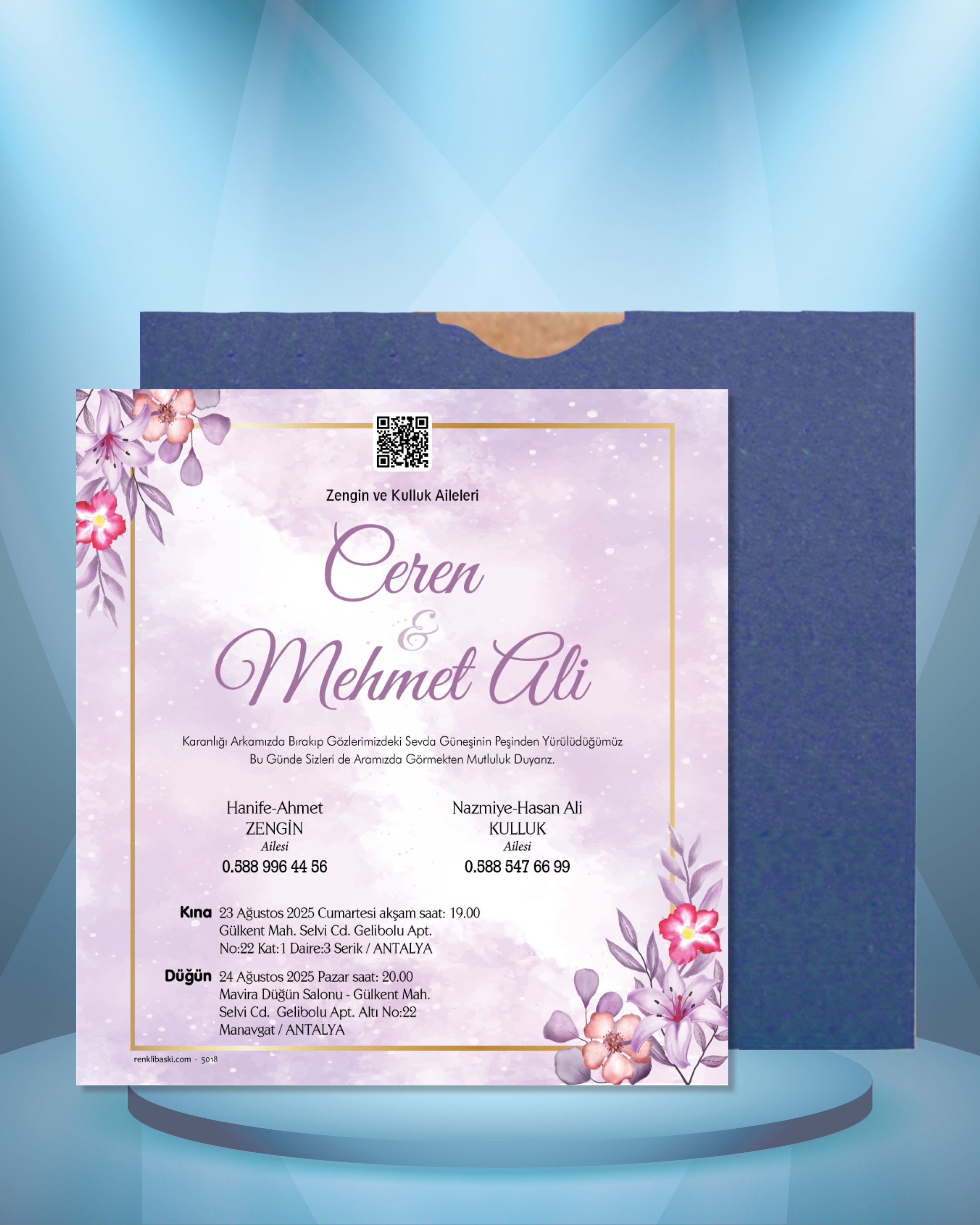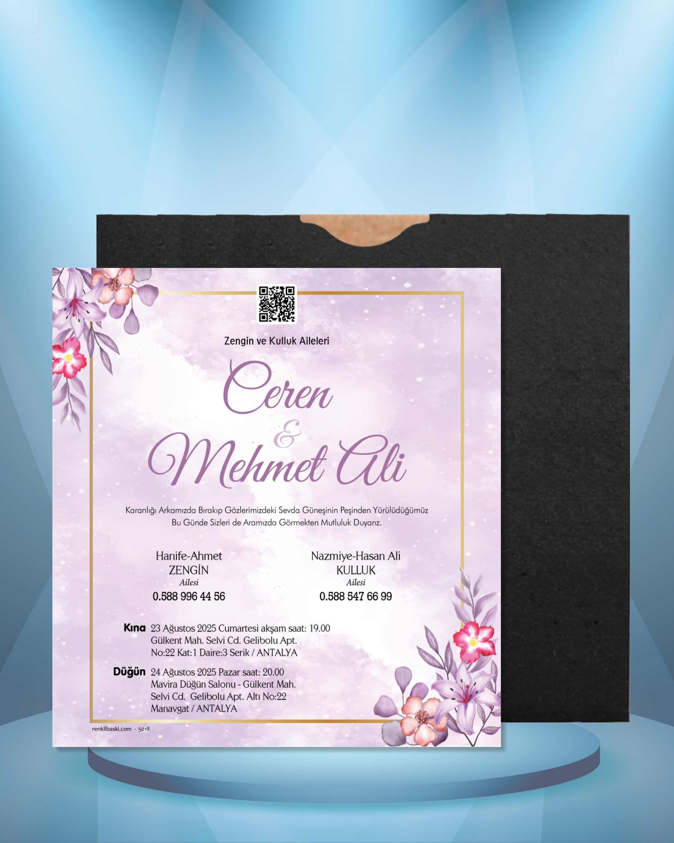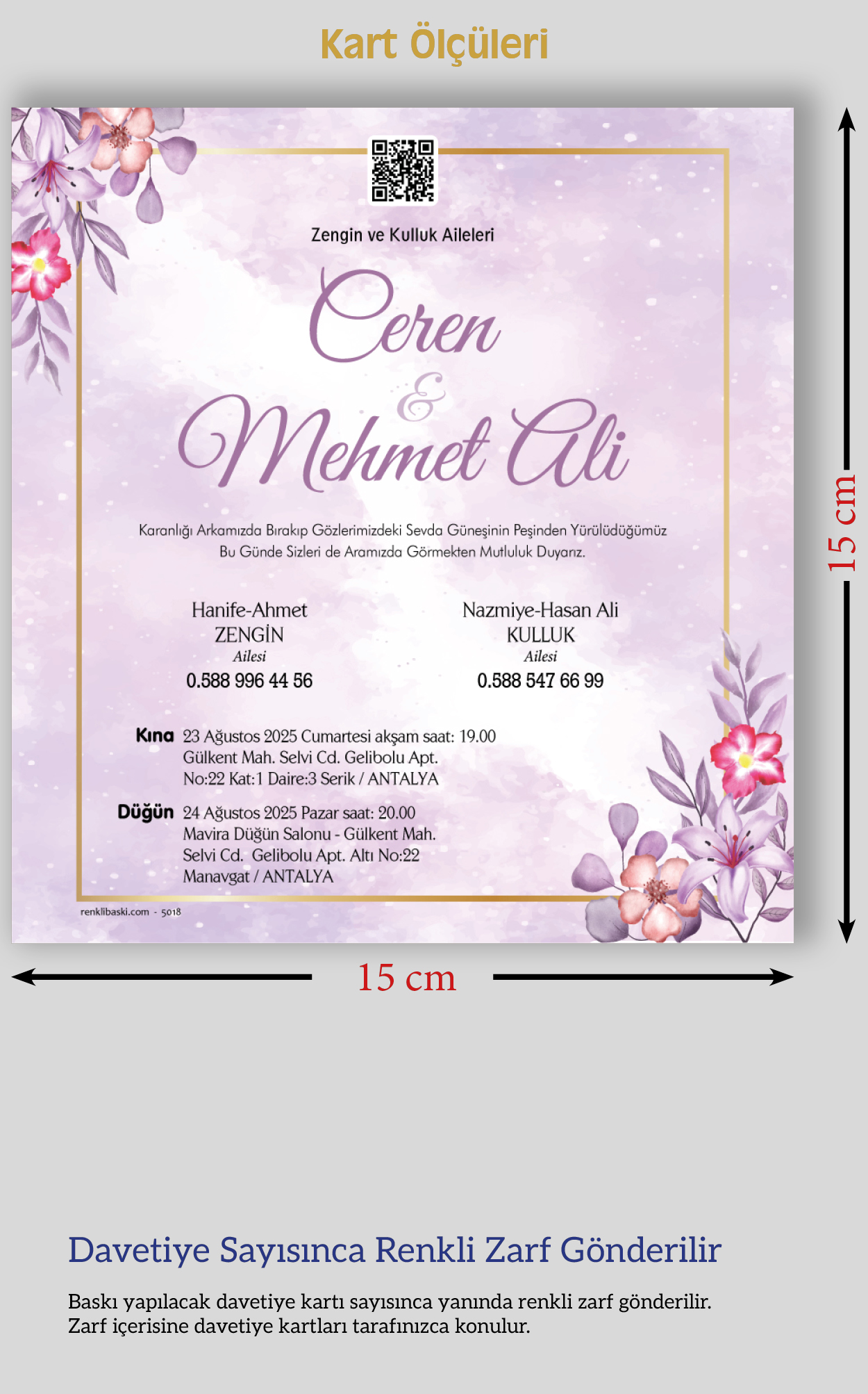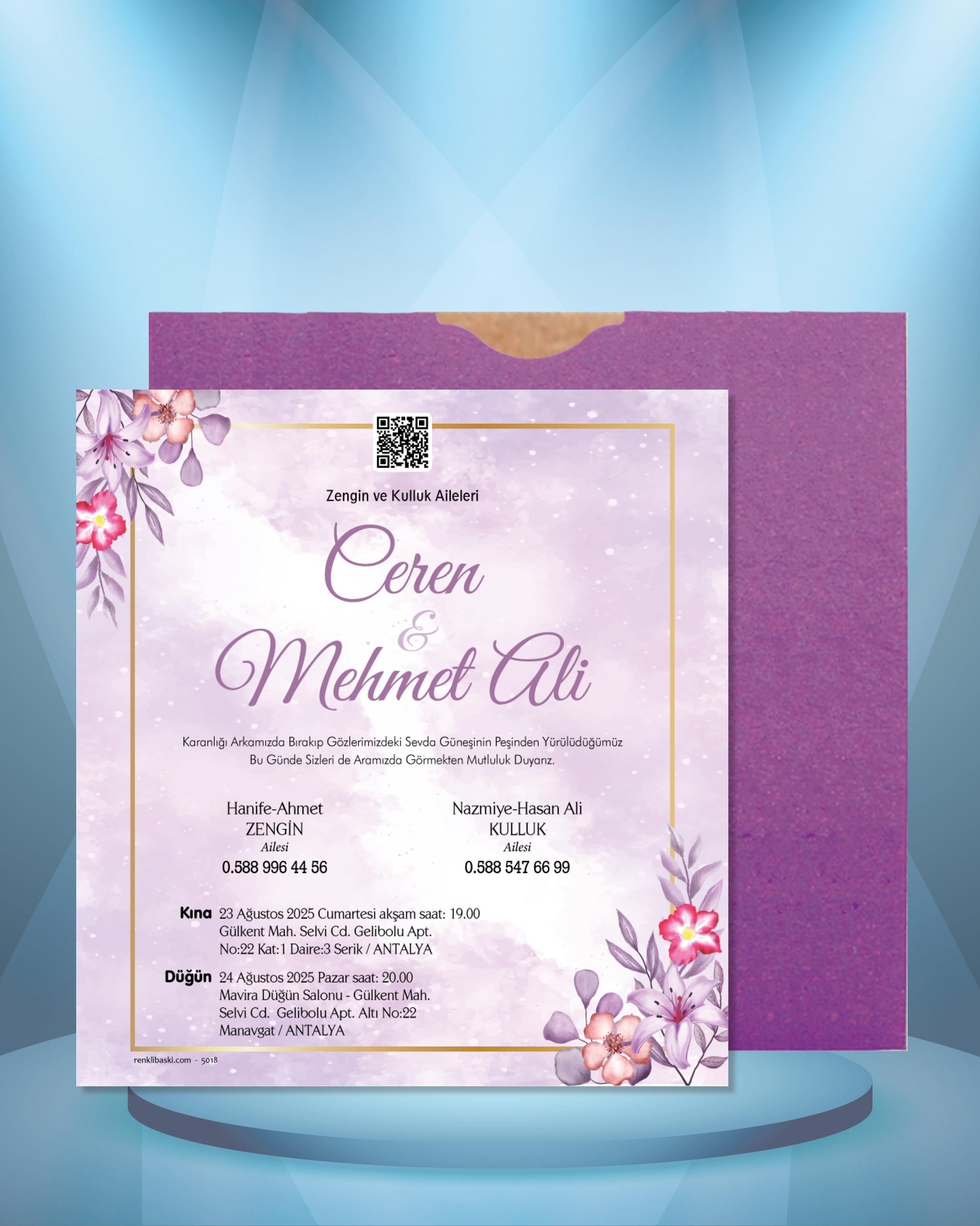 Kare Renkli Zarflı Davetiye 5018