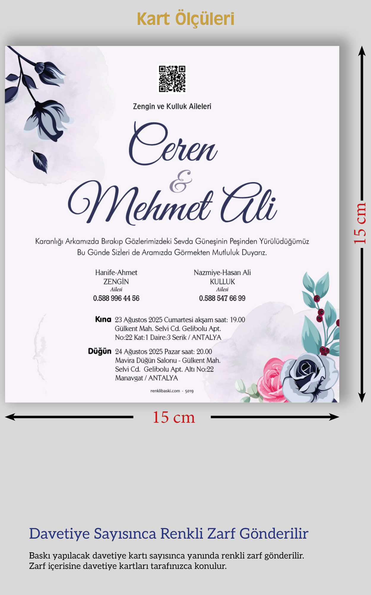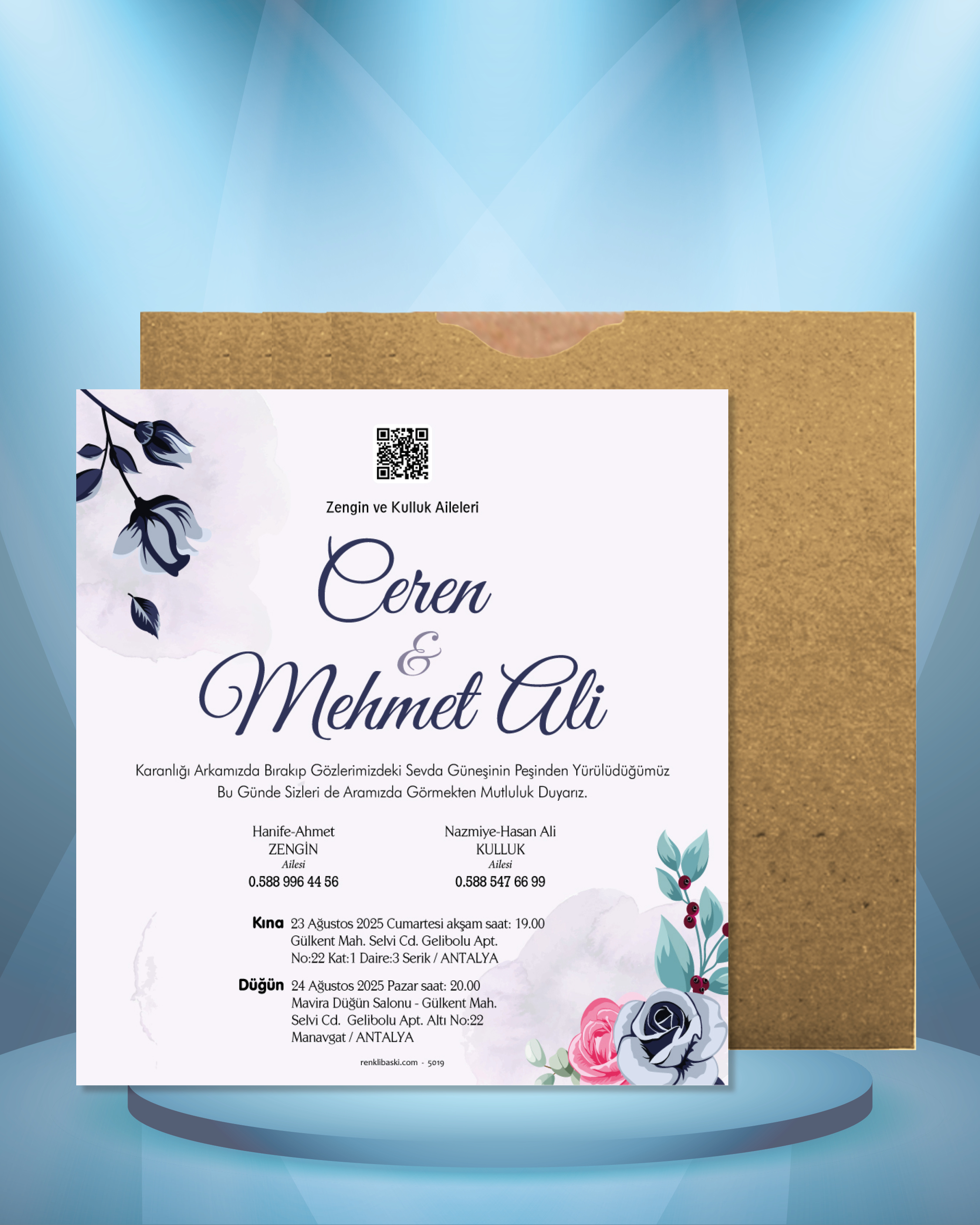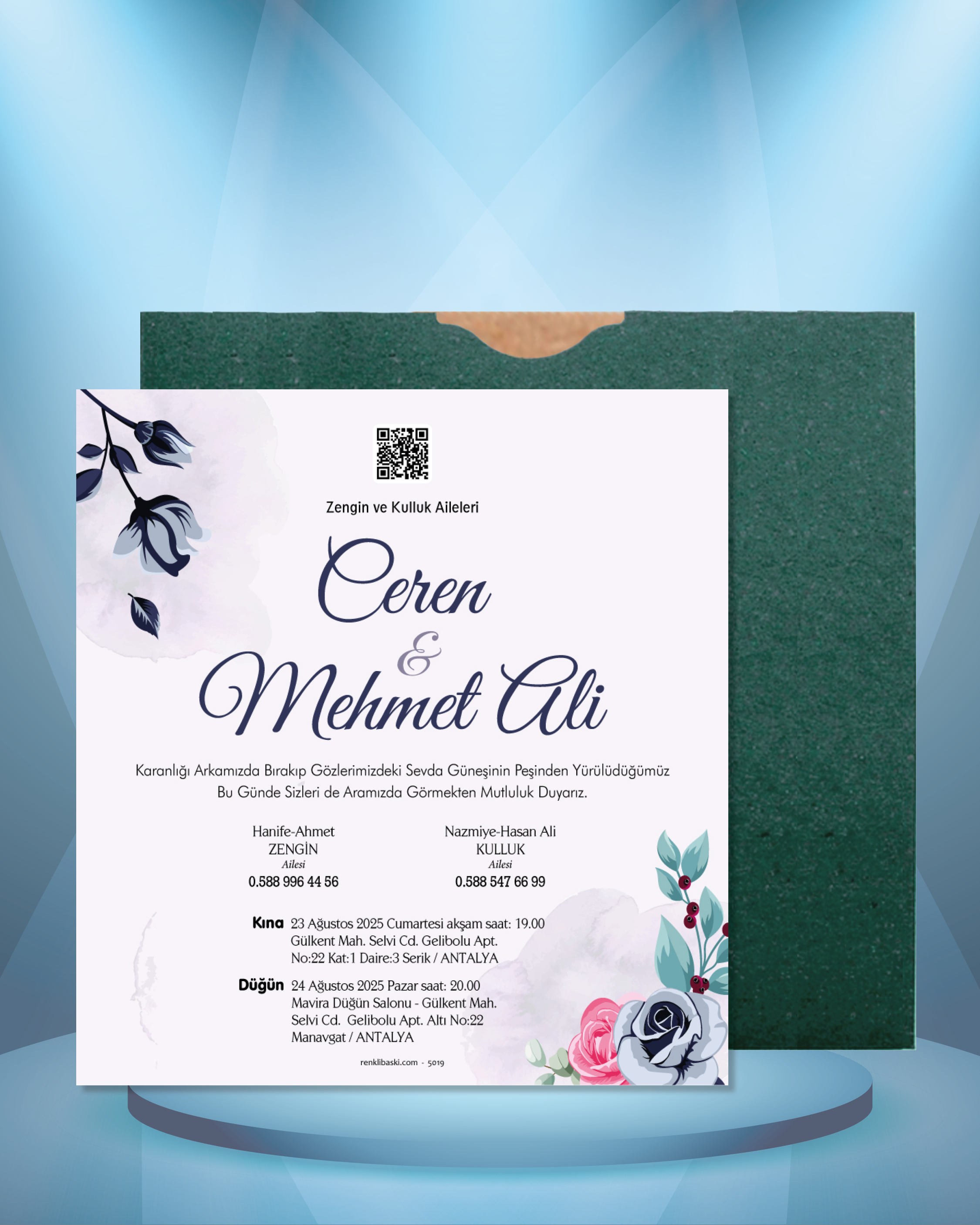 Kare Renkli Zarflı Davetiye 5019