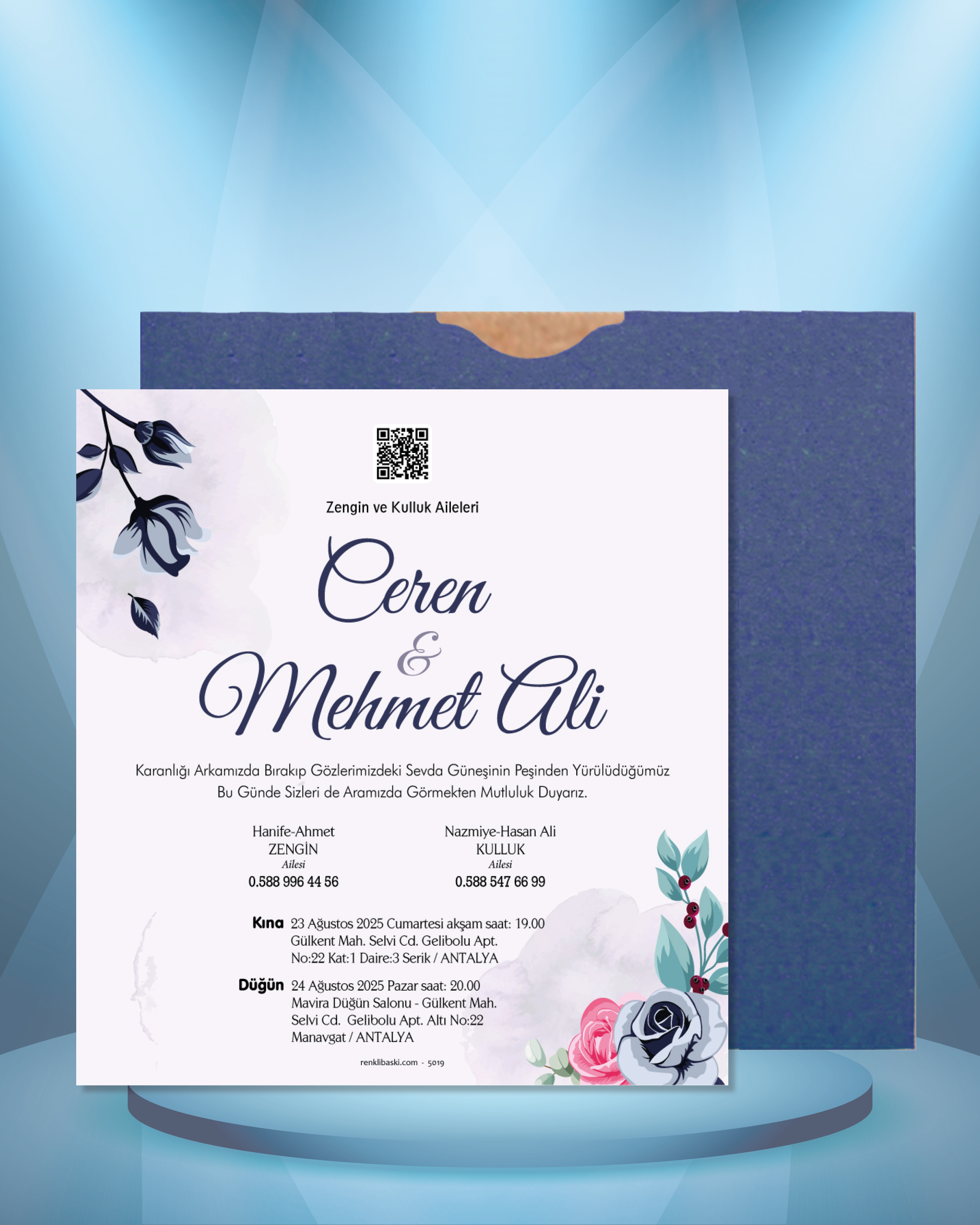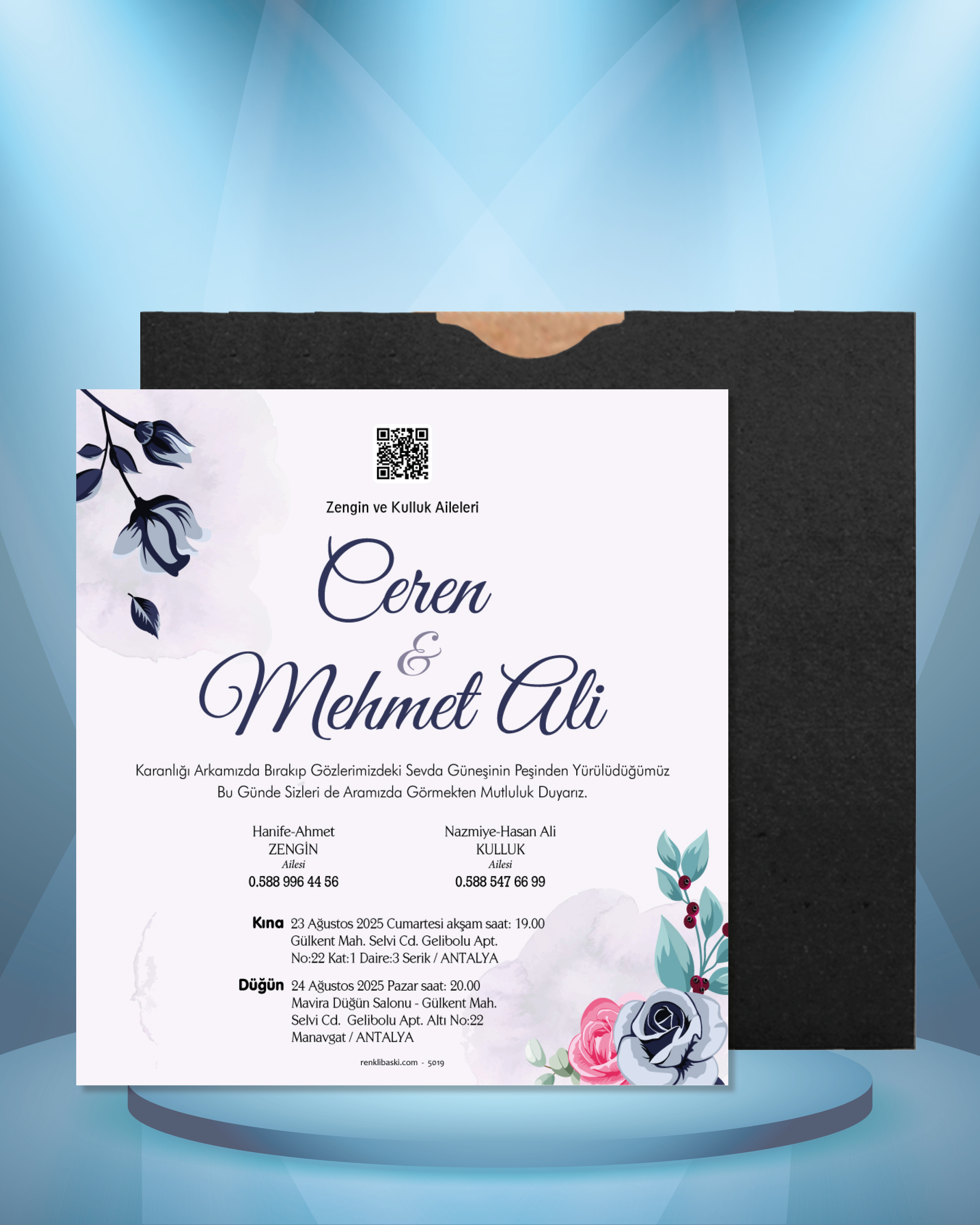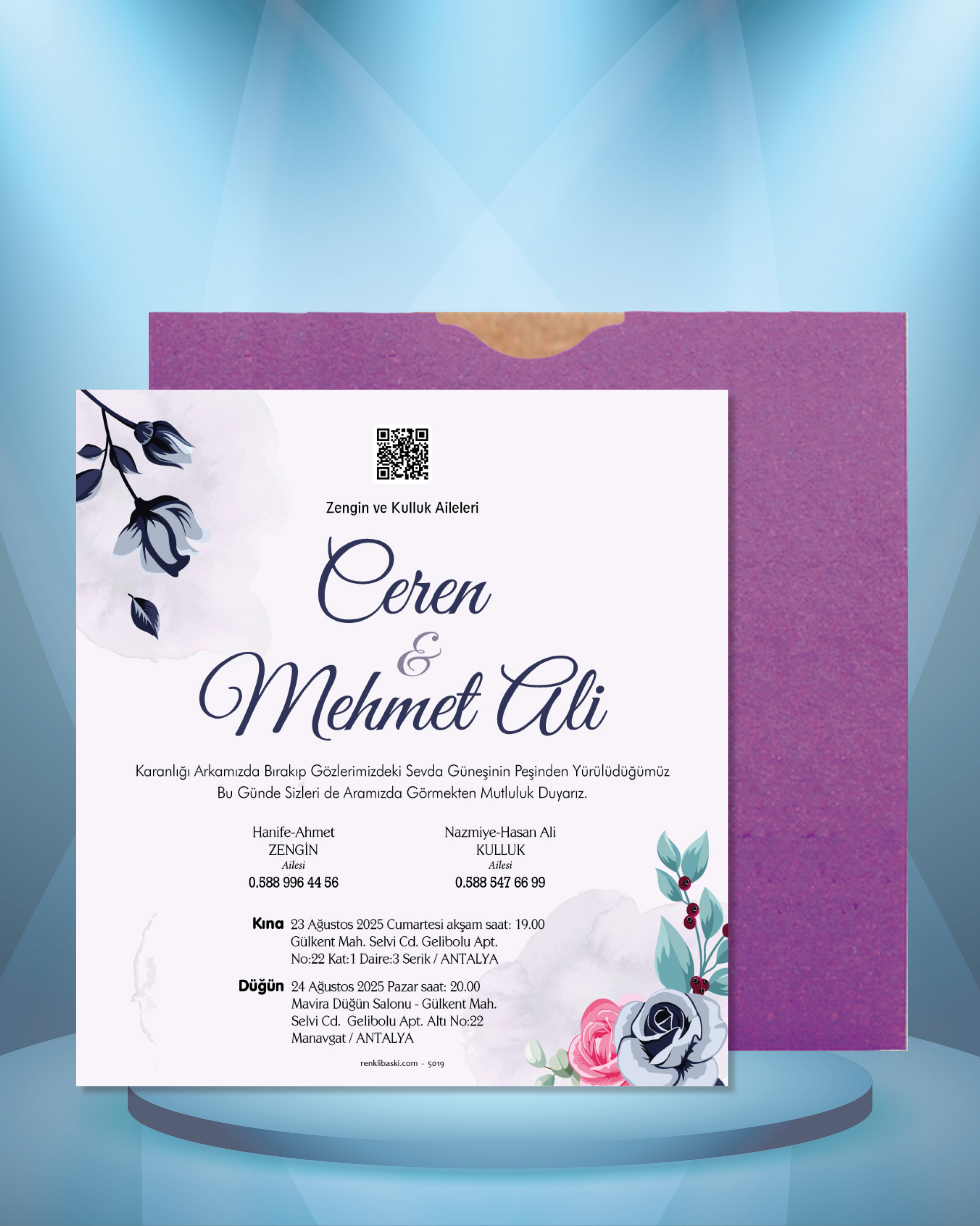 Kare Renkli Zarflı Davetiye 5019