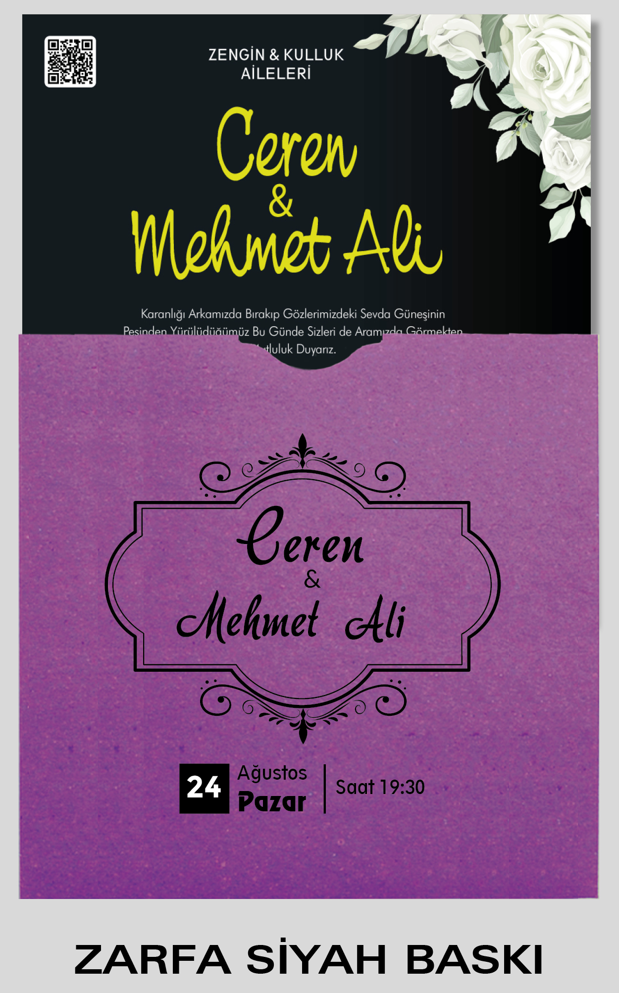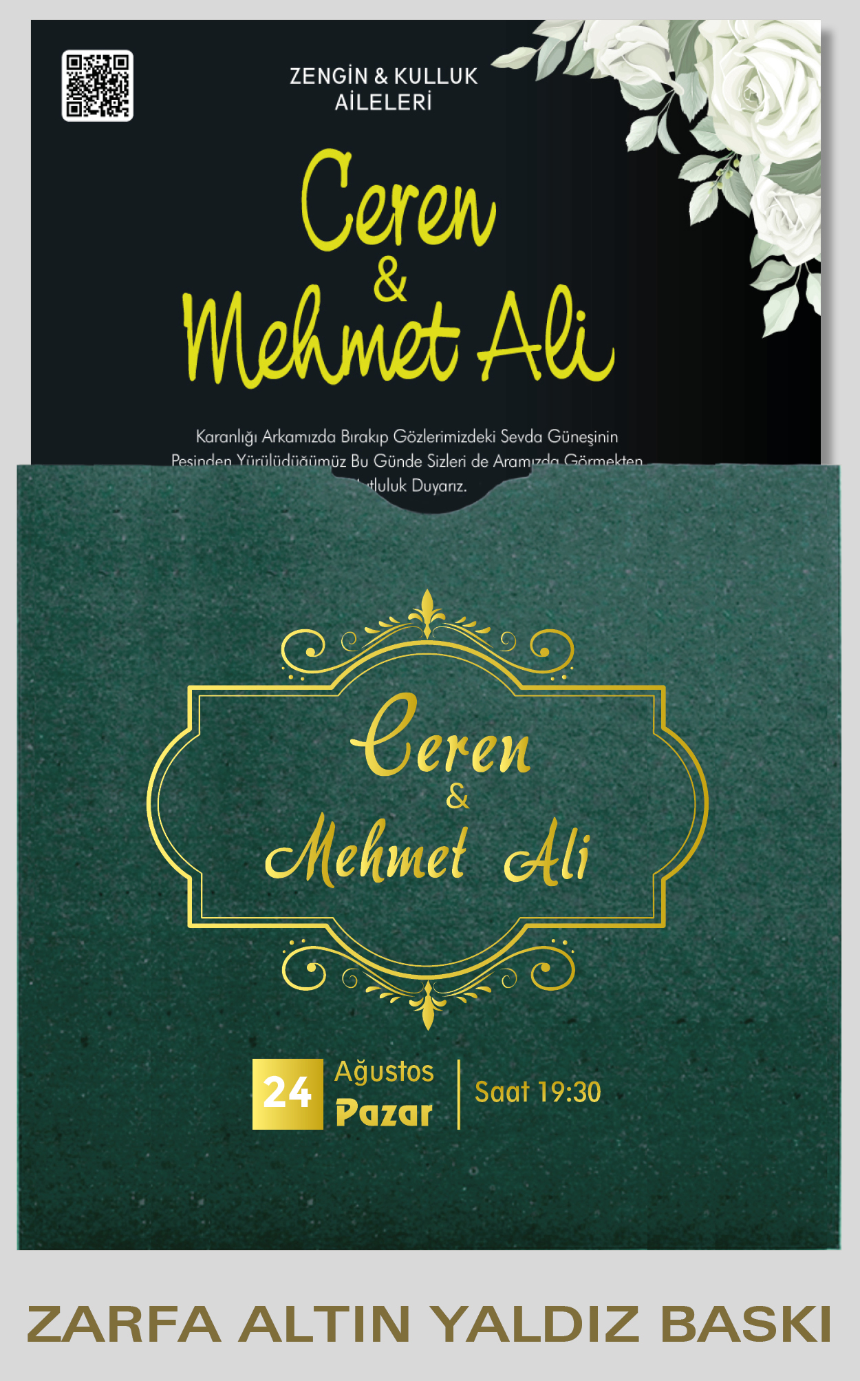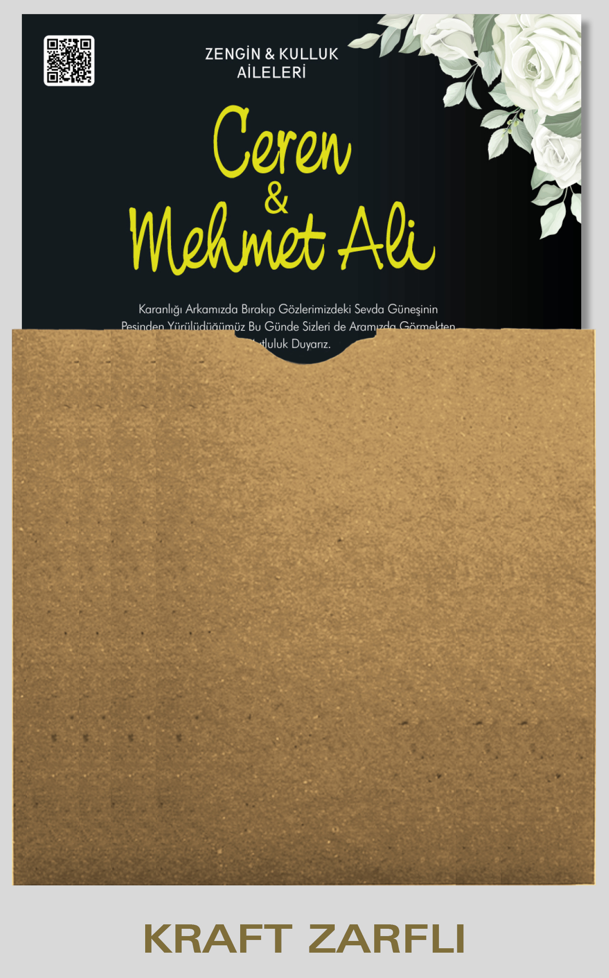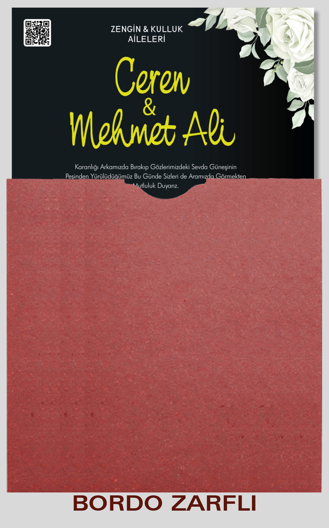 Ekonomik davetiye modelimizin düğün, nişan, kına gibi etkinlikleriniz için tasarlanmasını isteyebilirsiniz. Tasarım ücretsizdir. Tasarım hazırlatmak için 0555 190 02 00 numaralı WhatsApp hattımızla iletişime geçebilirsiniz.