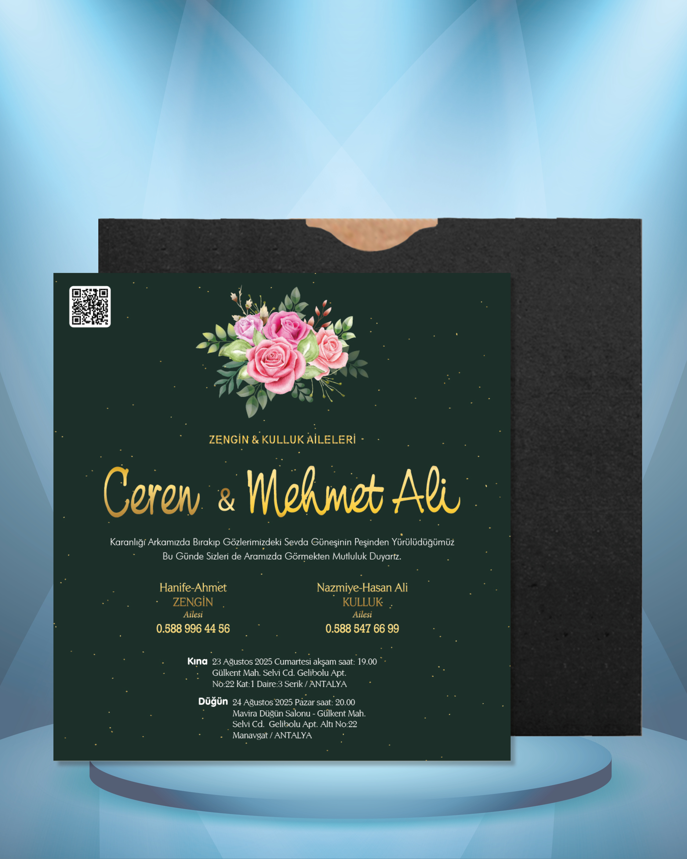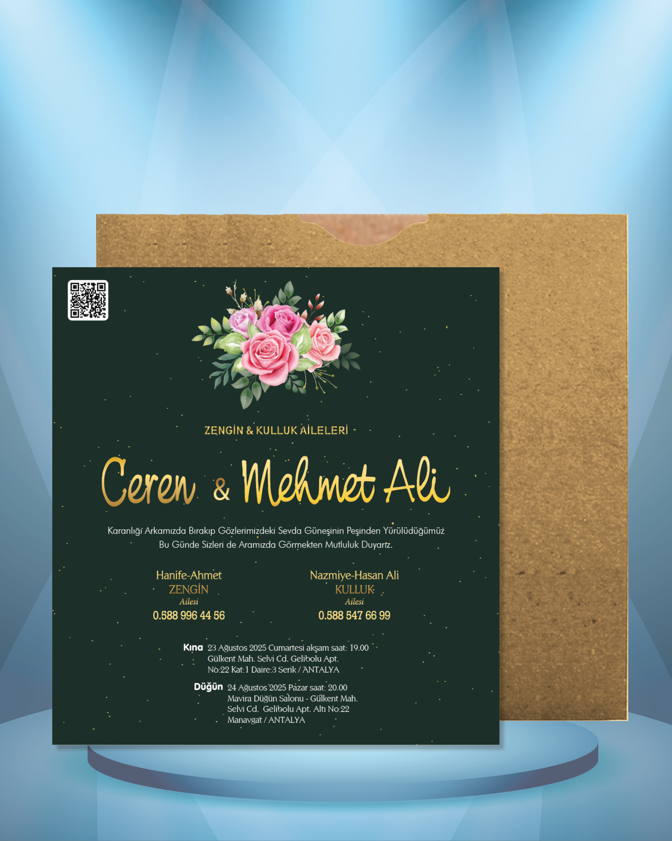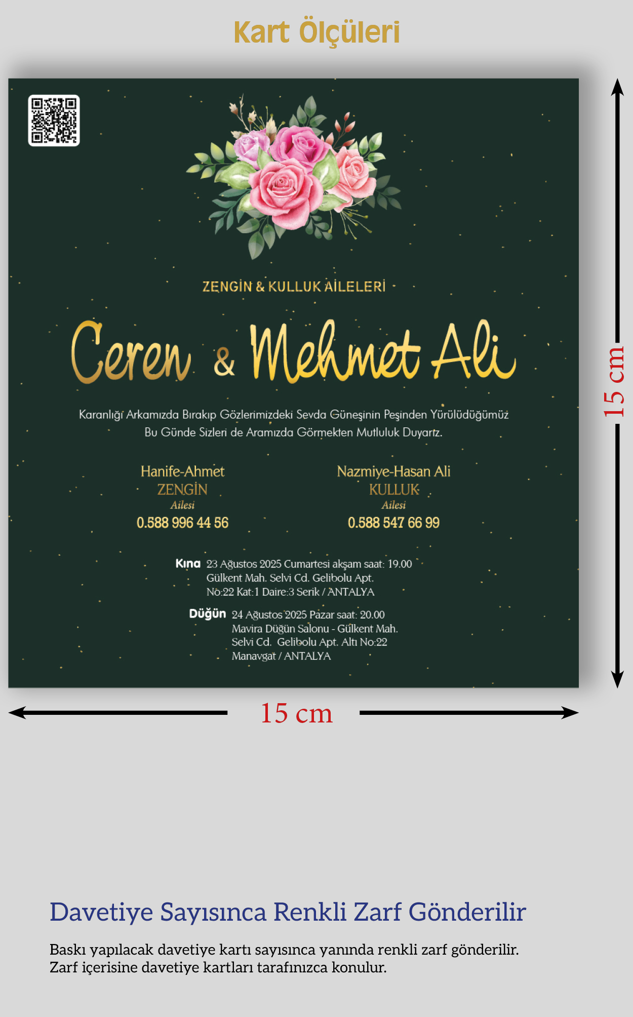 Ekonomik davetiye modelimizin düğün, nişan, kına gibi etkinlikleriniz için tasarlanmasını isteyebilirsiniz. Tasarım ücretsizdir. Tasarım hazırlatmak için 0555 190 02 00 numaralı WhatsApp hattımızla iletişime geçebilirsiniz.