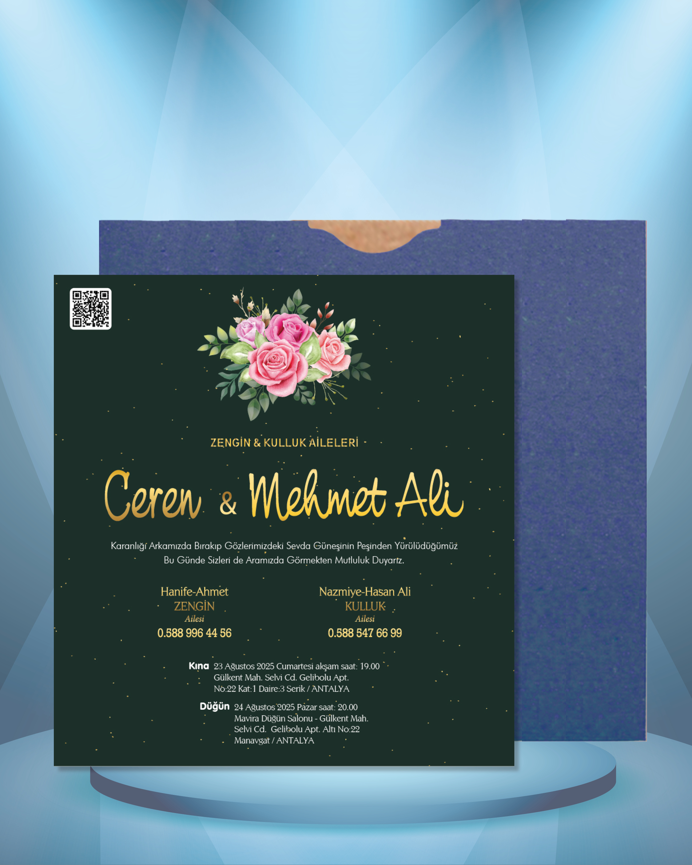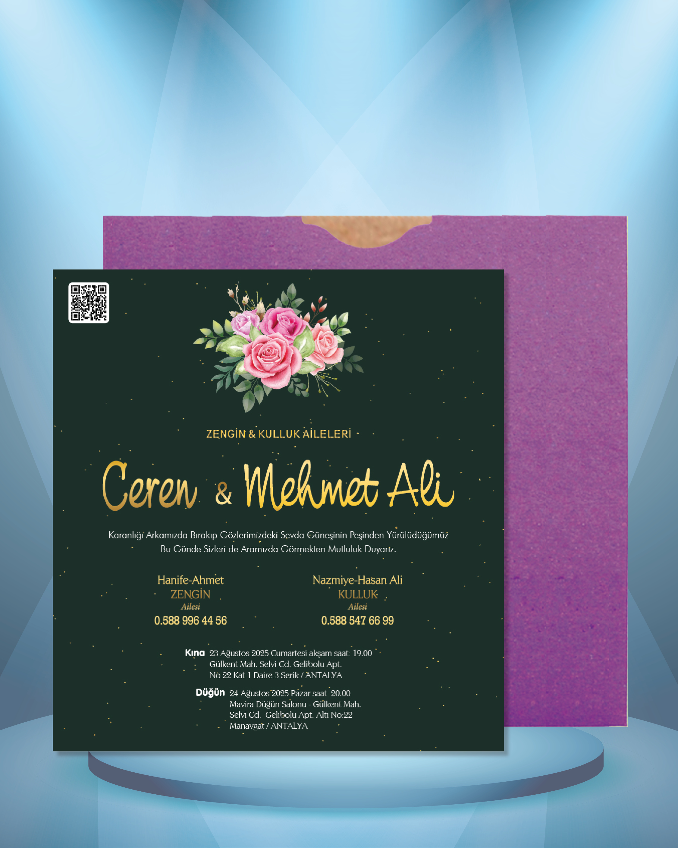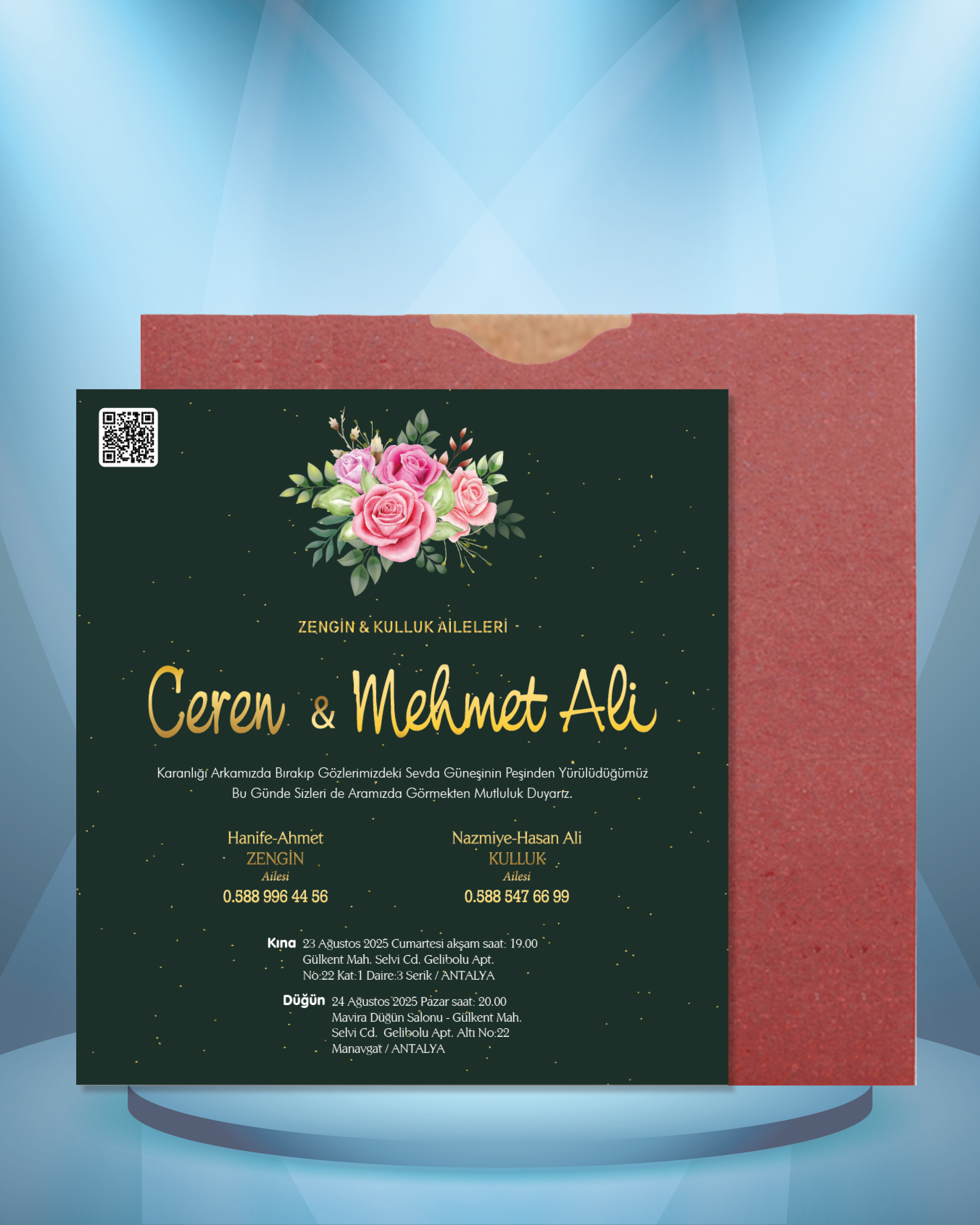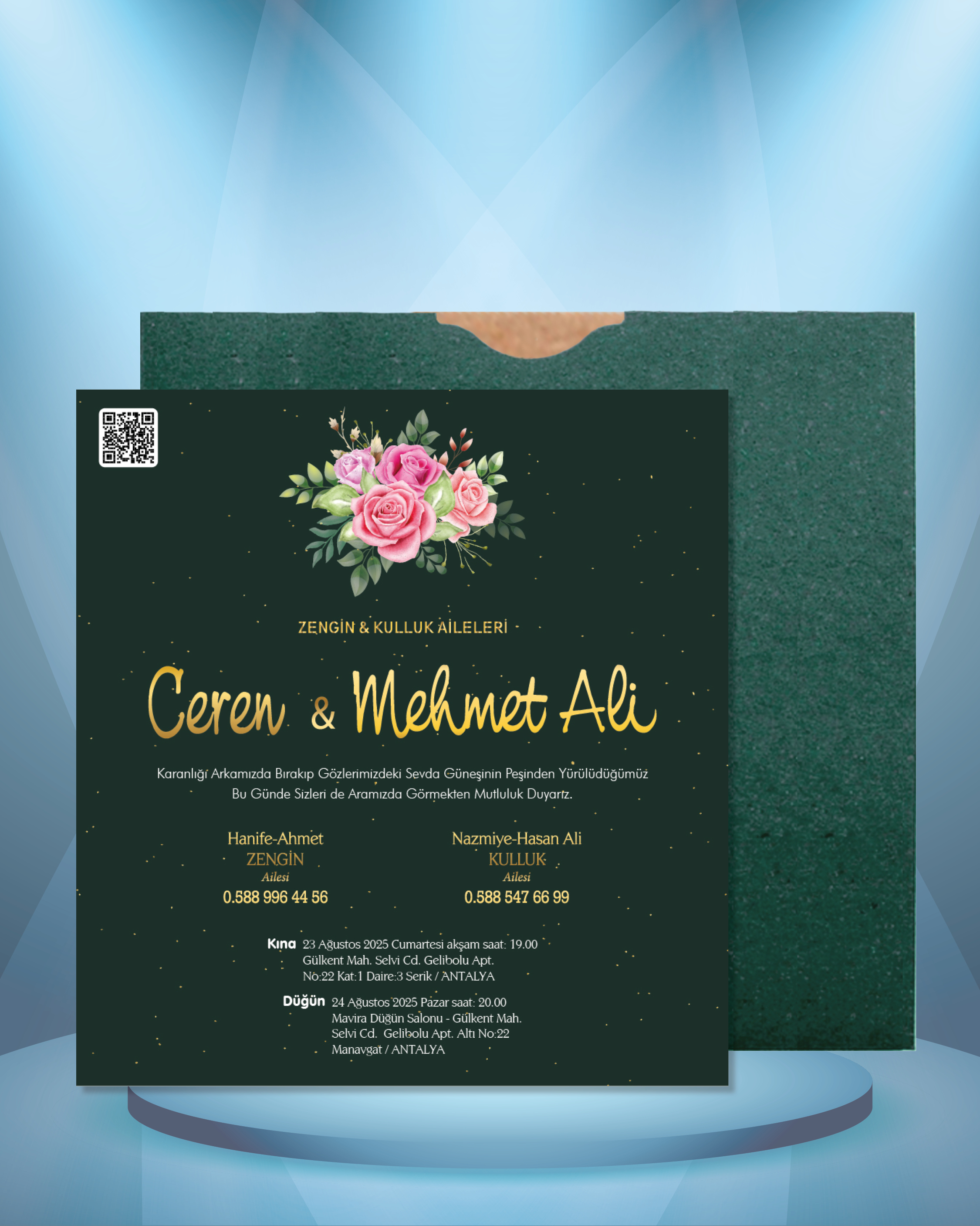 Ekonomik davetiye modelimizin düğün, nişan, kına gibi etkinlikleriniz için tasarlanmasını isteyebilirsiniz. Tasarım ücretsizdir. Tasarım hazırlatmak için 0555 190 02 00 numaralı WhatsApp hattımızla iletişime geçebilirsiniz.