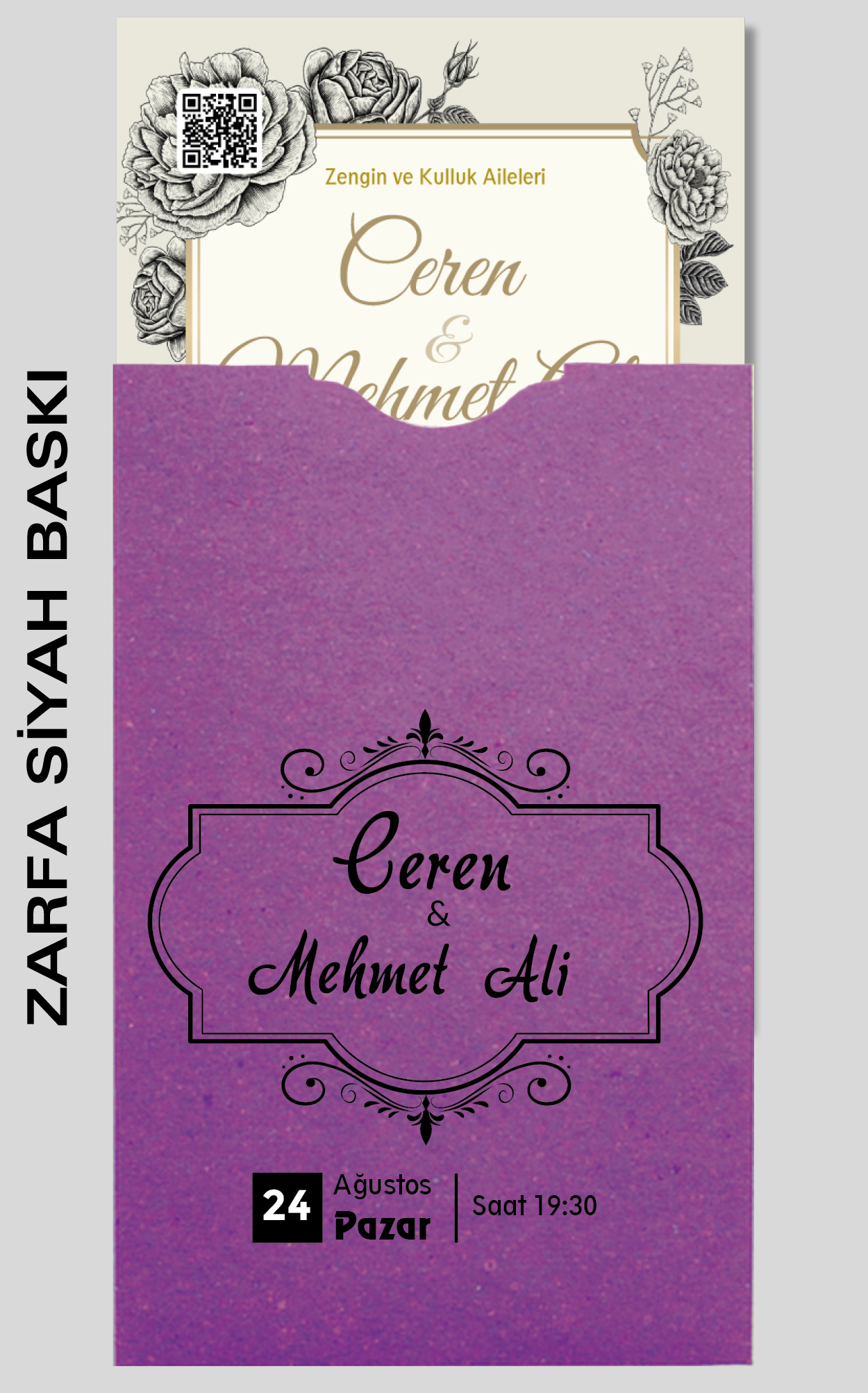 Ekonomik davetiye modelimizin düğün, nişan, kına gibi etkinlikleriniz için tasarlanmasını isteyebilirsiniz. Tasarım ücretsizdir. Tasarım hazırlatmak için 0555 190 02 00 numaralı WhatsApp hattımızla iletişime geçebilirsiniz.